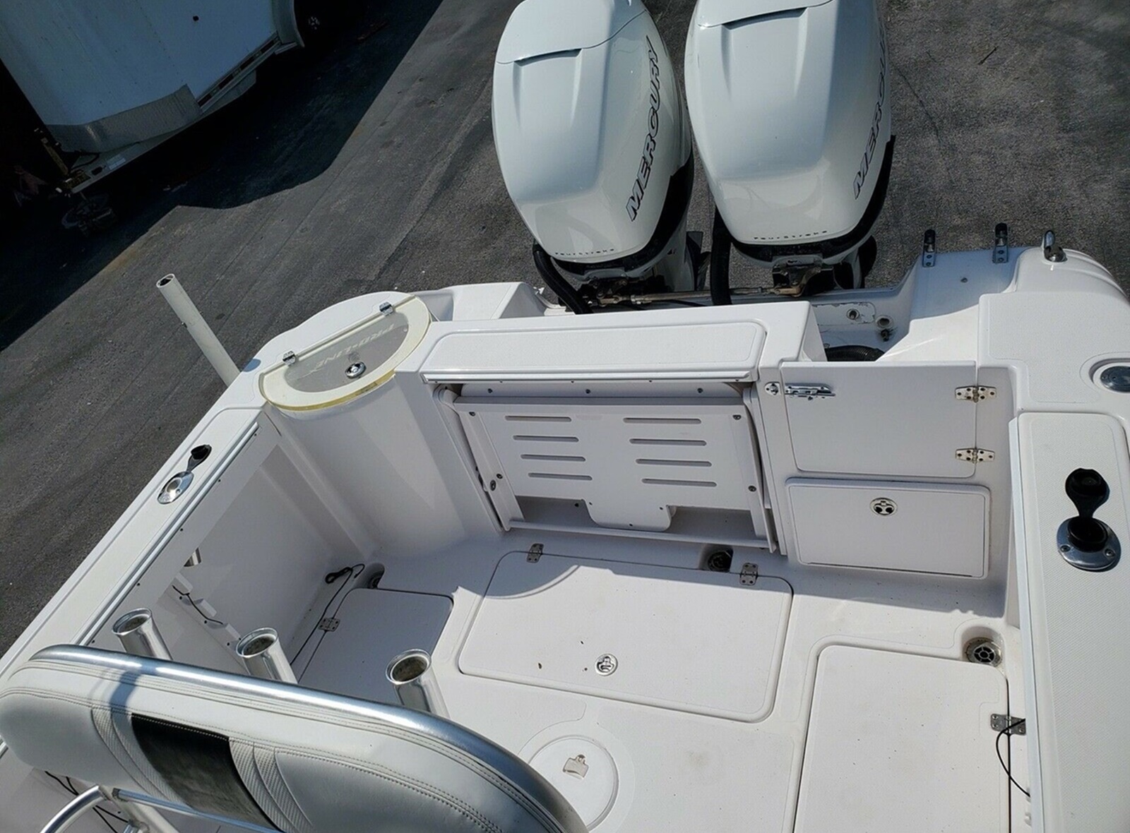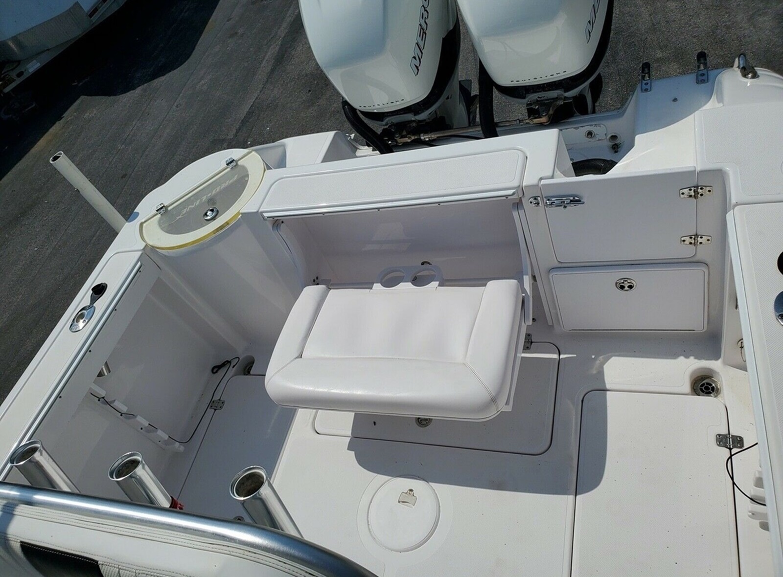 The transom includes a lighted baitwell, providing ample space to fight fish.