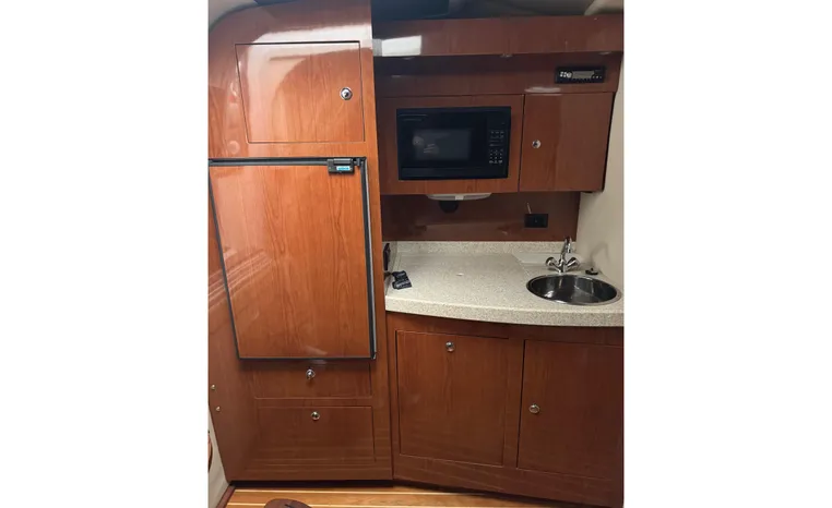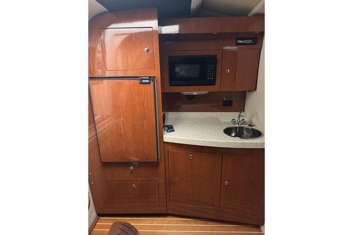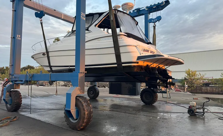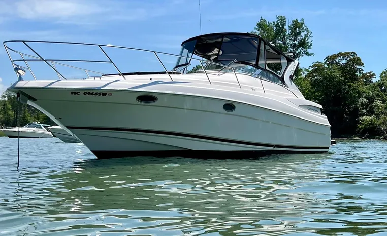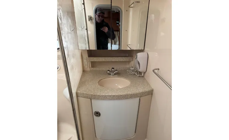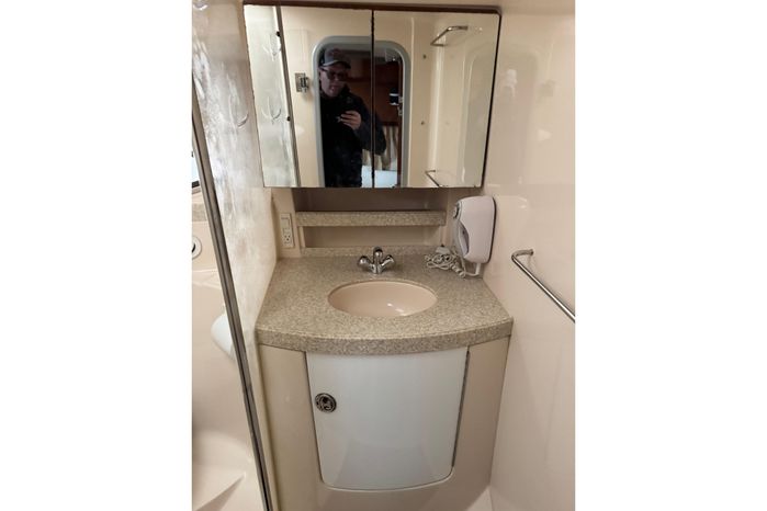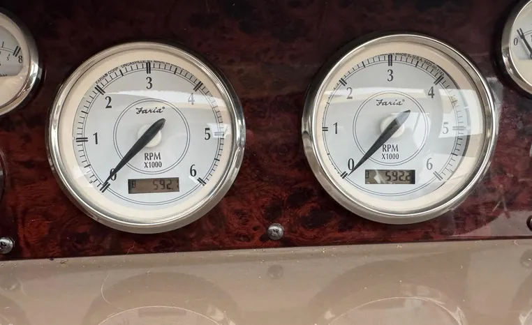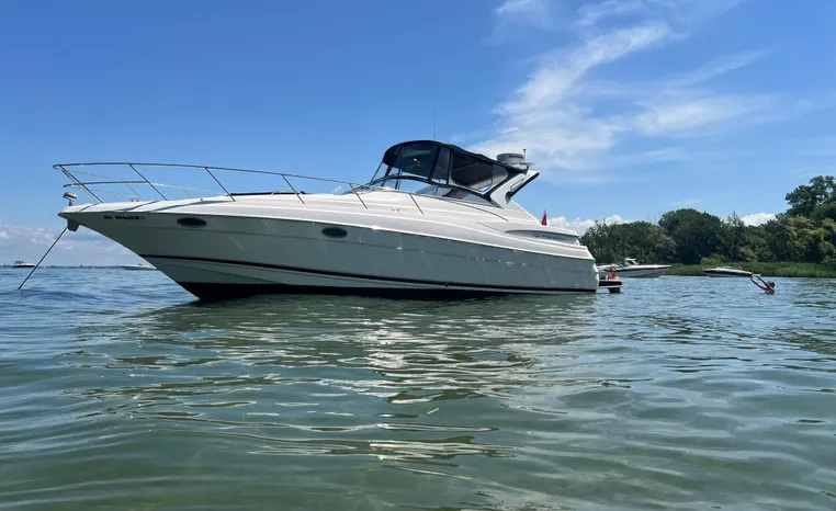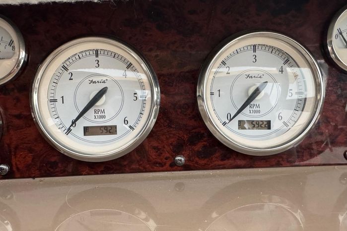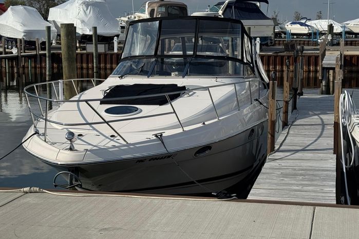 Freshwater/Great Lakes boat since new. This vessel features twin Mercruiser 496 Mag (375 hp.) engines with 592 hrs., Bravo III Outdrives, Kohler 7.3 kw Generator, Camper top with newer strataglass panels, Raymarine Axiom Radar/Chartplotter, Standard Horizon VHF, Kenwood Stereo, Lewmar windlass.
