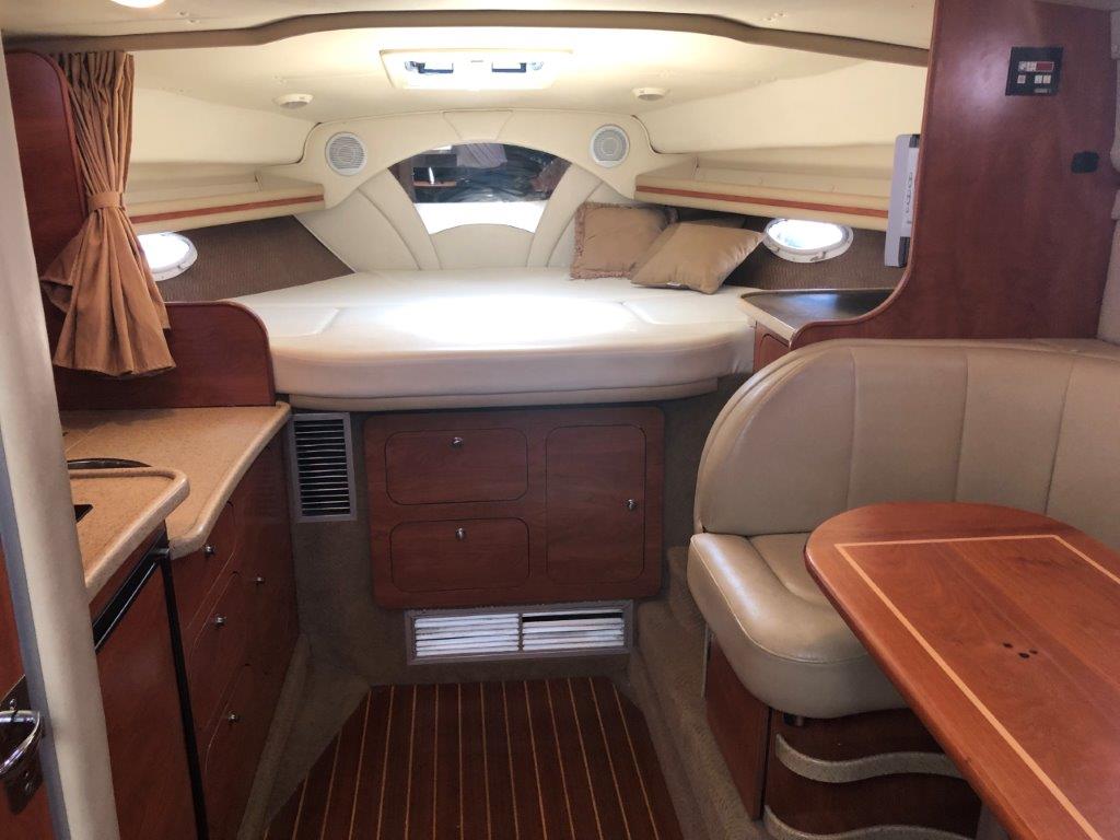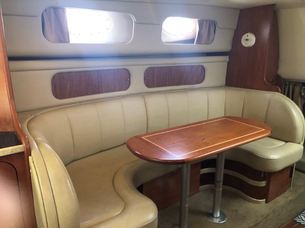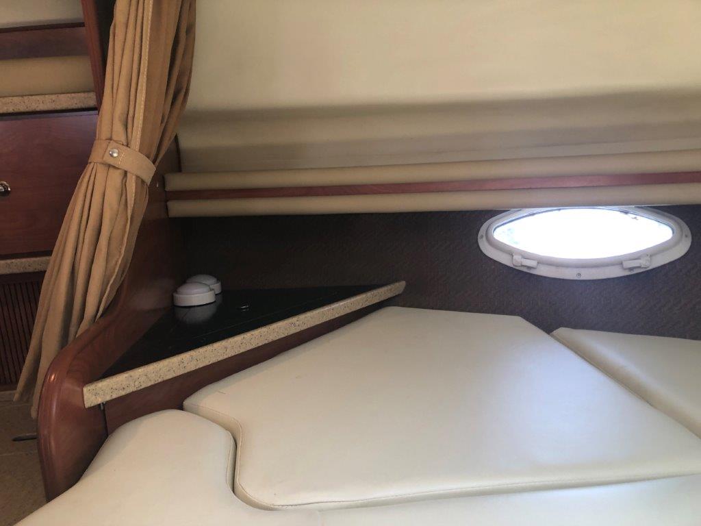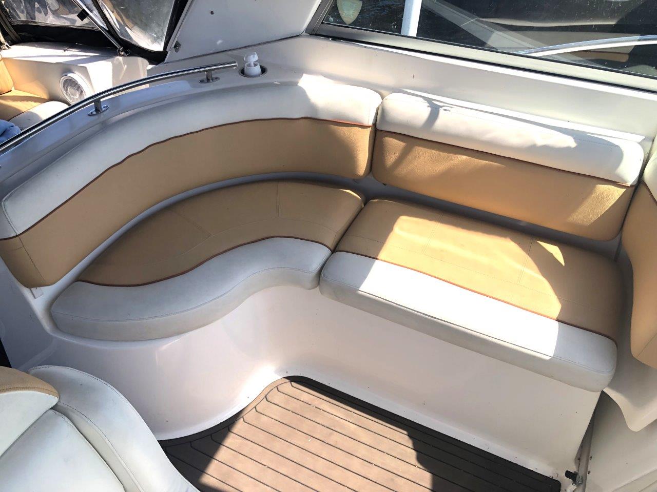 Winter storage included…don’t miss this terrific value on a high-volume and ultra-functional cruiser! Her original owner has enjoyed her in fresh water only and has her priced to sell. Other highlights include twin Merc 6.2 MPI’s with Bravo 3 Drives, generator with sound box, air & heat, new cockpit upholstery, anchor windlass, extended swim platform, cockpit wetbar with icemaker & fridge, and new camper canvas & enclosures. Please inquire for more details!