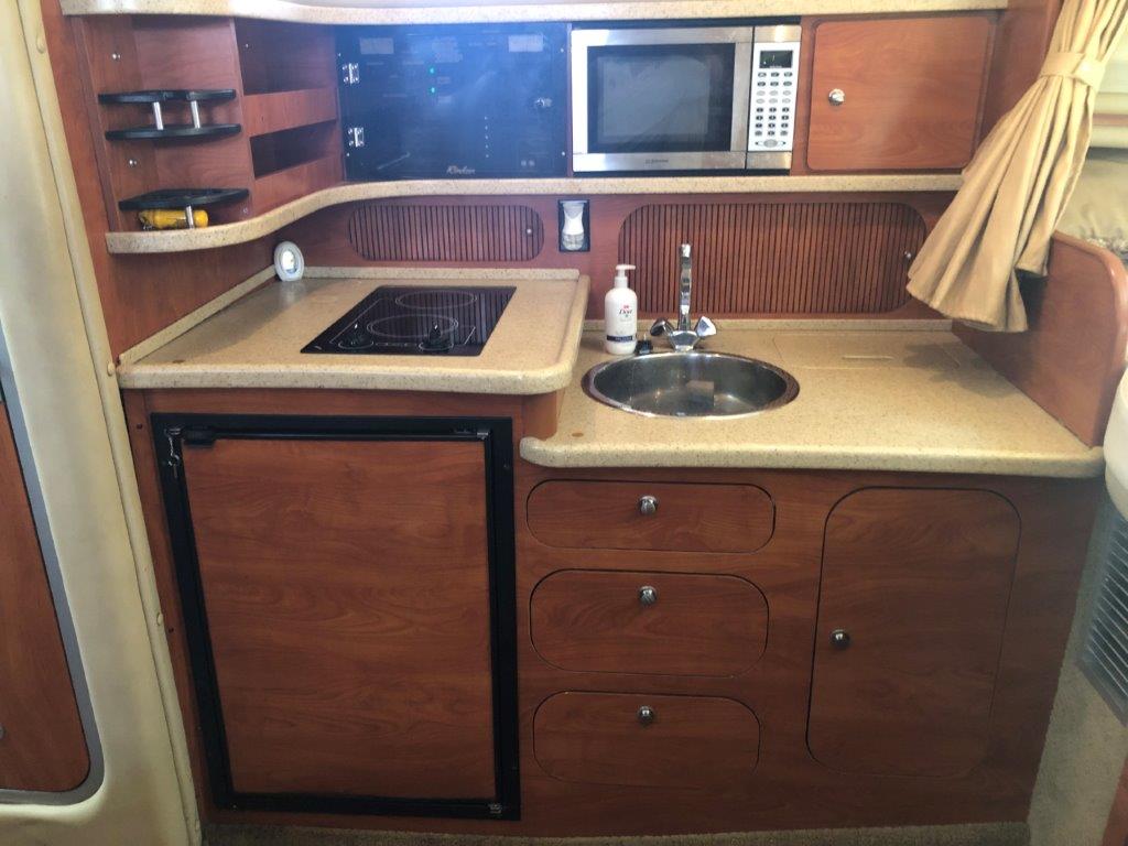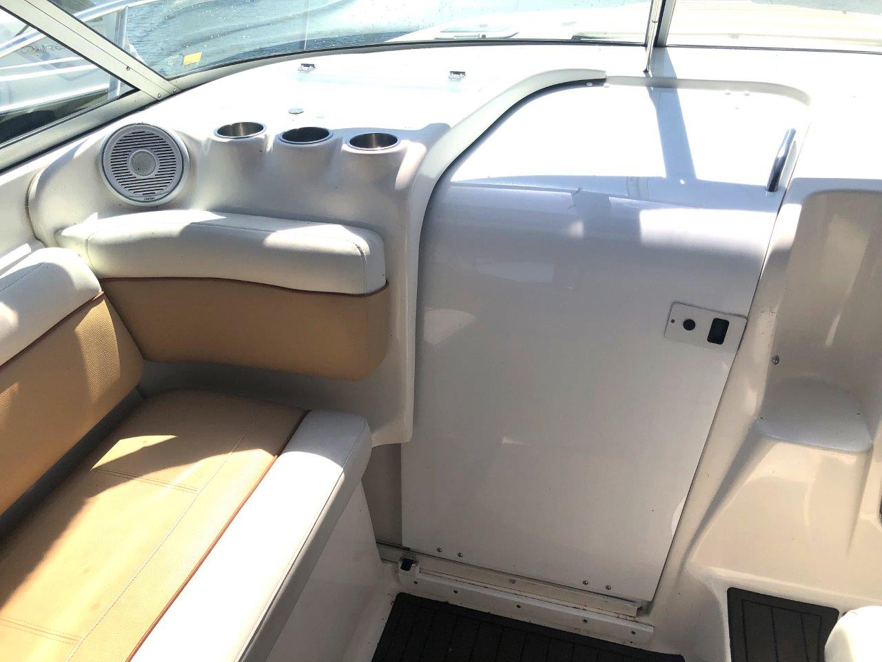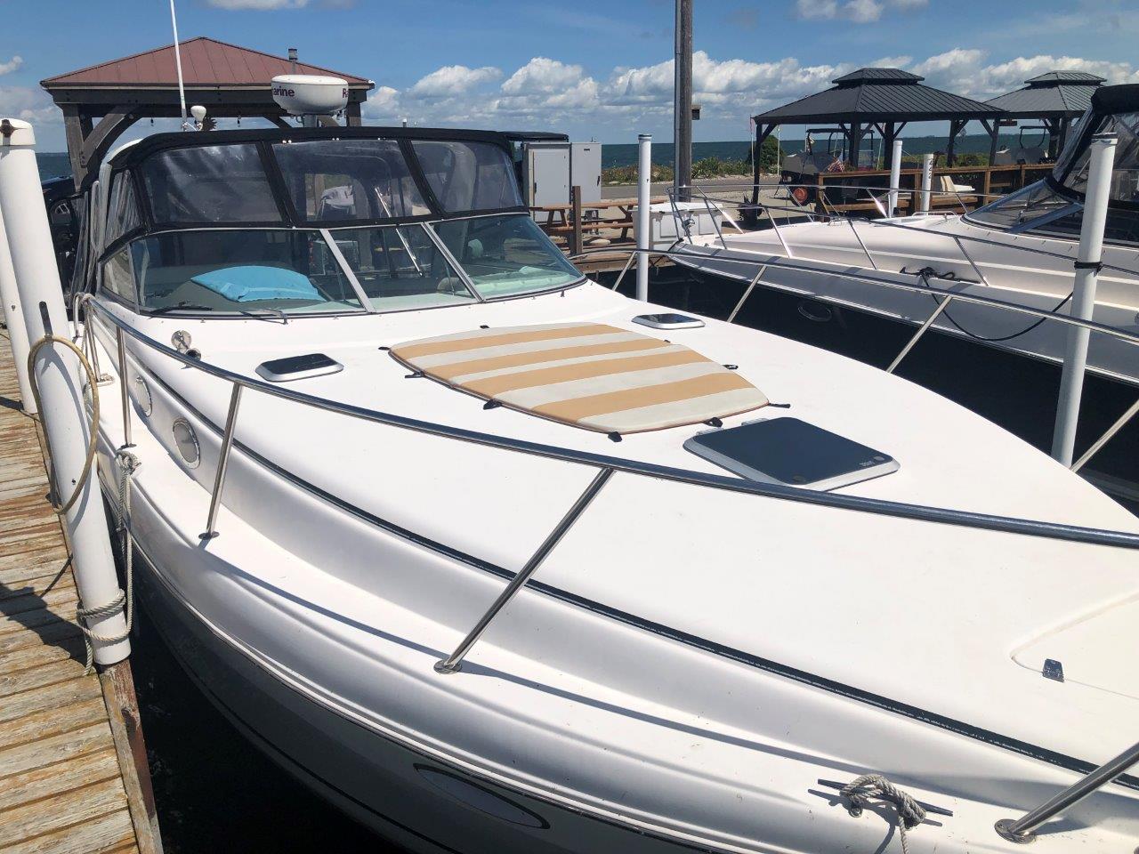 Winter storage included…don’t miss this terrific value on a high-volume and ultra-functional cruiser! Her original owner has enjoyed her in fresh water only and has her priced to sell. Other highlights include twin Merc 6.2 MPI’s with Bravo 3 Drives, generator with sound box, air & heat, new cockpit upholstery, anchor windlass, extended swim platform, cockpit wetbar with icemaker & fridge, and new camper canvas & enclosures. Please inquire for more details!