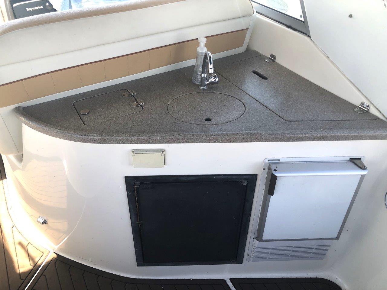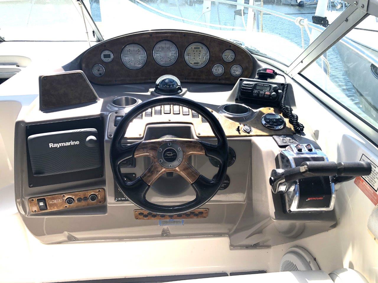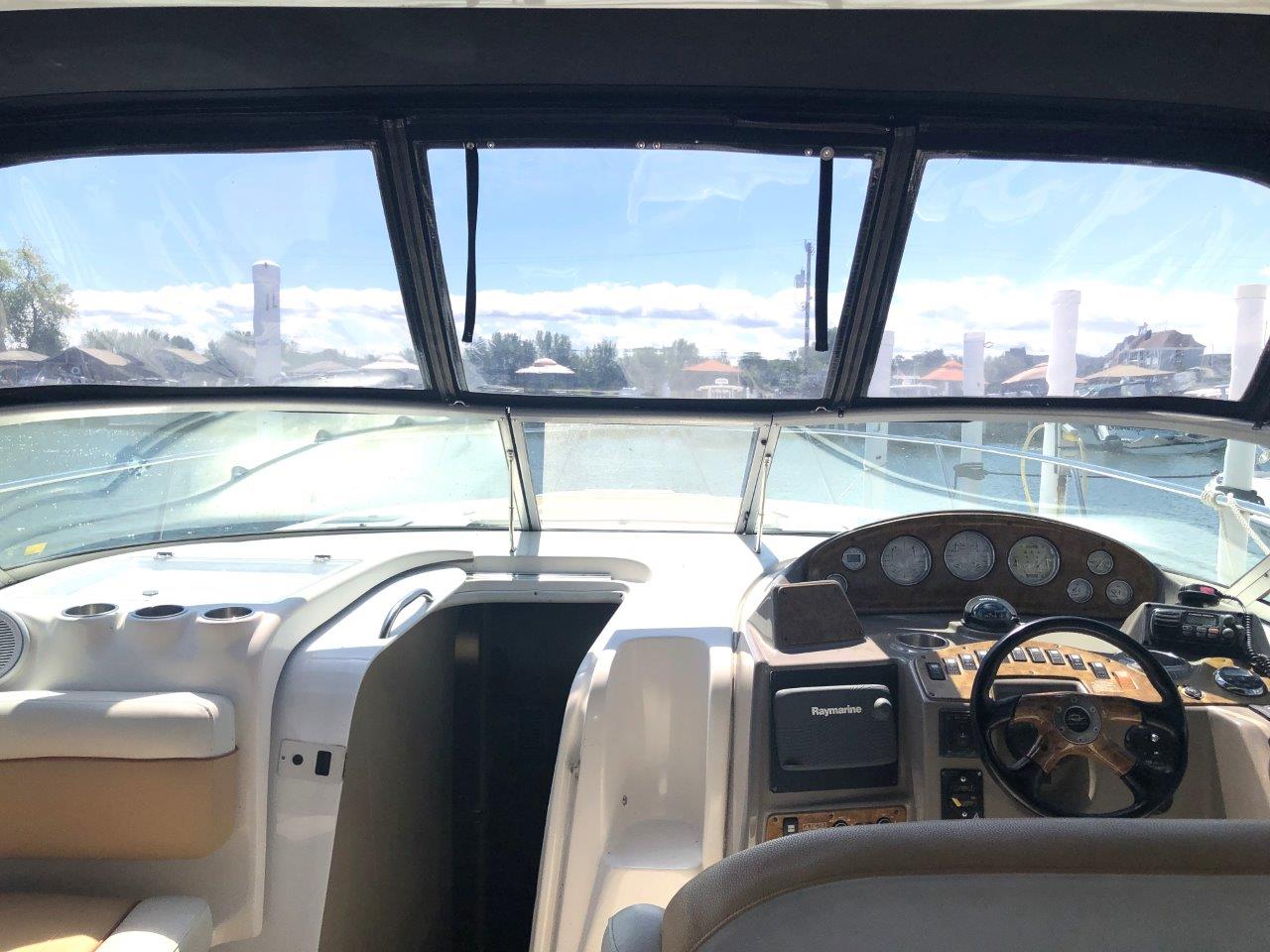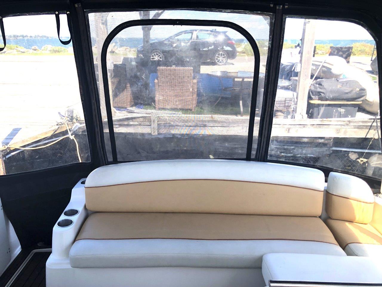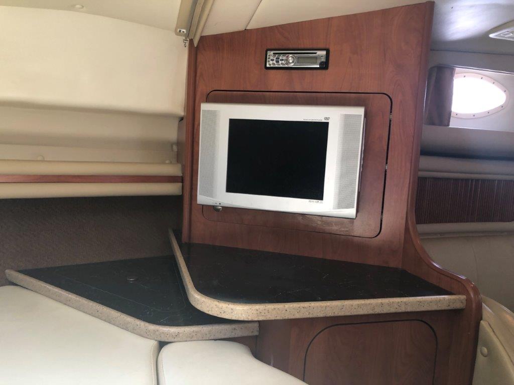 Winter storage included…don’t miss this terrific value on a high-volume and ultra-functional cruiser! Her original owner has enjoyed her in fresh water only and has her priced to sell. Other highlights include twin Merc 6.2 MPI’s with Bravo 3 Drives, generator with sound box, air & heat, new cockpit upholstery, anchor windlass, extended swim platform, cockpit wetbar with icemaker & fridge, and new camper canvas & enclosures. Please inquire for more details!