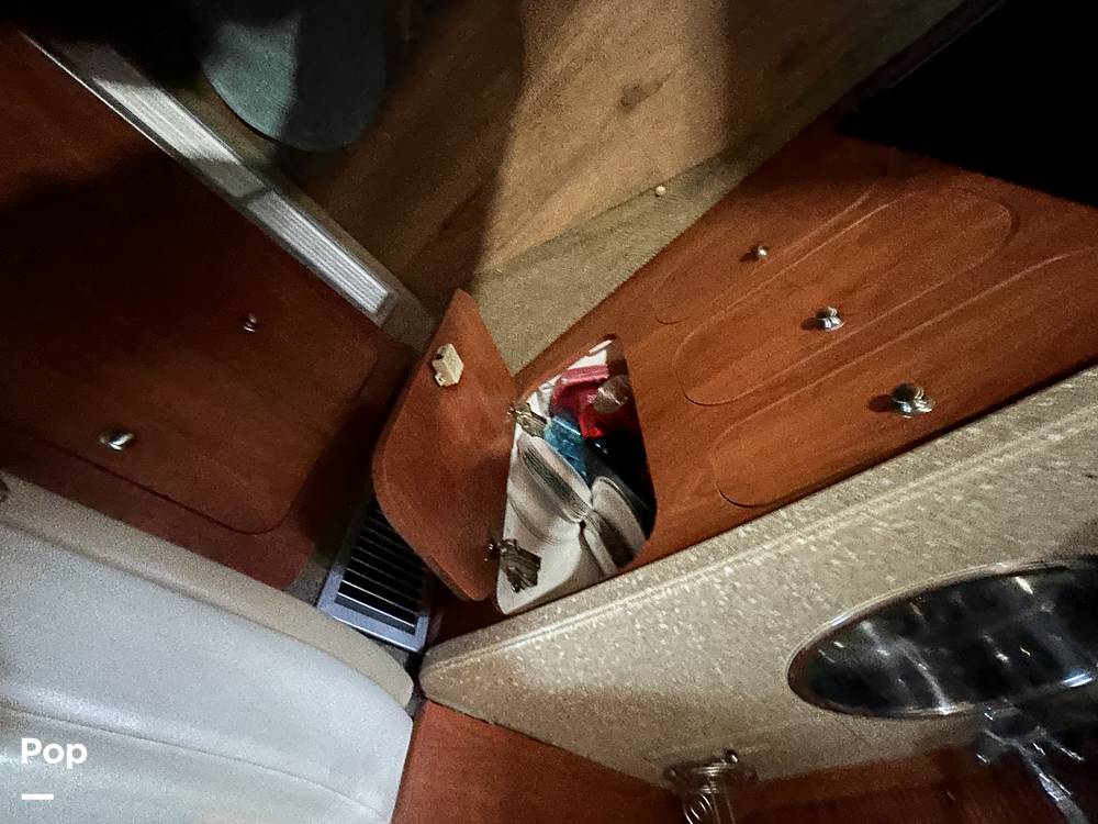 Powered by twin Volvo Penta 5.7L OSi engines producing 280 horsepower each, the boat gets up on plane quickly and handles beautifully. The DPS-B outdrives were just serviced in 2024, and the dual stainless-steel props add to its smooth and efficient performance.