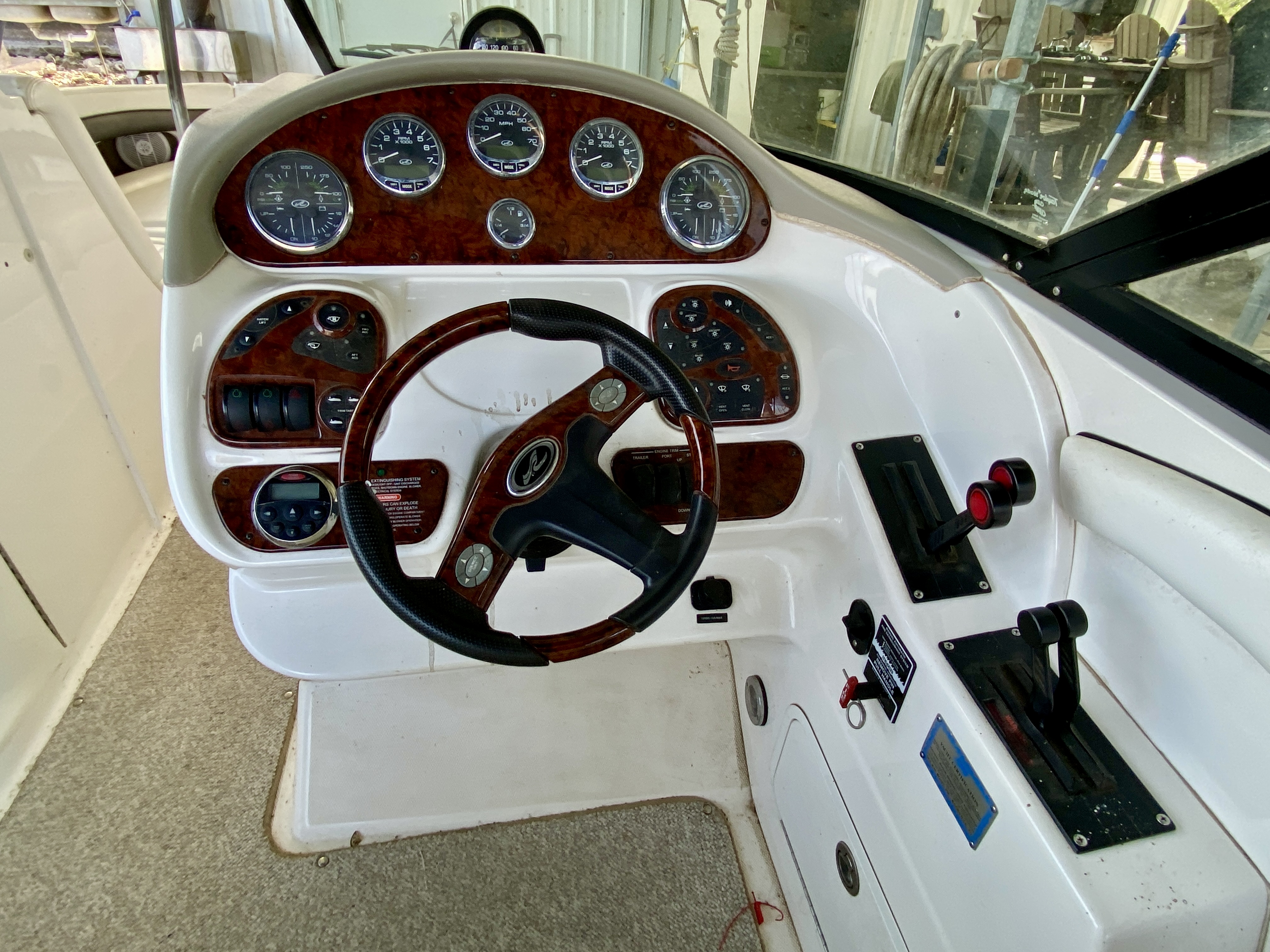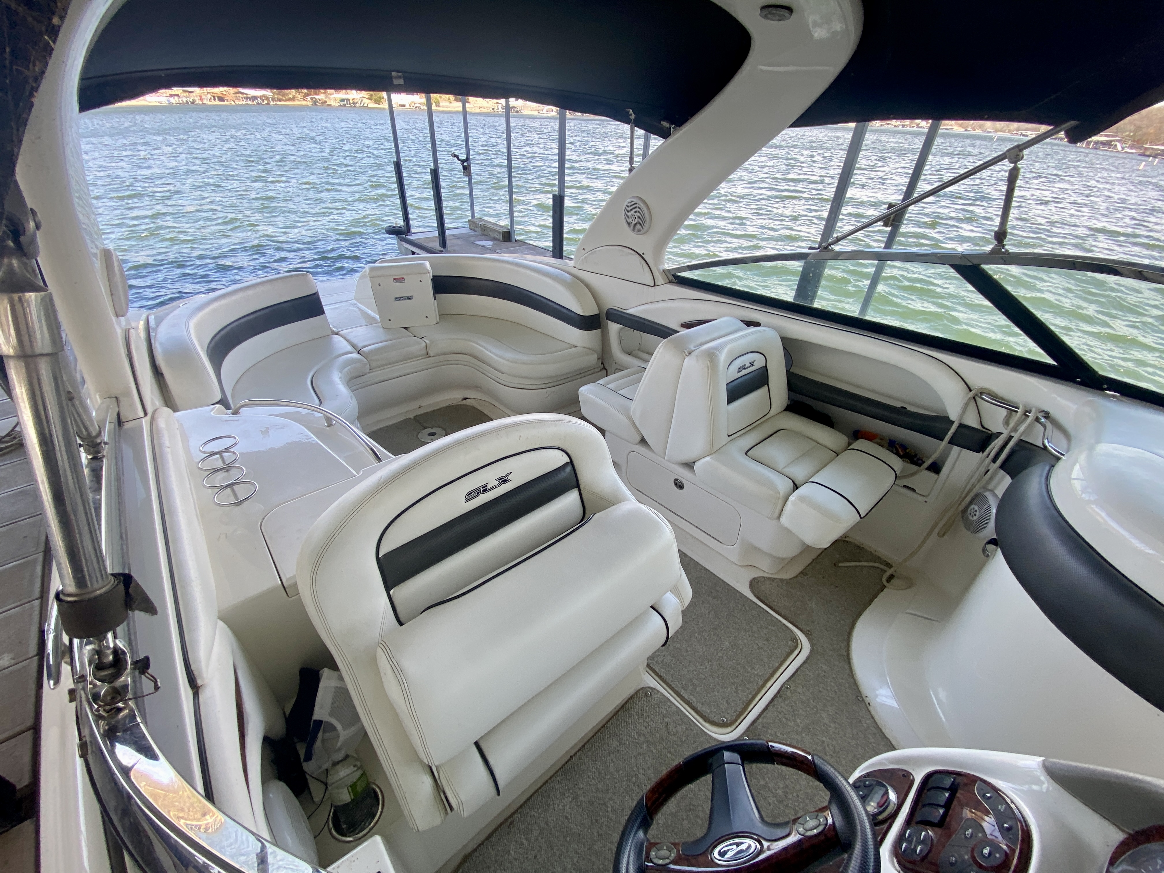 Deck/Hull: Anchor, Shore Power, Compass, 4 Fenders, Windshield Wipers, Shore Water, Wet bar with refrigerator and sink, bow filler cushions, extended swimplatform, transom storage, in floor ski locker.