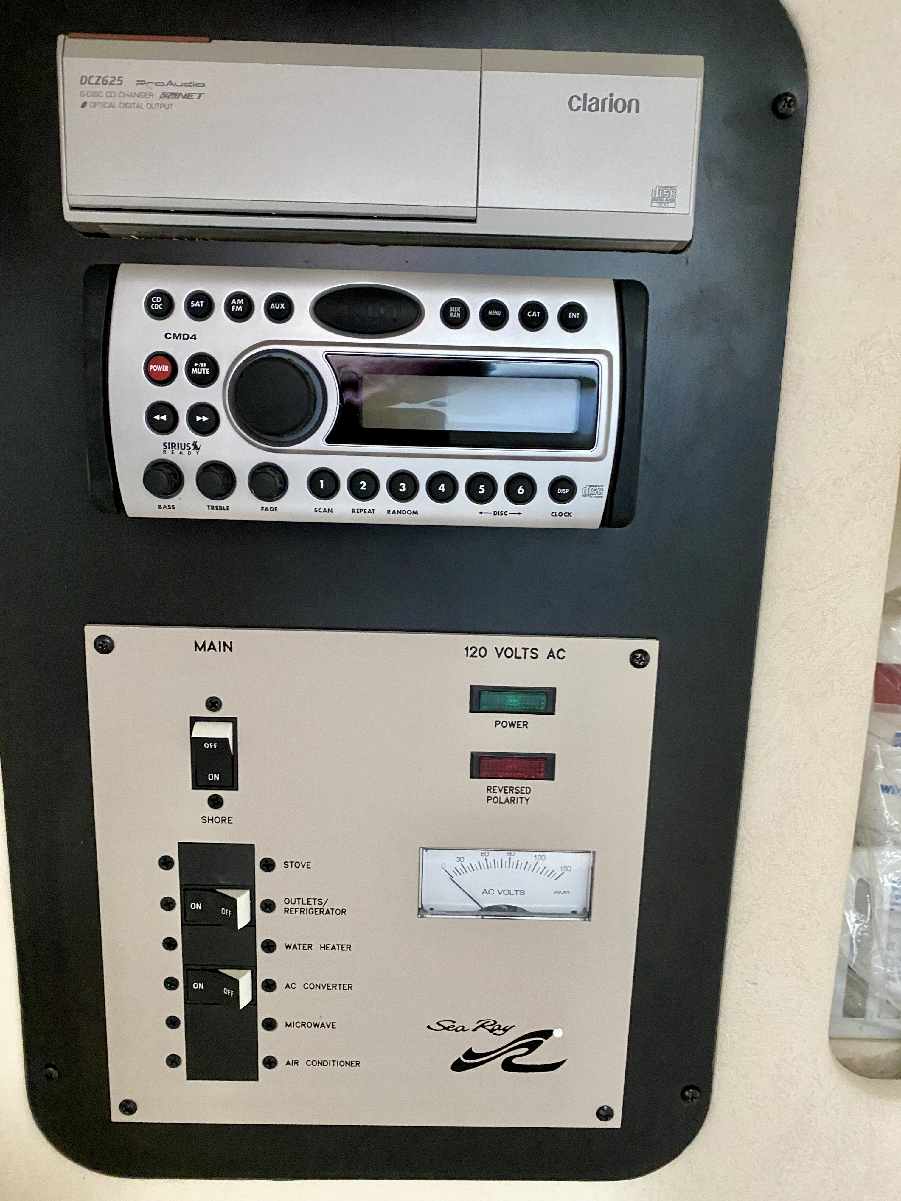 Accommodations: Enclosed vacuflush head with sink, Clarion Marine stereo with AM/FM/6 disc CD and remote at helm.