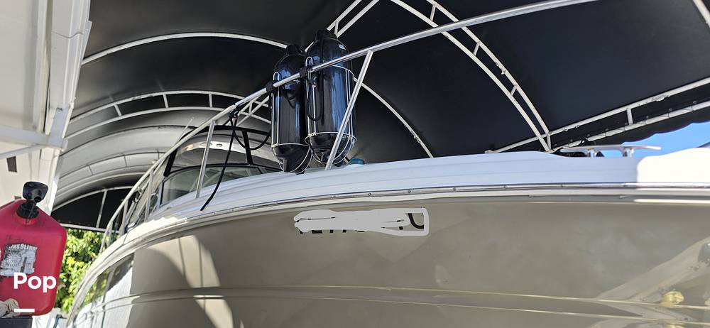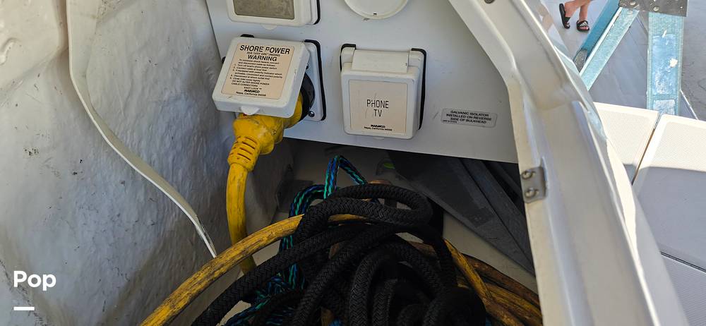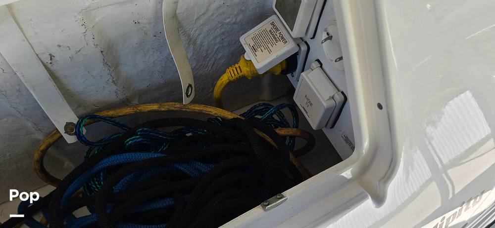 Reverse cycle heat and air, full camper canvas, Bimini tops, and cockpit cover. The cockpit has a wet bar and refrigerator. Windlass anchor, remote control spotlight, fender racks, transom shower, both bow and cockpit sun pads. The enclosed head has a Vaculas head, sink, and shower. Clarion stereo with CD changer, HDTV, 2 DVD players. The galley has a 2 burner cook top, sink, microwave, refrigerator, cherry cabinets and Corian counter tops.