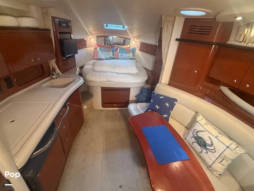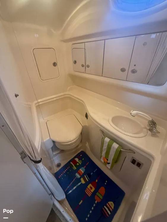Powered by dual Mercruiser MX 6.2L MPI inboard motors. The starboard motor has had a long block replacement. The port motor has had head work. This Sea Ray also has a generator to power systems when away from the dock. There is onboard air conditioning, a full galley, an onboard head, and plenty of room to sleep with a forward bedroom, pull-out lounger sofa, and the rear mid-berth.