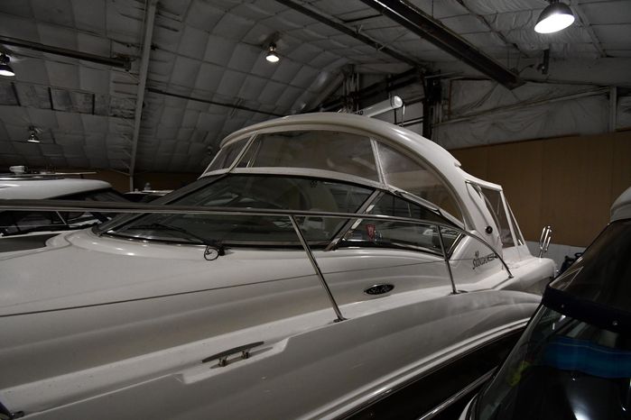 Freshwater / Great Lakes boat since new this vessel features Twin Cummins QSB5.9 380 HO Diesel Engines with only 634 original hours (Note Mercury SmartCraft Display). Notable features include but are not limited to the following: Air-Conditioning & Heat (2-Units w/Cockpit AC/Heat), Head (Vacuflush) w/Vanity/Sink/Stall-Shower, Windlass Anchor w/Forward Pedal Controls (Note Polished Stainless-Steel Anchor), Bow-Thruster, Onan 9MDK8K Diesel Generator, Upgraded Simrad Electronics Package w/Dual Color / TouchScreen Display's w/Radar/GPS.Chartplotter/Sounder - Simrad Autopilot - Simrad VHF Marine Radio, Fusion Premium Sound System w/AMP/Subwoofer, (Note LCD-Television in Forward Stateroom, Electric Operated Flip-Down LCD-Television in Salon), Cockpit Wet Bar w/Sink/Refrigerator, and MUCH more!