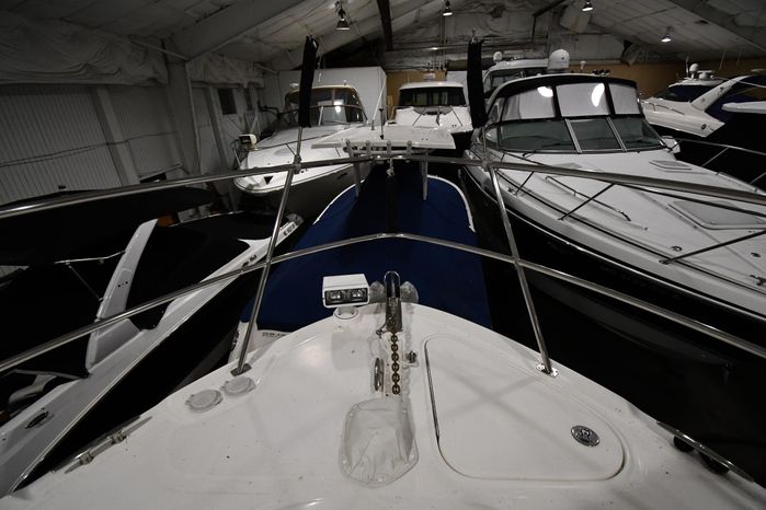 Freshwater / Great Lakes boat since new this vessel features Twin Cummins QSB5.9 380 HO Diesel Engines with only 634 original hours (Note Mercury SmartCraft Display). Notable features include but are not limited to the following: Air-Conditioning & Heat (2-Units w/Cockpit AC/Heat), Head (Vacuflush) w/Vanity/Sink/Stall-Shower, Windlass Anchor w/Forward Pedal Controls (Note Polished Stainless-Steel Anchor), Bow-Thruster, Onan 9MDK8K Diesel Generator, Upgraded Simrad Electronics Package w/Dual Color / TouchScreen Display's w/Radar/GPS.Chartplotter/Sounder - Simrad Autopilot - Simrad VHF Marine Radio, Fusion Premium Sound System w/AMP/Subwoofer, (Note LCD-Television in Forward Stateroom, Electric Operated Flip-Down LCD-Television in Salon), Cockpit Wet Bar w/Sink/Refrigerator, and MUCH more!