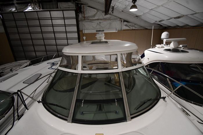 Freshwater / Great Lakes boat since new this vessel features Twin Cummins QSB5.9 380 HO Diesel Engines with only 634 original hours (Note Mercury SmartCraft Display). Notable features include but are not limited to the following: Air-Conditioning & Heat (2-Units w/Cockpit AC/Heat), Head (Vacuflush) w/Vanity/Sink/Stall-Shower, Windlass Anchor w/Forward Pedal Controls (Note Polished Stainless-Steel Anchor), Bow-Thruster, Onan 9MDK8K Diesel Generator, Upgraded Simrad Electronics Package w/Dual Color / TouchScreen Display's w/Radar/GPS.Chartplotter/Sounder - Simrad Autopilot - Simrad VHF Marine Radio, Fusion Premium Sound System w/AMP/Subwoofer, (Note LCD-Television in Forward Stateroom, Electric Operated Flip-Down LCD-Television in Salon), Cockpit Wet Bar w/Sink/Refrigerator, and MUCH more!
