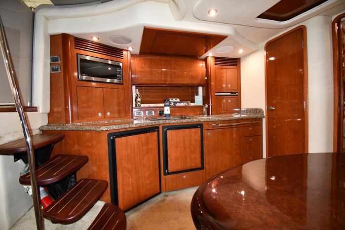 Freshwater / Great Lakes boat since new this vessel features Twin Cummins QSB5.9 380 HO Diesel Engines with only 634 original hours (Note Mercury SmartCraft Display). Notable features include but are not limited to the following: Air-Conditioning & Heat (2-Units w/Cockpit AC/Heat), Head (Vacuflush) w/Vanity/Sink/Stall-Shower, Windlass Anchor w/Forward Pedal Controls (Note Polished Stainless-Steel Anchor), Bow-Thruster, Onan 9MDK8K Diesel Generator, Upgraded Simrad Electronics Package w/Dual Color / TouchScreen Display's w/Radar/GPS.Chartplotter/Sounder - Simrad Autopilot - Simrad VHF Marine Radio, Fusion Premium Sound System w/AMP/Subwoofer, (Note LCD-Television in Forward Stateroom, Electric Operated Flip-Down LCD-Television in Salon), Cockpit Wet Bar w/Sink/Refrigerator, and MUCH more!