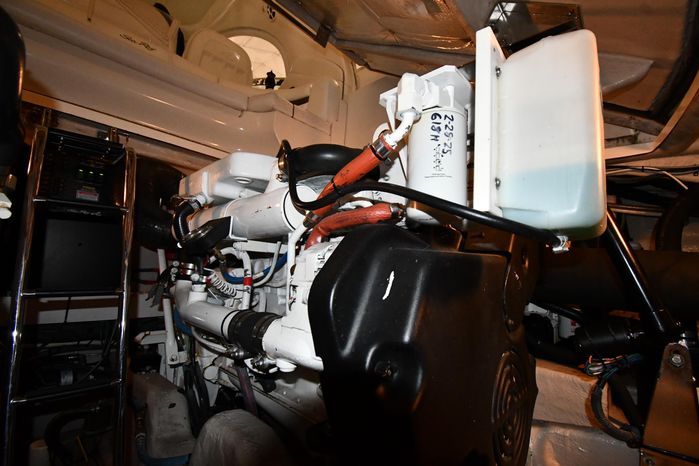 Freshwater / Great Lakes boat since new this vessel features Twin Cummins QSB5.9 380 HO Diesel Engines with only 634 original hours (Note Mercury SmartCraft Display). Notable features include but are not limited to the following: Air-Conditioning & Heat (2-Units w/Cockpit AC/Heat), Head (Vacuflush) w/Vanity/Sink/Stall-Shower, Windlass Anchor w/Forward Pedal Controls (Note Polished Stainless-Steel Anchor), Bow-Thruster, Onan 9MDK8K Diesel Generator, Upgraded Simrad Electronics Package w/Dual Color / TouchScreen Display's w/Radar/GPS.Chartplotter/Sounder - Simrad Autopilot - Simrad VHF Marine Radio, Fusion Premium Sound System w/AMP/Subwoofer, (Note LCD-Television in Forward Stateroom, Electric Operated Flip-Down LCD-Television in Salon), Cockpit Wet Bar w/Sink/Refrigerator, and MUCH more!
