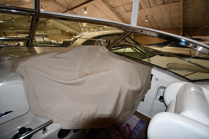 Freshwater / Great Lakes boat since new this vessel features Twin Cummins QSB5.9 380 HO Diesel Engines with only 634 original hours (Note Mercury SmartCraft Display). Notable features include but are not limited to the following: Air-Conditioning & Heat (2-Units w/Cockpit AC/Heat), Head (Vacuflush) w/Vanity/Sink/Stall-Shower, Windlass Anchor w/Forward Pedal Controls (Note Polished Stainless-Steel Anchor), Bow-Thruster, Onan 9MDK8K Diesel Generator, Upgraded Simrad Electronics Package w/Dual Color / TouchScreen Display's w/Radar/GPS.Chartplotter/Sounder - Simrad Autopilot - Simrad VHF Marine Radio, Fusion Premium Sound System w/AMP/Subwoofer, (Note LCD-Television in Forward Stateroom, Electric Operated Flip-Down LCD-Television in Salon), Cockpit Wet Bar w/Sink/Refrigerator, and MUCH more!