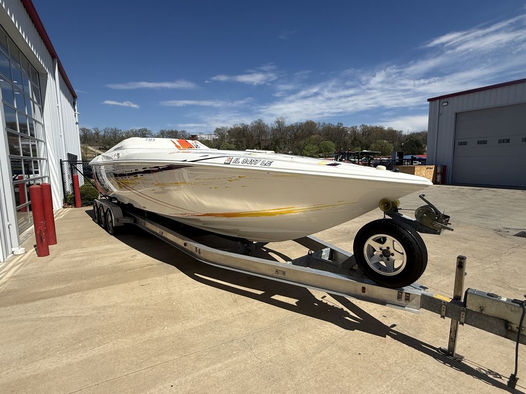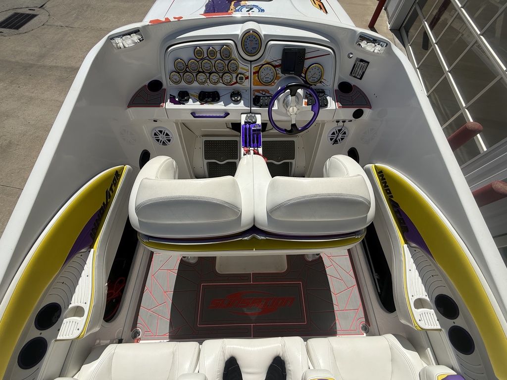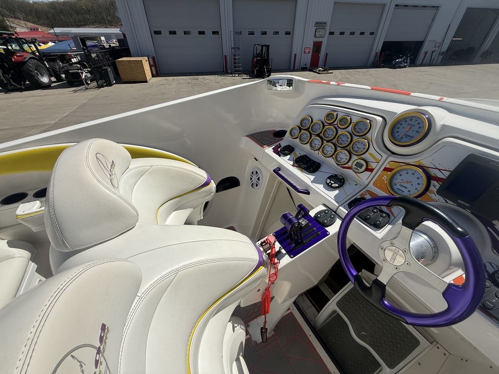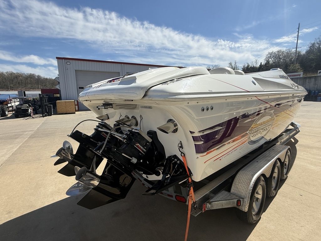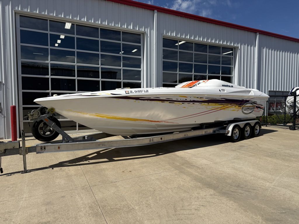 2006 Sunsation 32 Innovator Powered by Twin Mercury Racing 525's, custom paint, 280 kplanes, fold down swim ladder, pop-up Cleats, Mechanical indicators, Livorsi Gauges and controls, GPS speedometer, GPS Chart Plotter, Cabin lounge area, trailer included