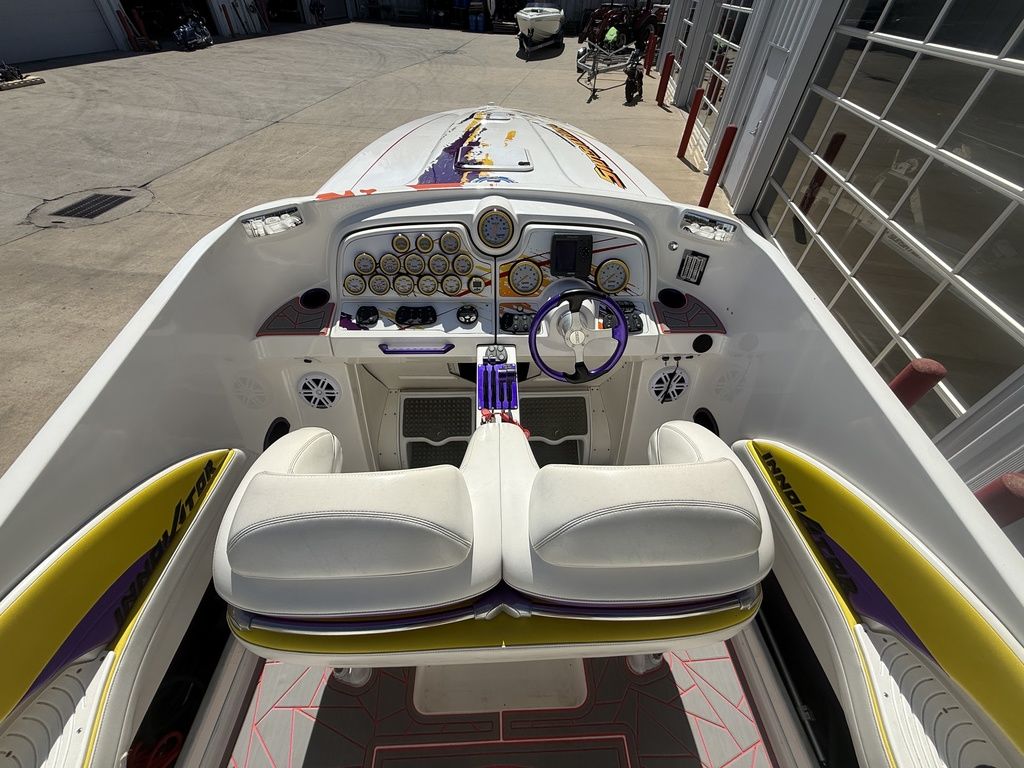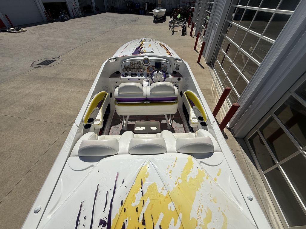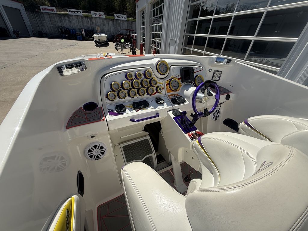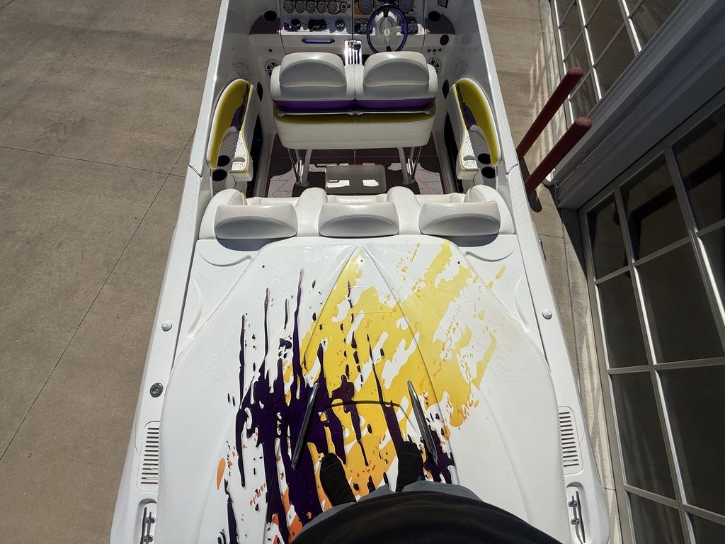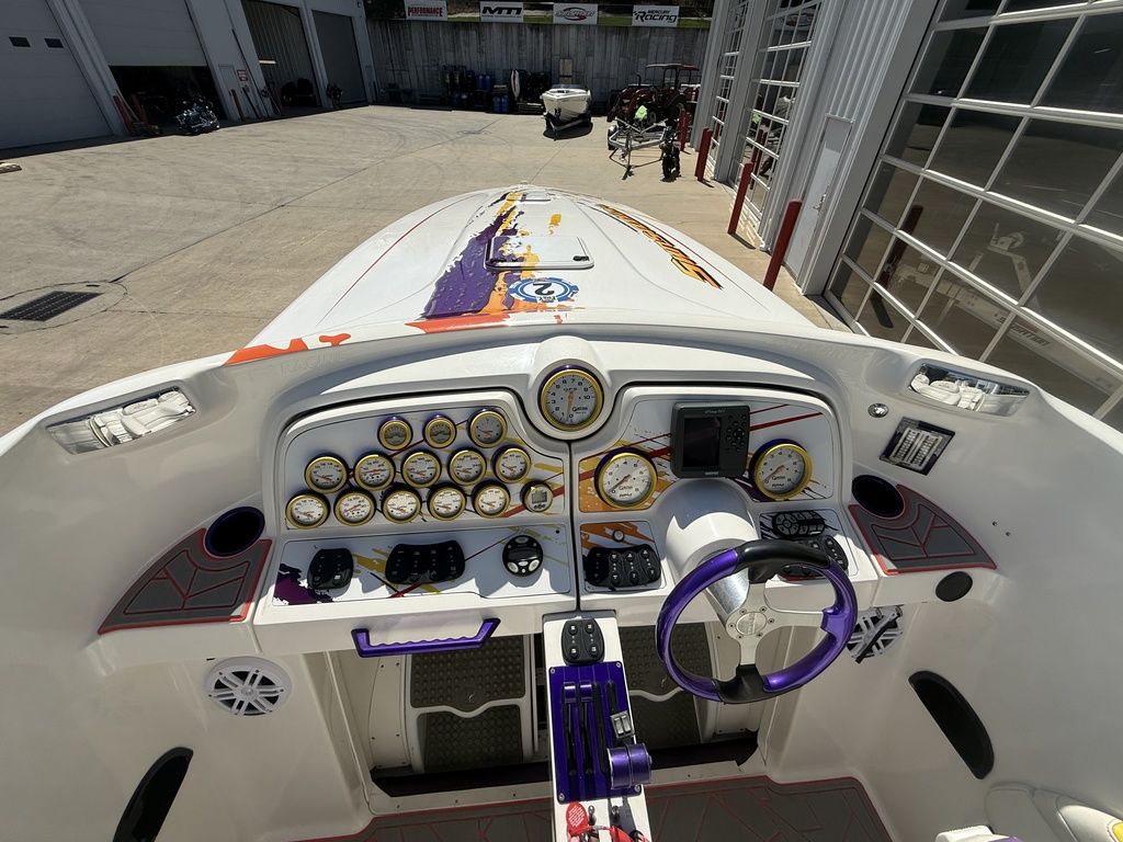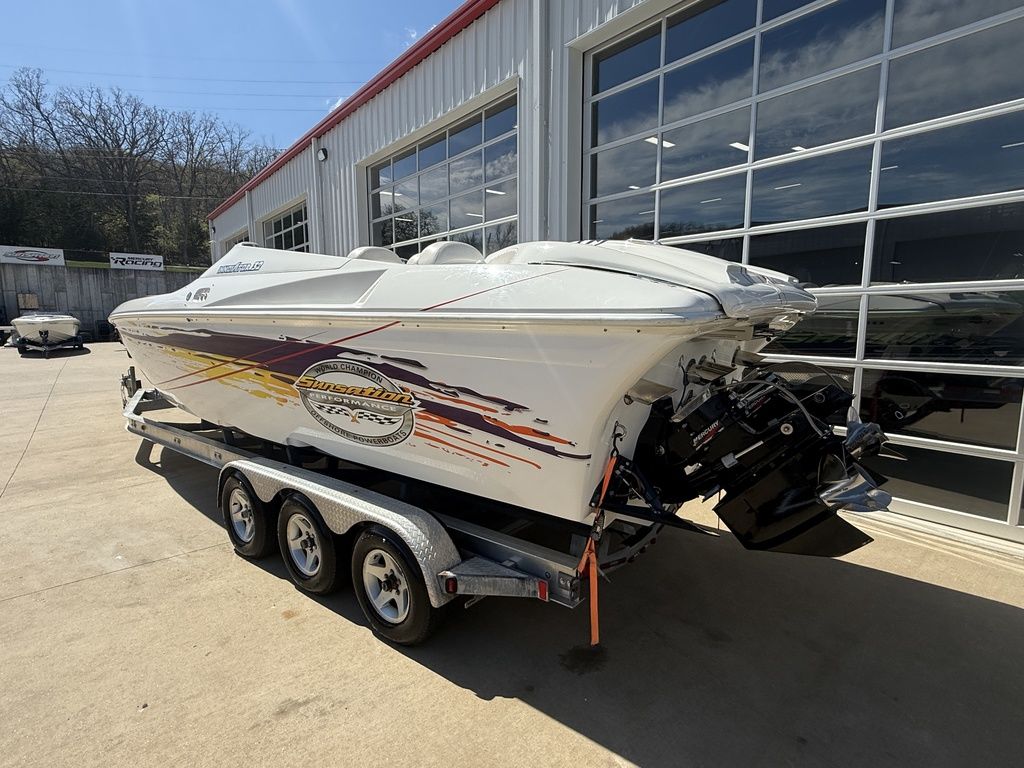 2006 Sunsation 32 Innovator Powered by Twin Mercury Racing 525's, custom paint, 280 kplanes, fold down swim ladder, pop-up Cleats, Mechanical indicators, Livorsi Gauges and controls, GPS speedometer, GPS Chart Plotter, Cabin lounge area, trailer included