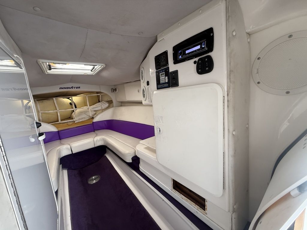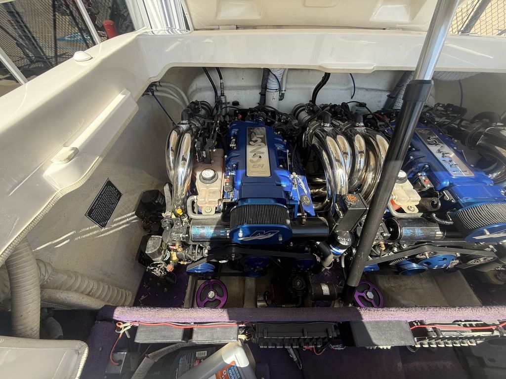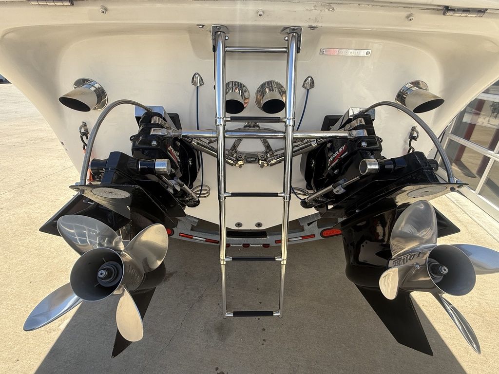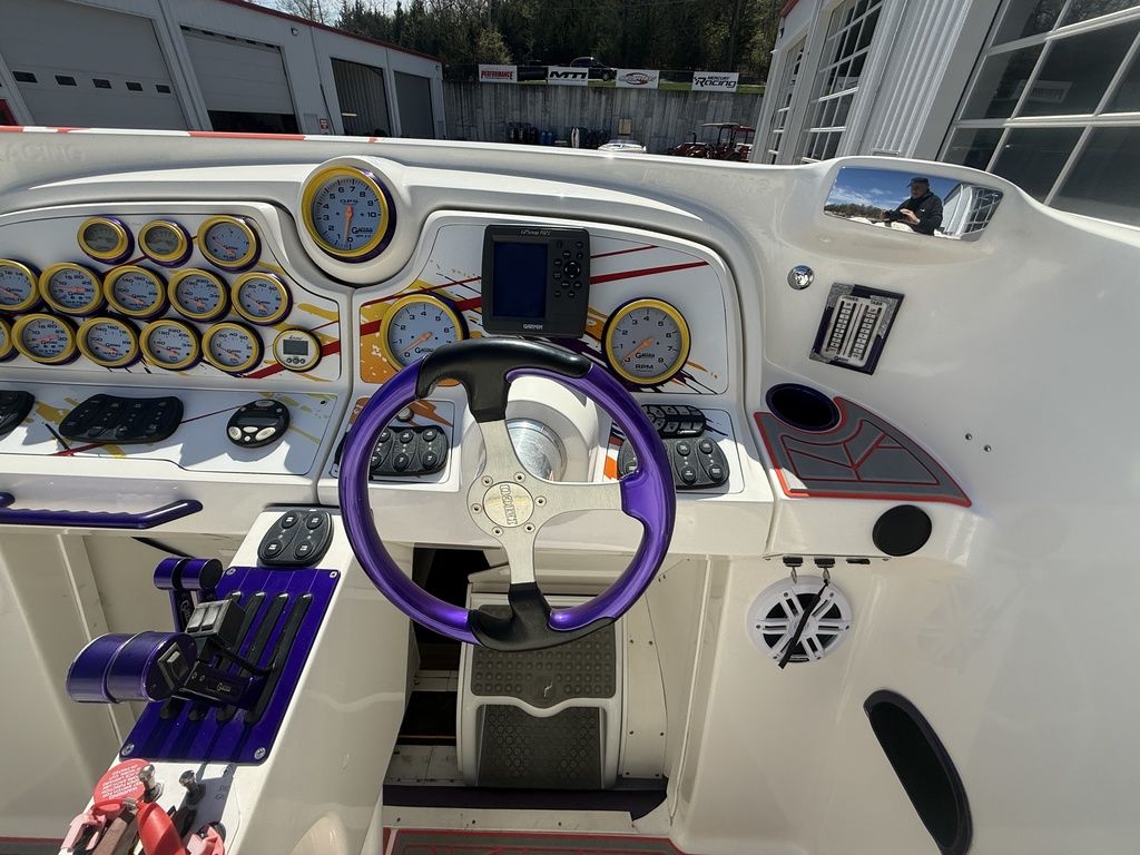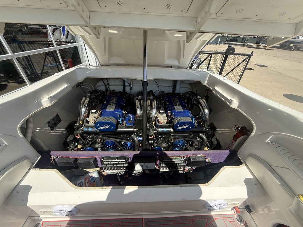 2006 Sunsation 32 Innovator Powered by Twin Mercury Racing 525's, custom paint, 280 kplanes, fold down swim ladder, pop-up Cleats, Mechanical indicators, Livorsi Gauges and controls, GPS speedometer, GPS Chart Plotter, Cabin lounge area, trailer included