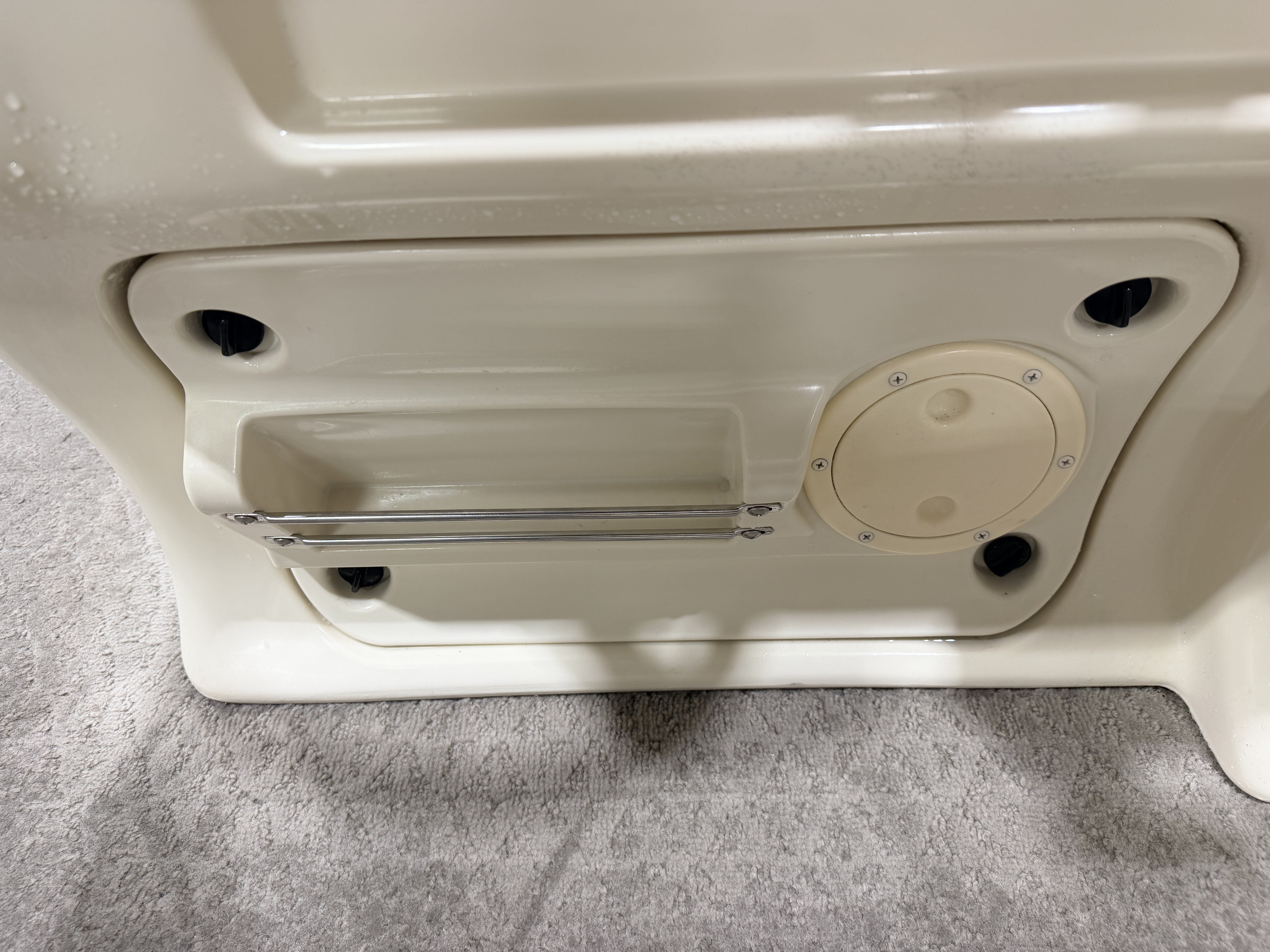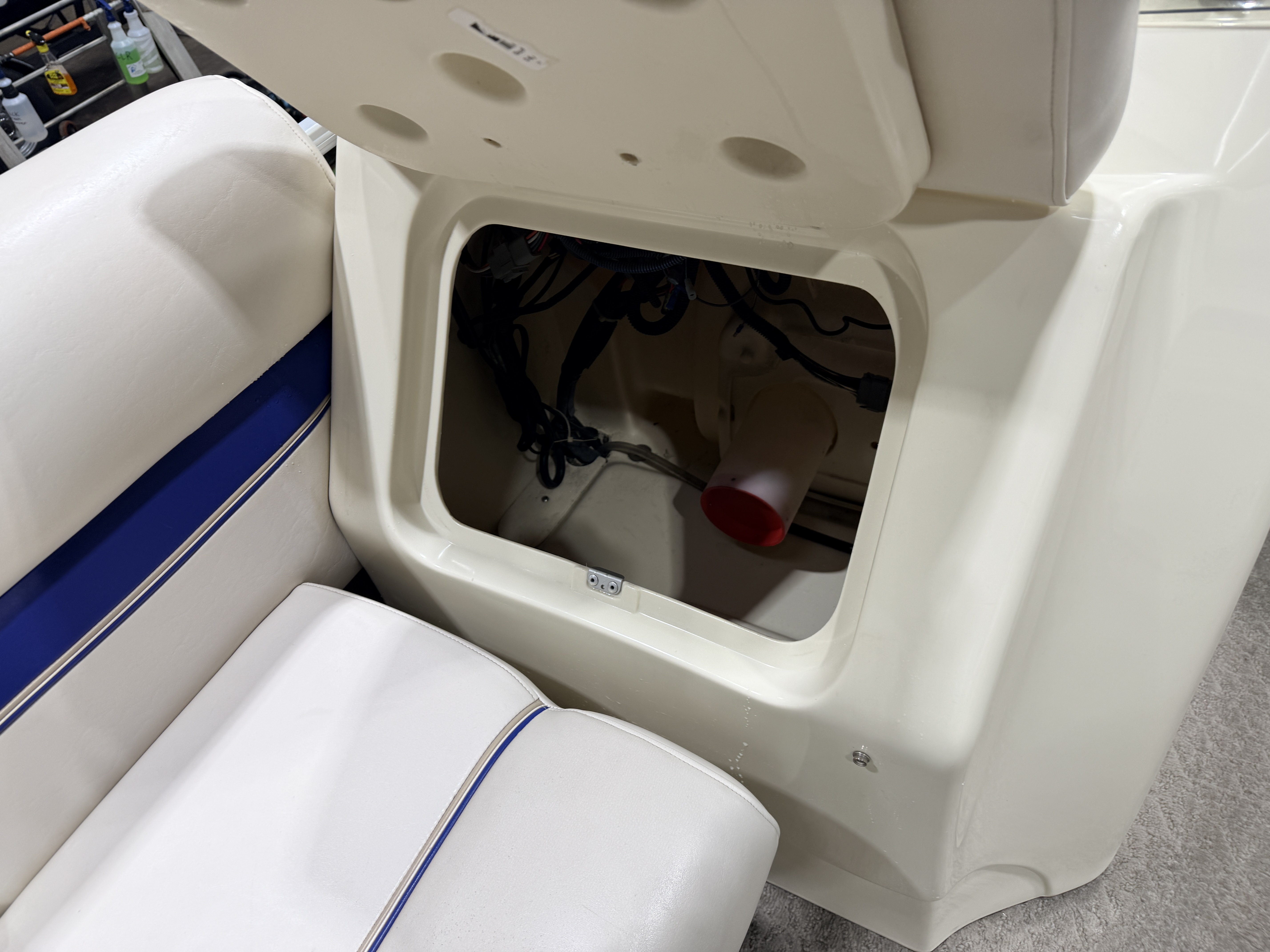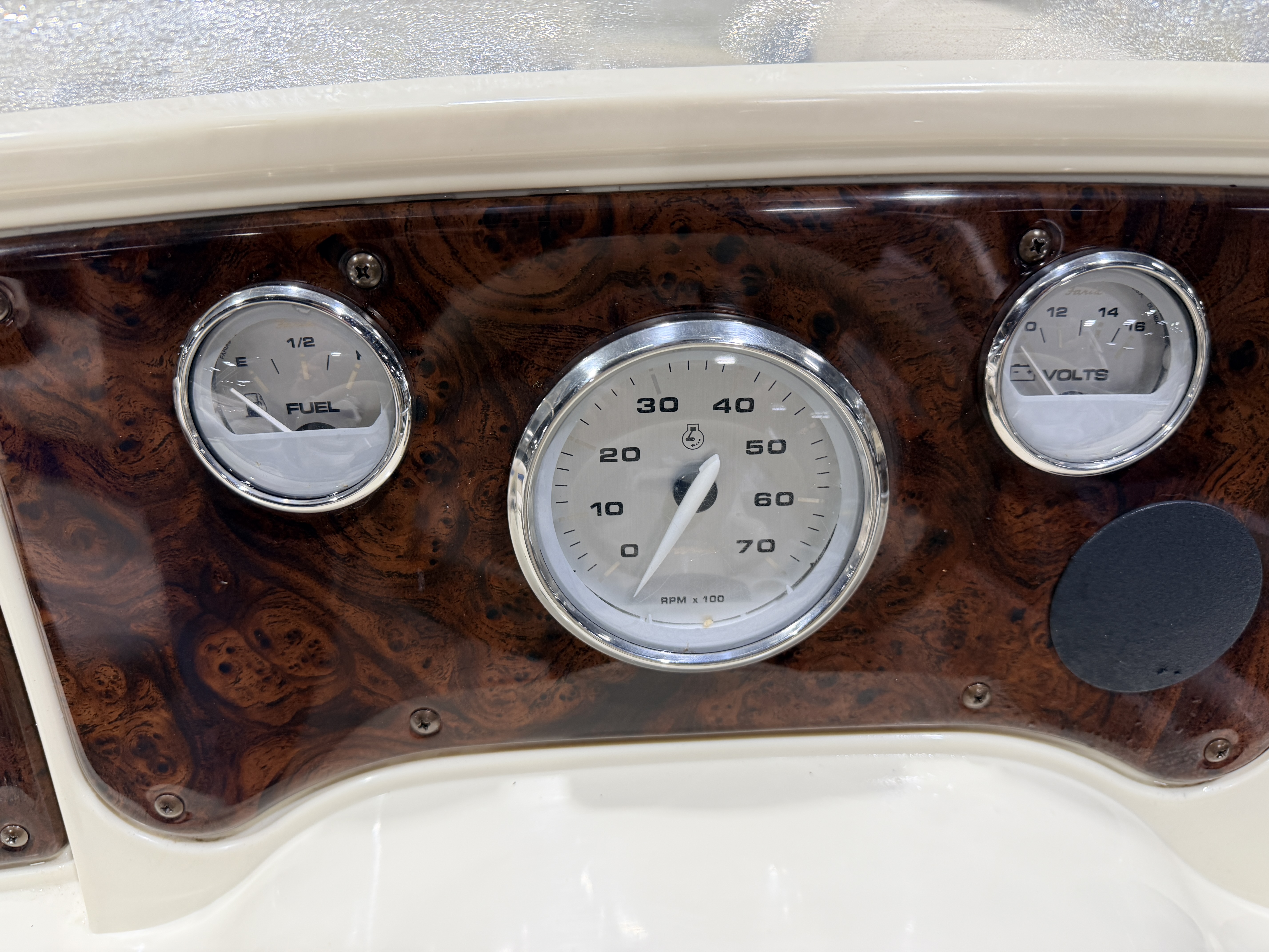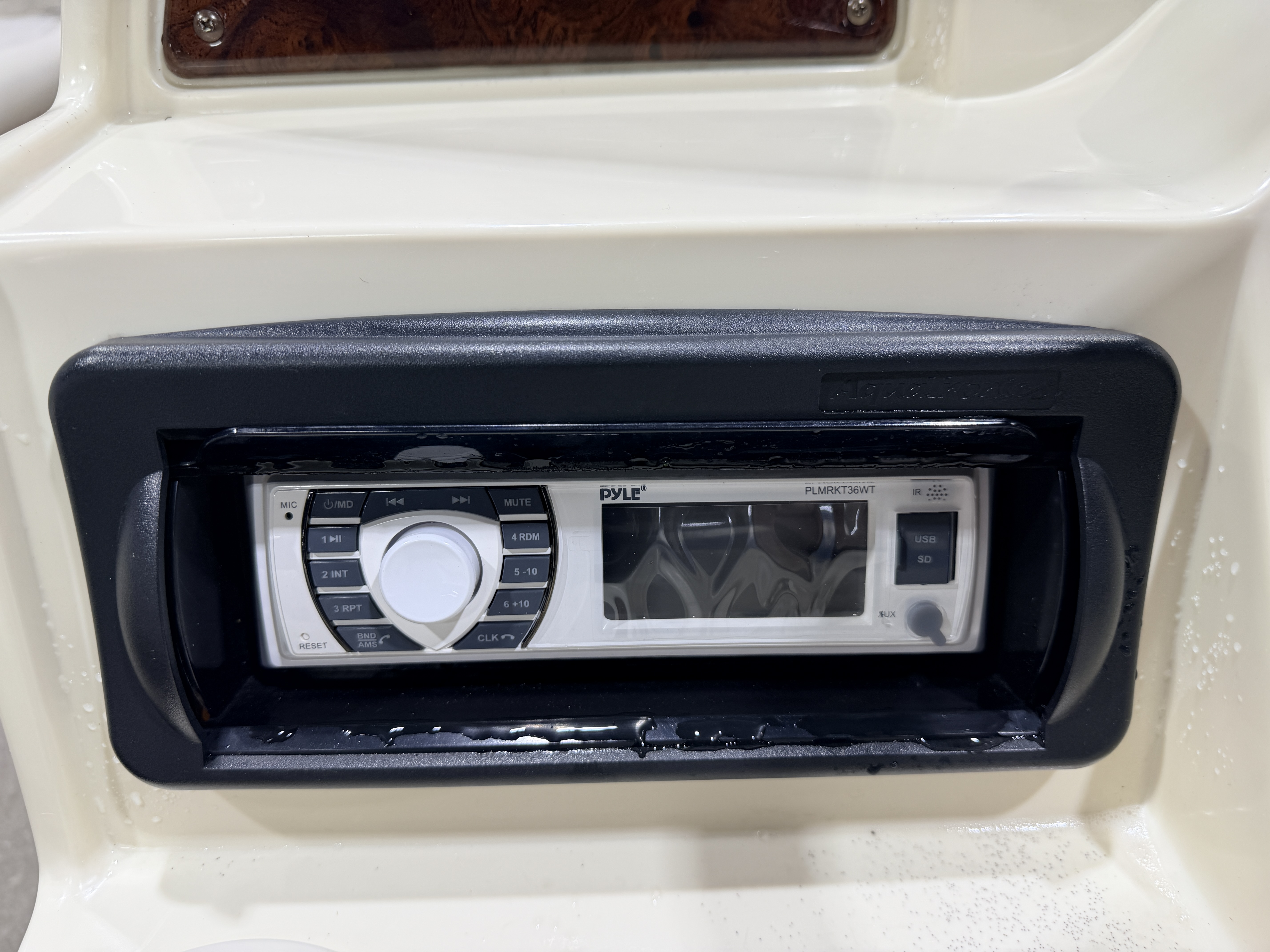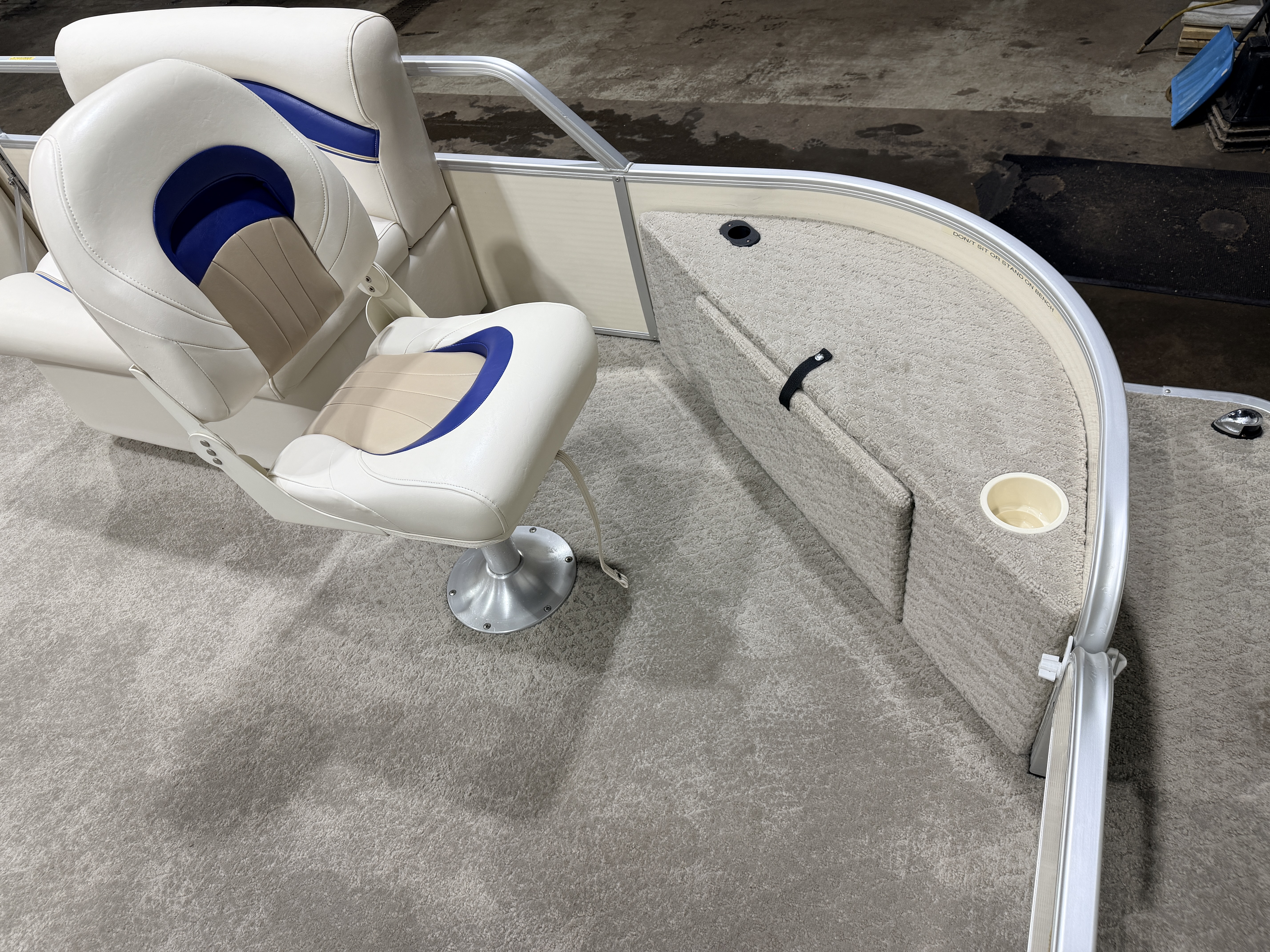 2006 Sweetwater 2386 F Quad Fish Pontoon with 90HP Yamaha Fourstroke EFI Outboard. Interior seating includes 4 fishing seats, an L-shaped couch, 1 lounge style couch, and a bench couch. The captain's chair is a bucket style seat with integrated drink holder. Helm includes a Tachometer, Fuel and Volt gauge, Pyle Bluetooth audio stereo with USB input. Additional features include in-seat storage, bimini top, docking lights, vertical rod storage, dual front consoles with cup holder, rod holder, and storage compartment, a water-tight storage pod in the helm, and table with cooler in the middle.