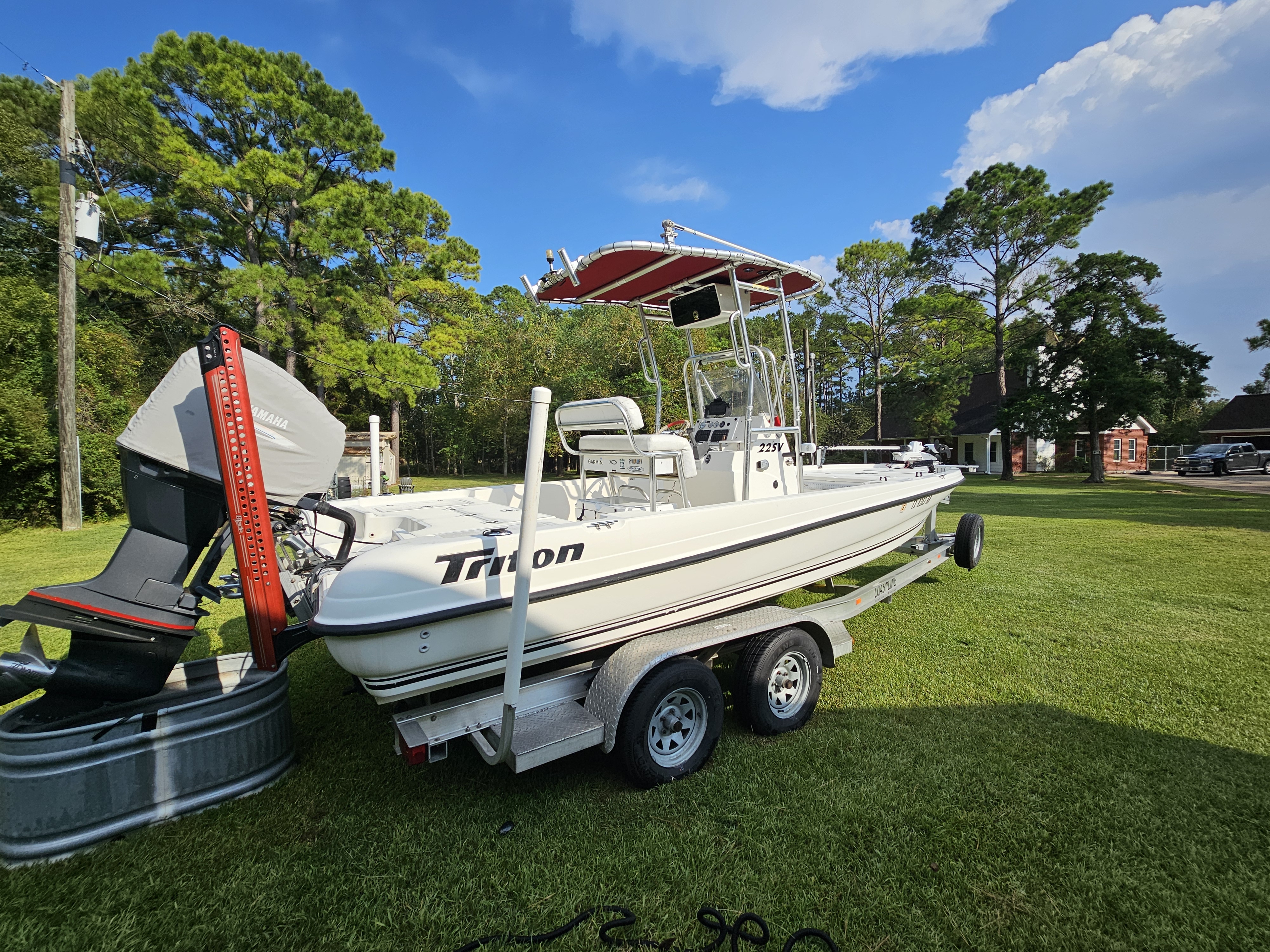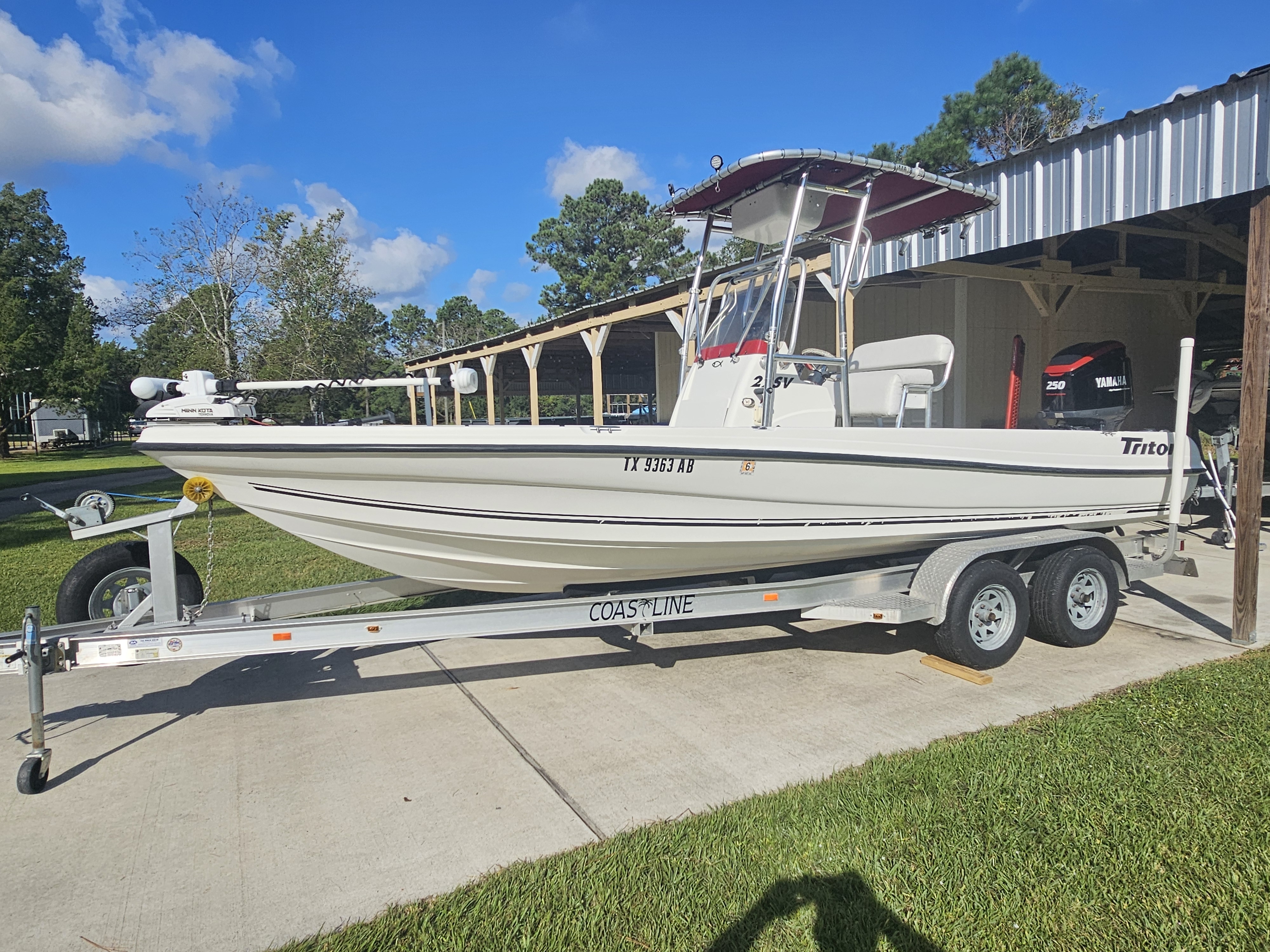 This beautiful boat is ready to get in the water today with you at the helm! It has been meticulously maintained and comes with all the necessary safety equipment to operate legally. The one owner unfortunately had a medical emergency and is no longer able to operate her. I have the titles to the hull, motor, and trailer. If this post is still up then its still available. 2006 TRITON 22SV - No soft spots on the boat and all live wells (x2) are operating. All electronics on the vessel are operating as they should. 2005 Yamaha 250hp 2 stroke engine with only 203 hours! That is not a typo, only 203 hours. She starts right up and runs like a champ! 2019 Coastline tandem trailer - Tires have plenty of life left on them. The trailer is in great shape an all lights are working properly. This boat has been outfitted with Garmin Echomap Ultra 106SV with the transducer. 8' Blade Power pole with remote. Minn Kota Riptide 80lb thrust with remote and spot lock. Jack plate. So much more. Contact me for more info.