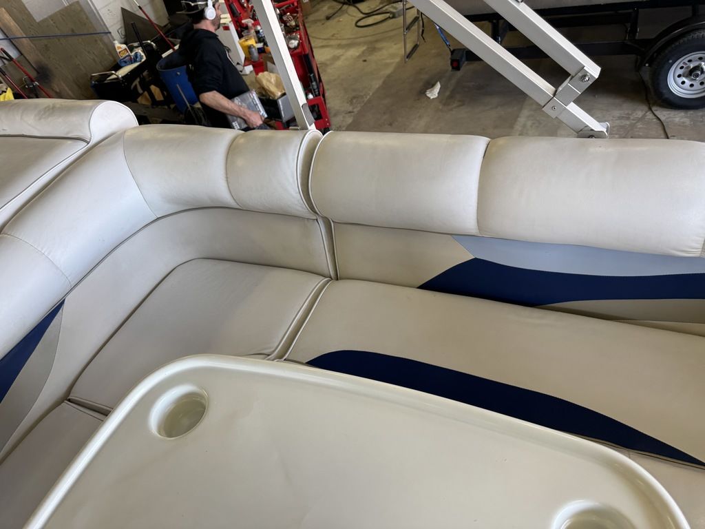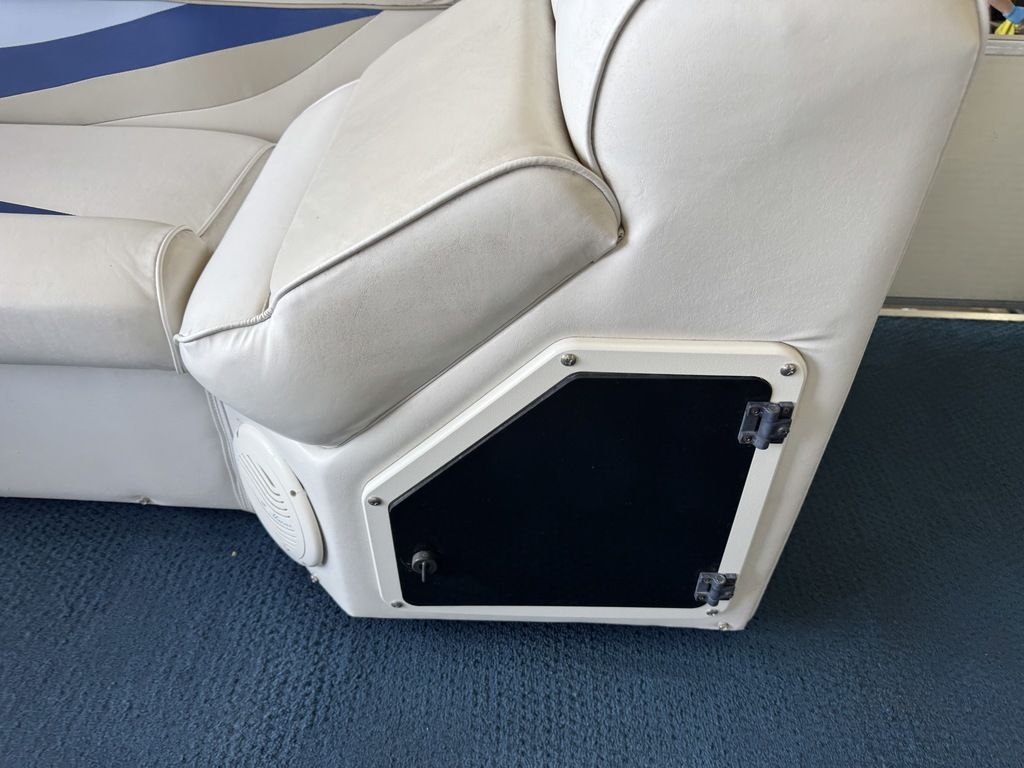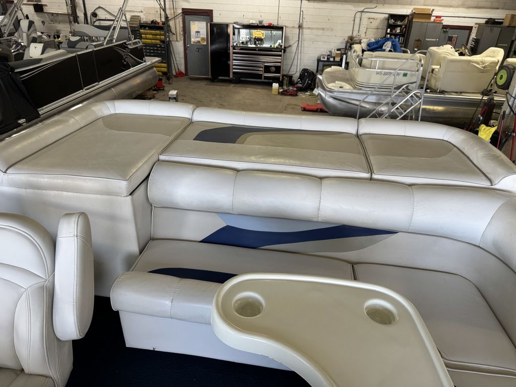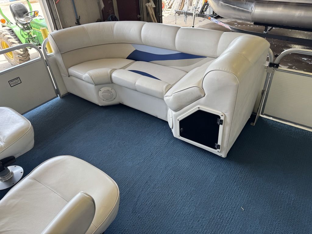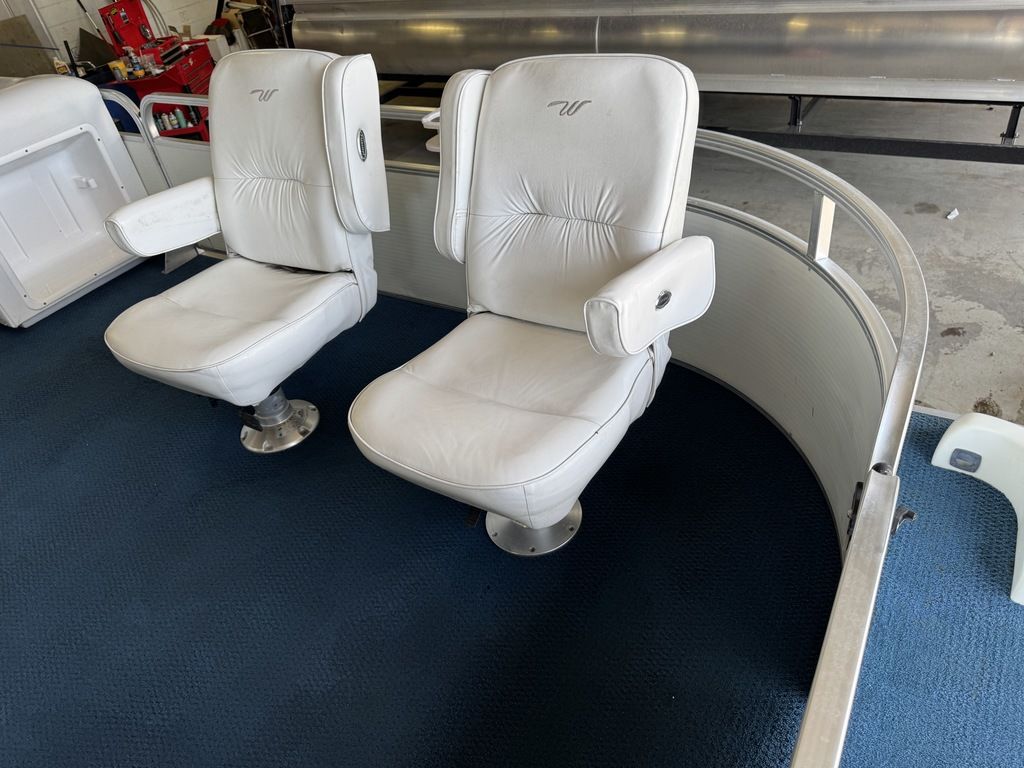 Outboard. This DL (Dual Lounge) layout pontoon features 2 captain's chairs along