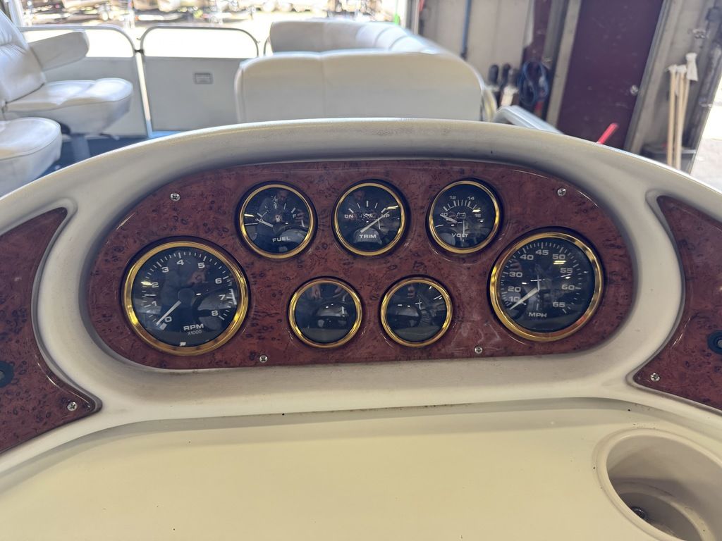 chair and helm. The helm features a Speedometer, Tachometer, Fuel, Volt and Trim
