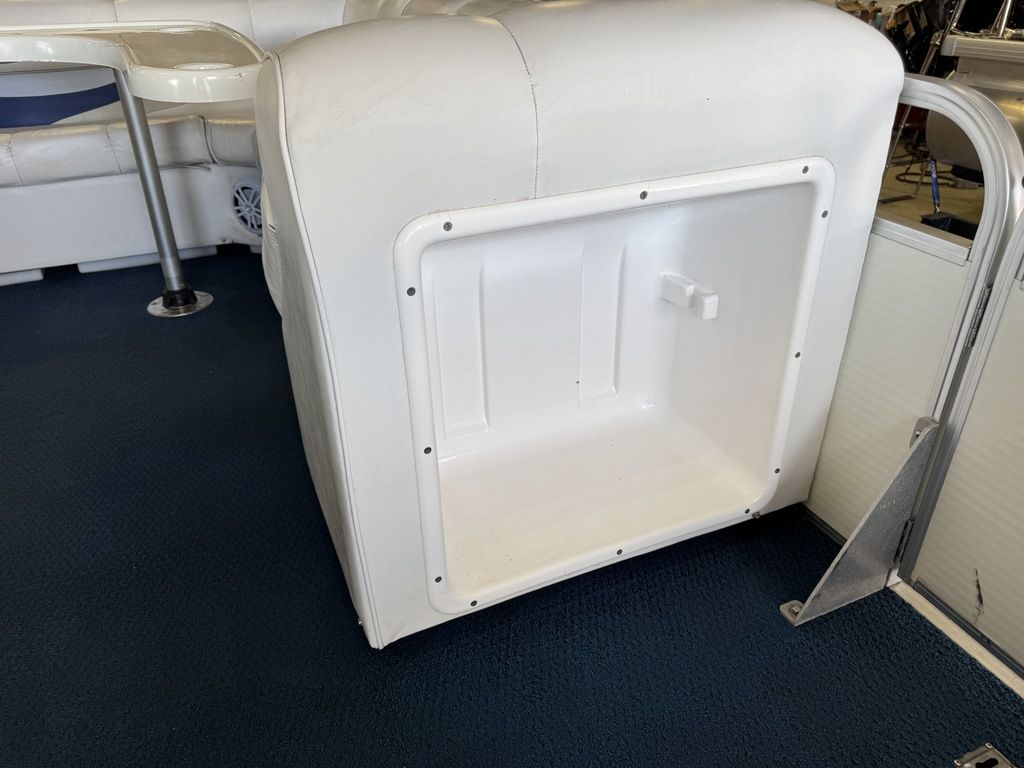 storage space which can accommodate a cooler. A portion of the rear sun deck