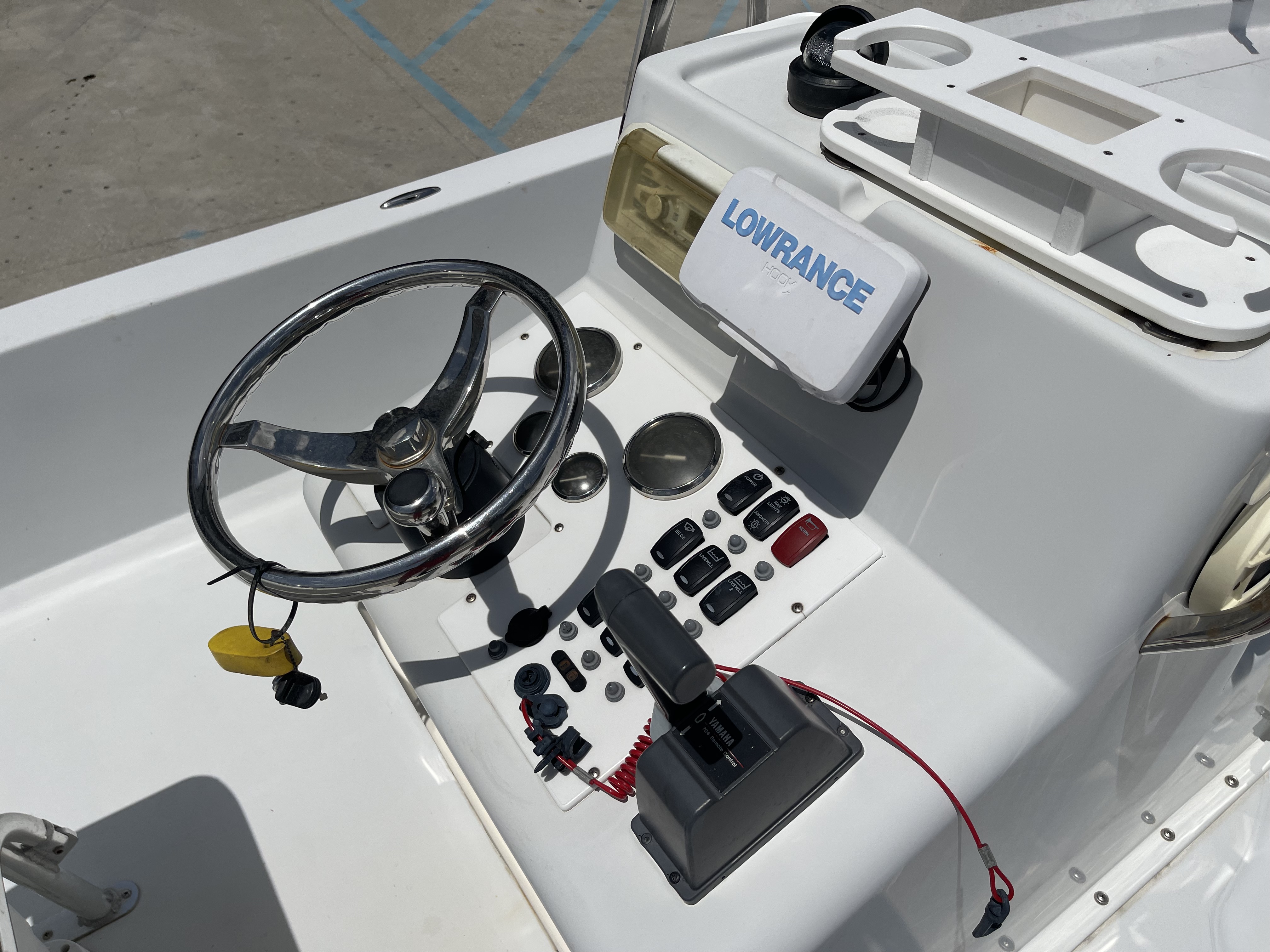 Well kept single owner 22 Bay Champ powered by a reliable Yamaha 150. With excellent design and construction, this versatile bay boat includes Lowrance GPS, trolling motor, and rebuilt trailer.