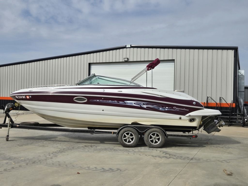 Turn heads on the water with this sharp Crownline 240 LS – a premium 24-foot luxury bowrider known for aggressive styling, smooth handling, and spacious seating. Finished in a deep burgundy metallic two-tone hull, this boat delivers the classic Crownline look with strong V8 performance for cruising, watersports, and family days at the lake.