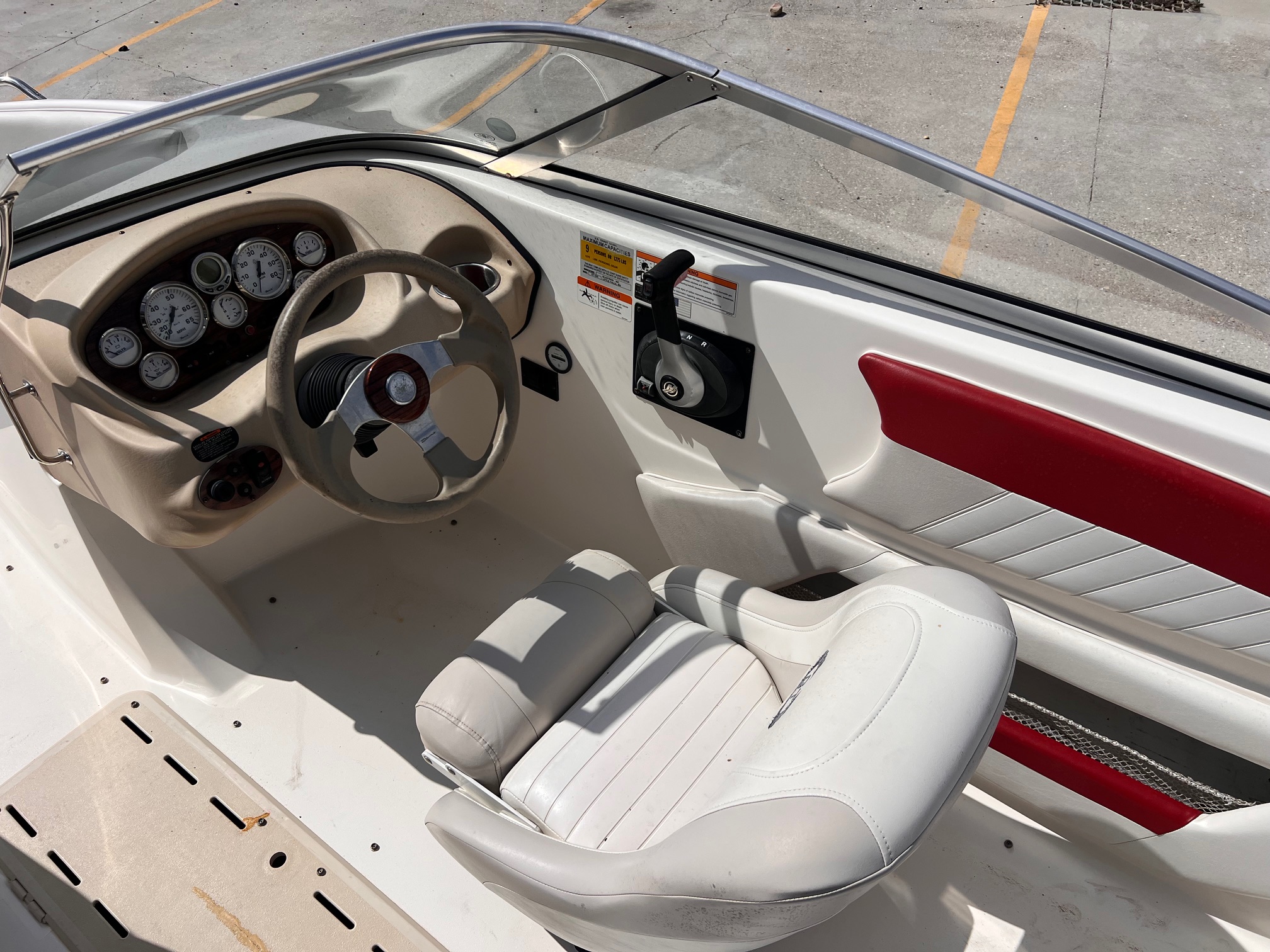 The 2007 Glastron GT 205 is a 20-foot bowrider boat known for its family-friendly design and sporty performance. It's a popular choice for watersports like skiing and tubing, as well as for general day-cruising and fishing. The GT 205 features a fiberglass hull, often with a deep-V design, and is typically powered by an inboard-outboard engine