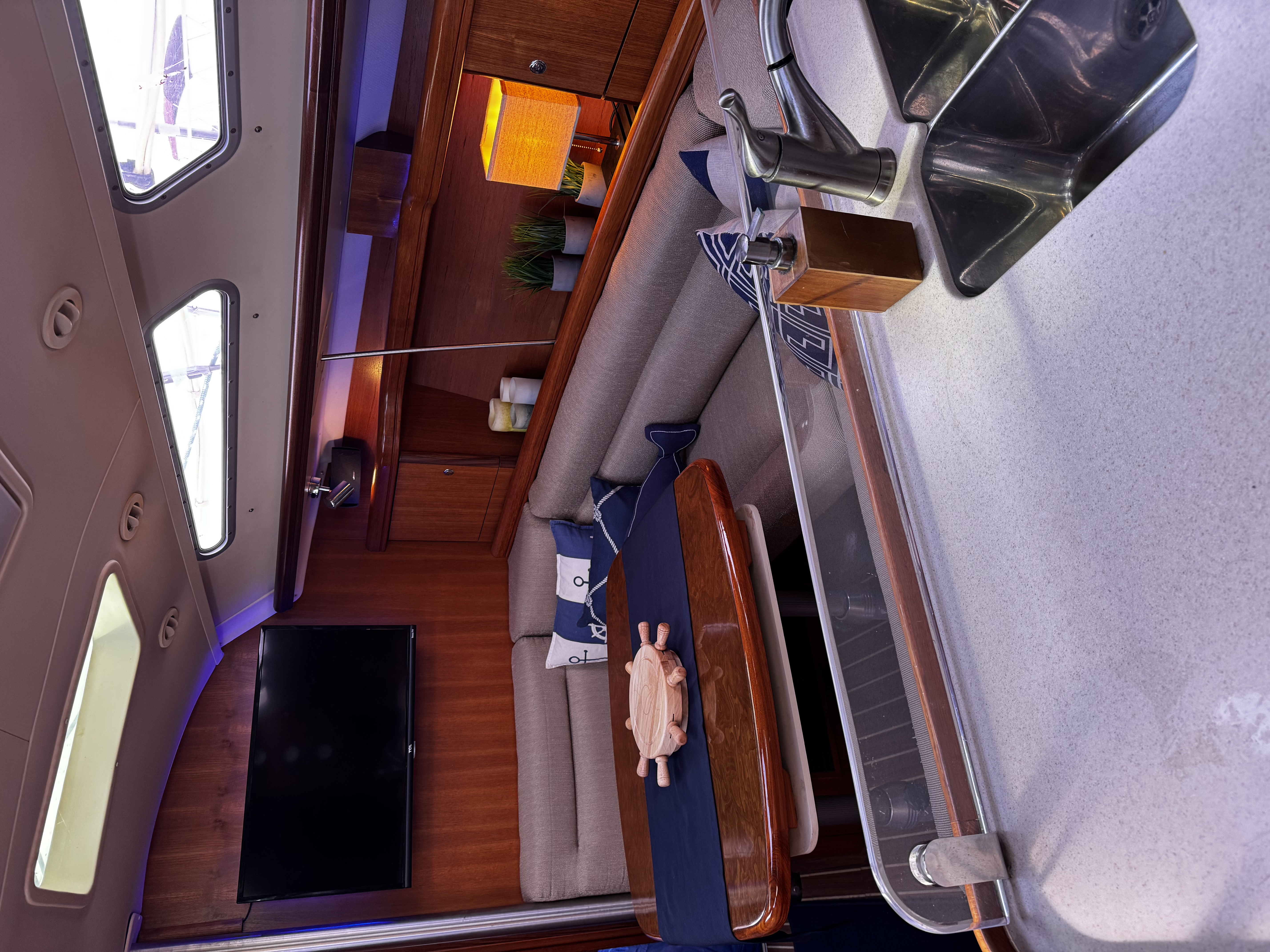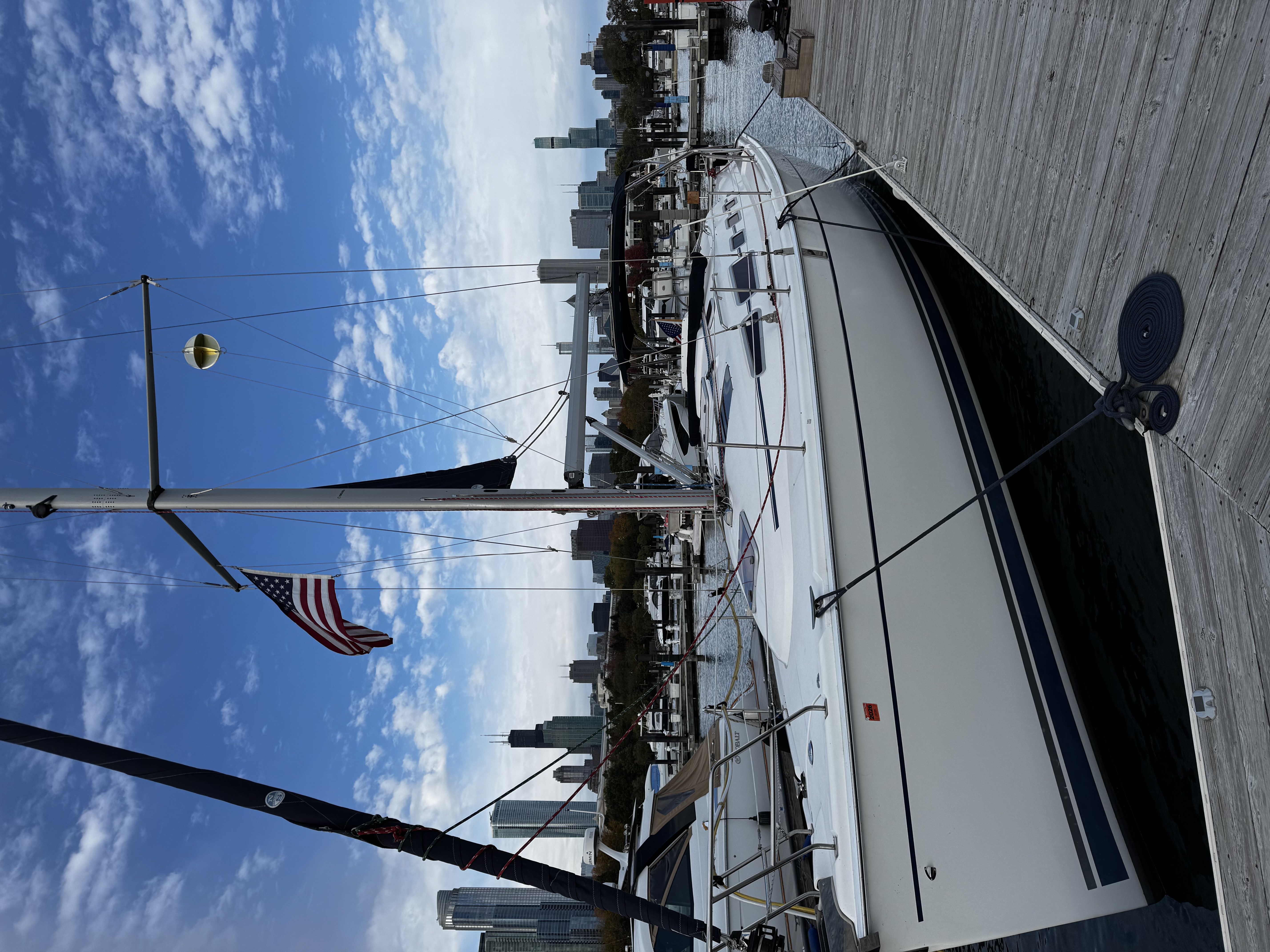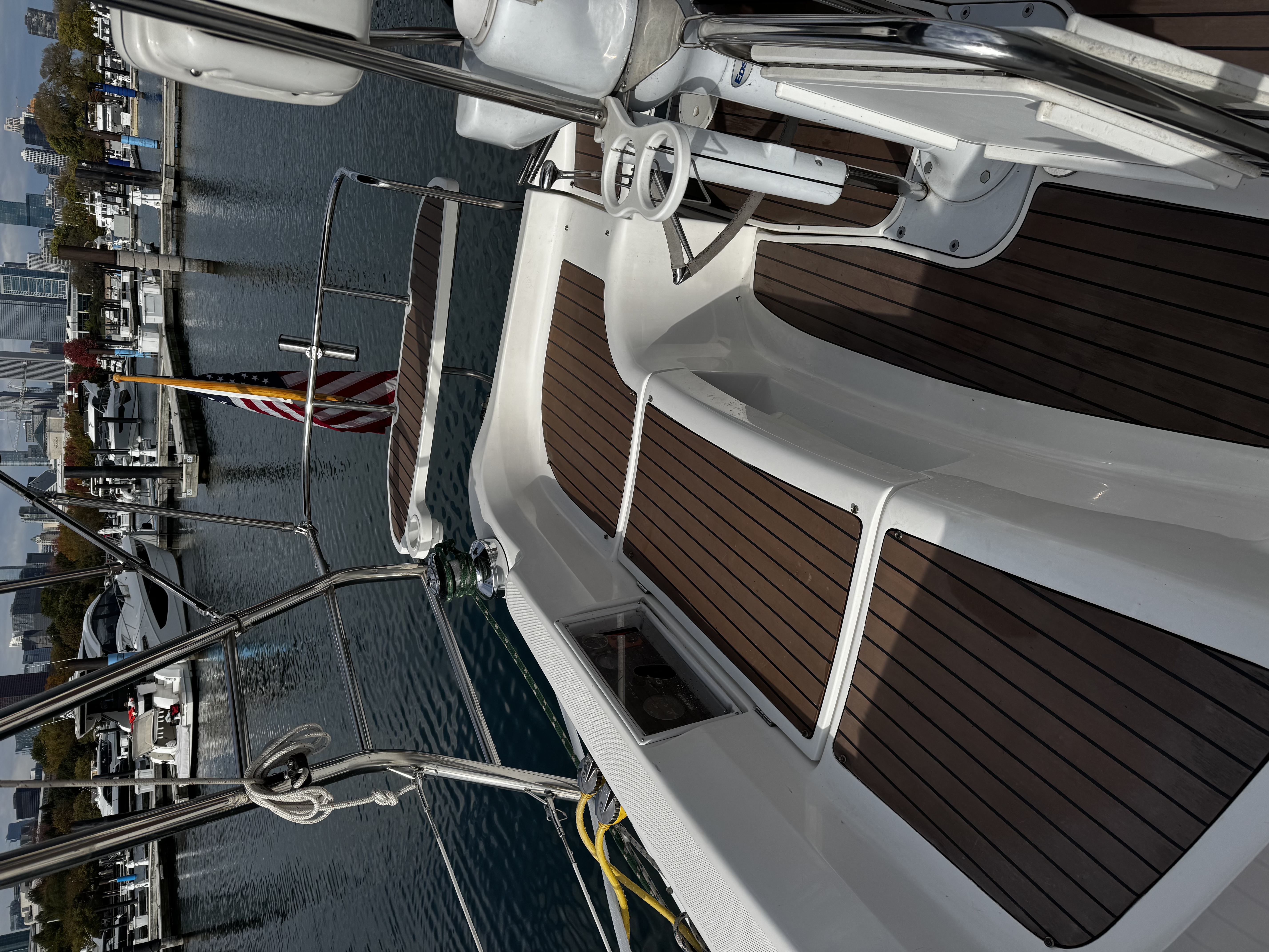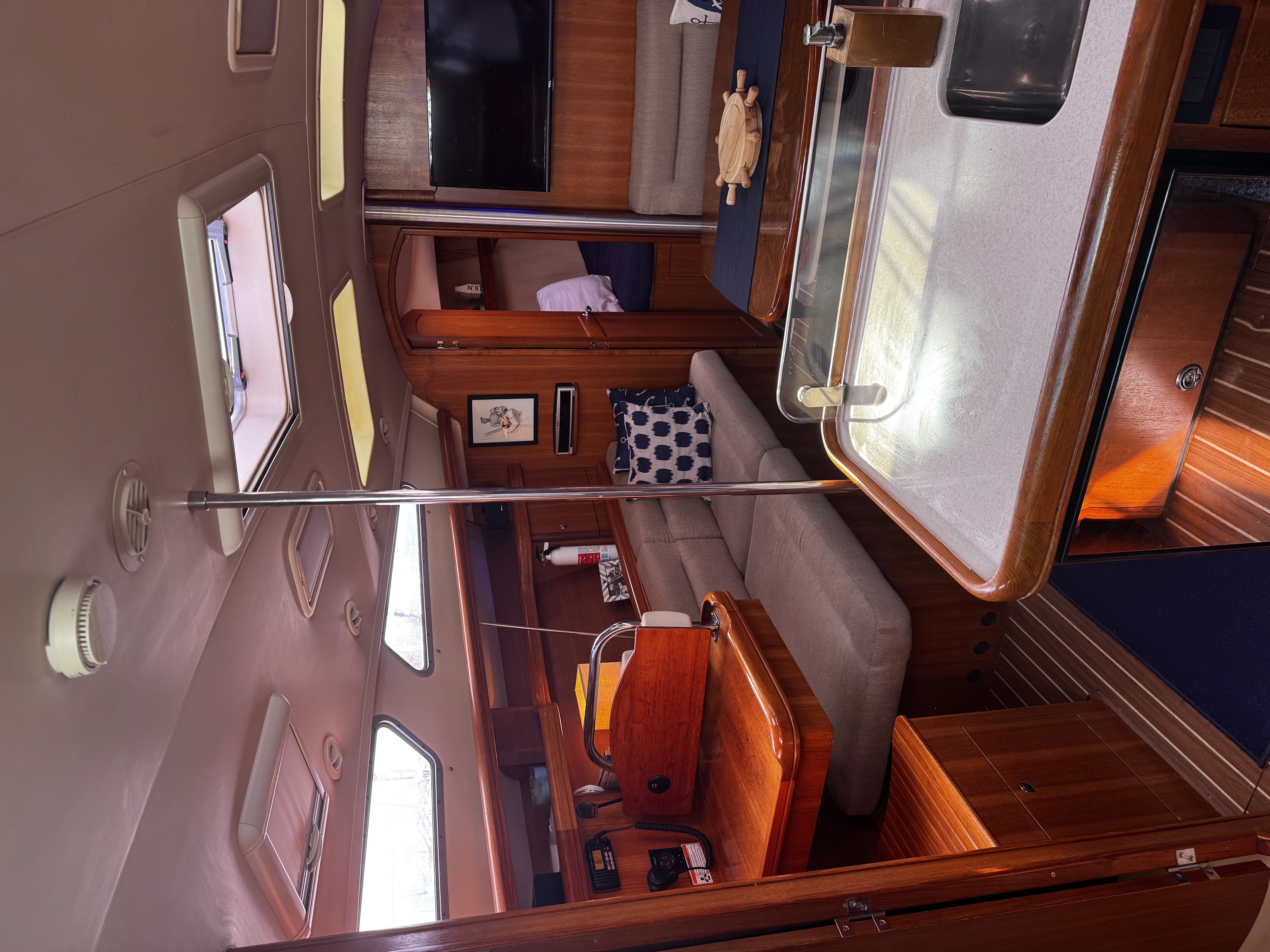 This is a freshwater boat, well-suited for Great Lakes cruising, weekend getaways, or stepping into extended coastal sailing.