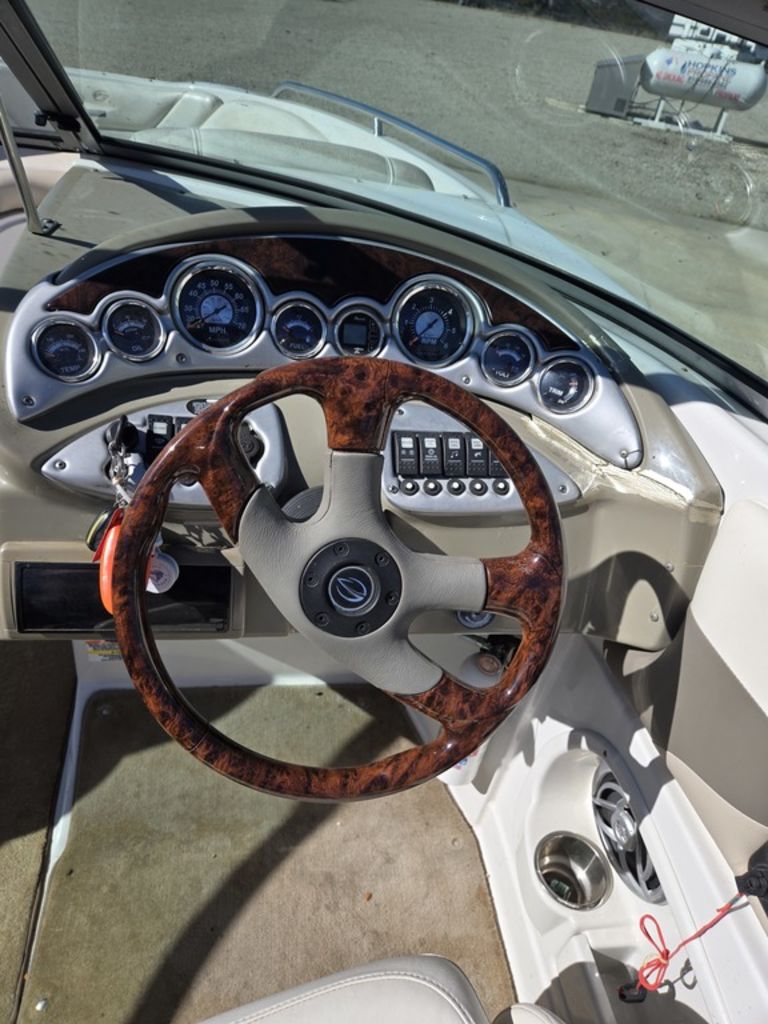 Turn heads on the water with this sharp Crownline 240 LS – a premium 24-foot luxury bowrider known for aggressive styling, smooth handling, and spacious seating. Finished in a deep burgundy metallic two-tone hull, this boat delivers the classic Crownline look with strong V8 performance for cruising, watersports, and family days at the lake.