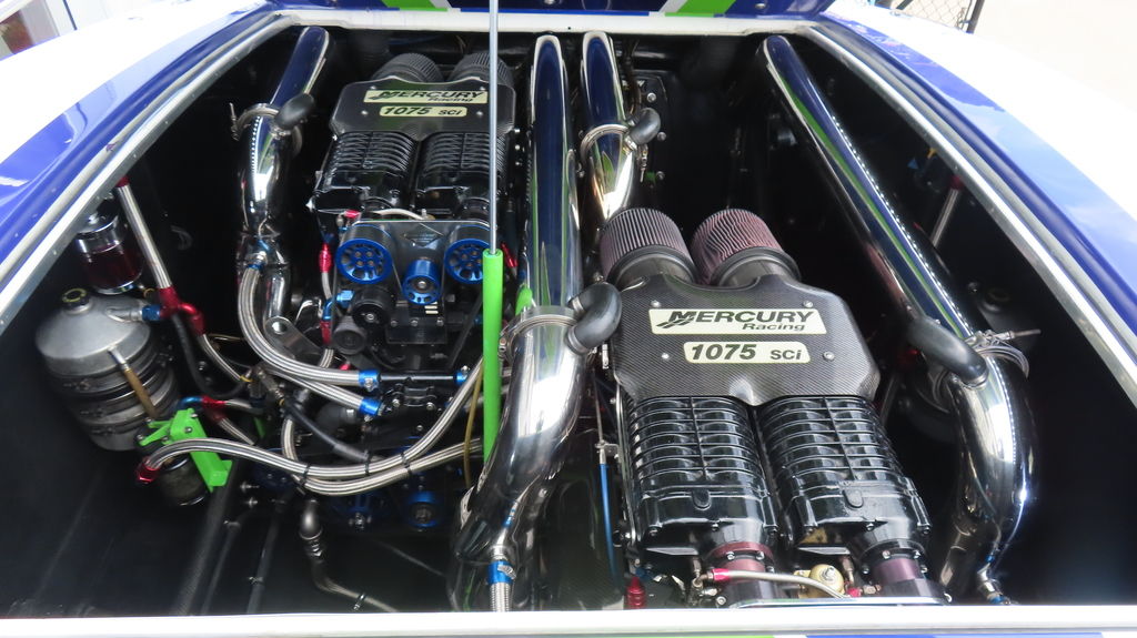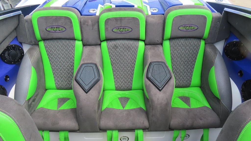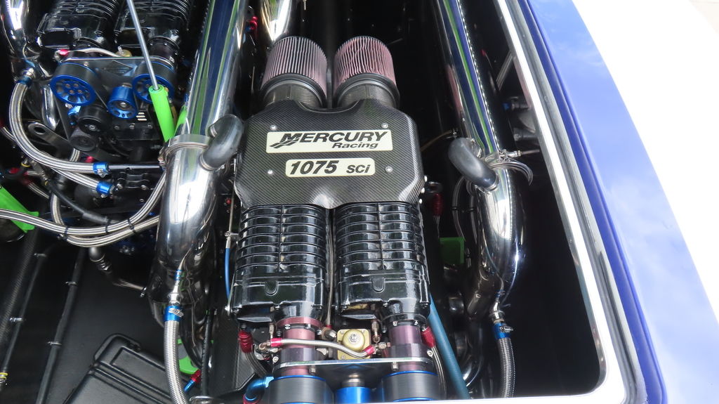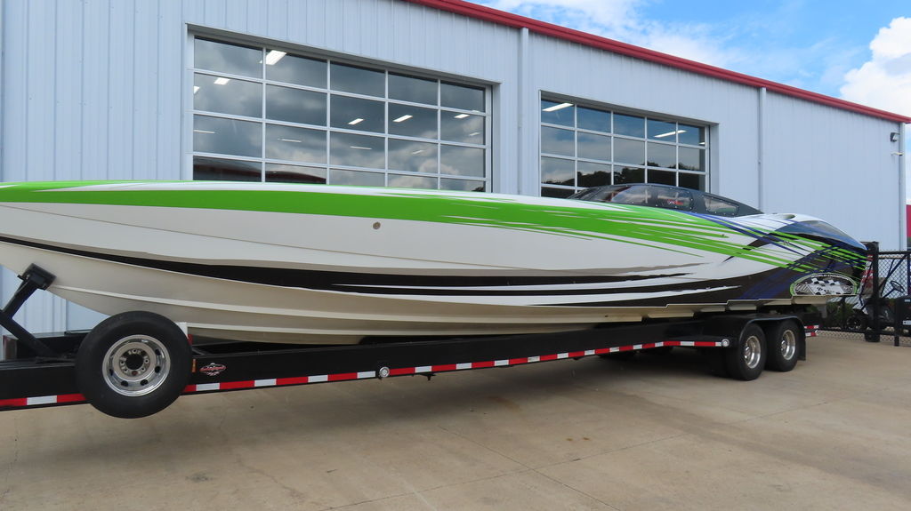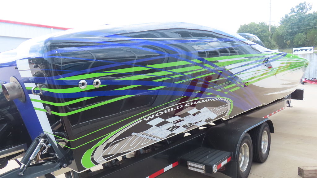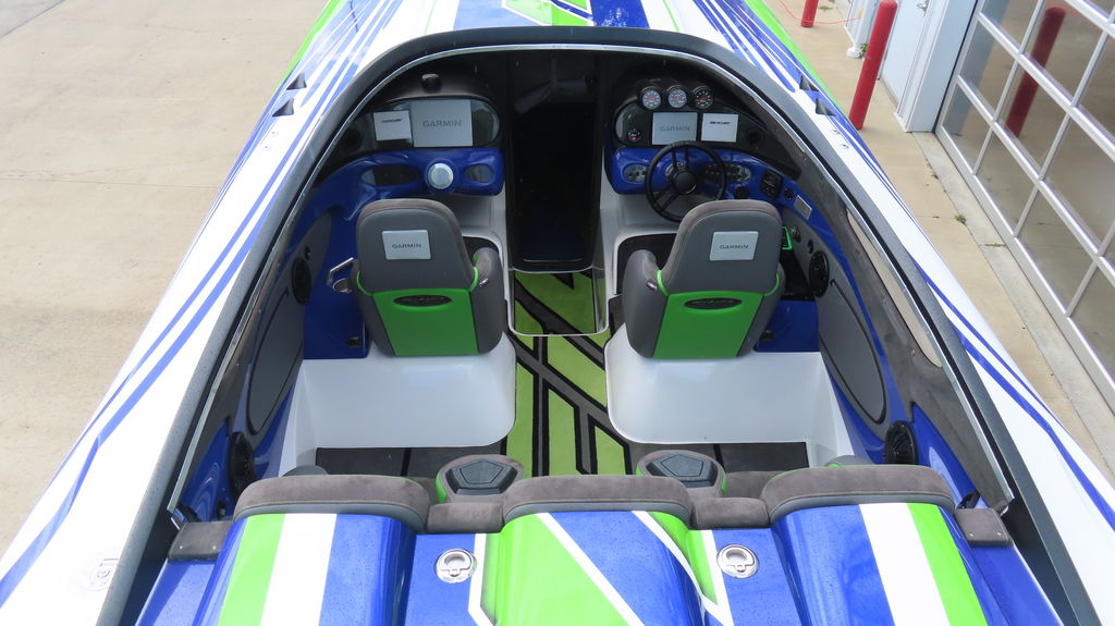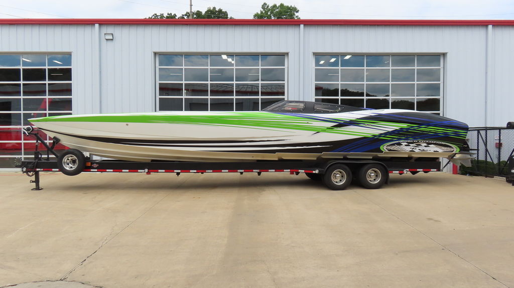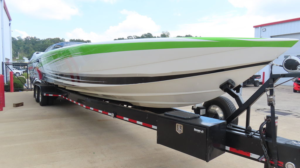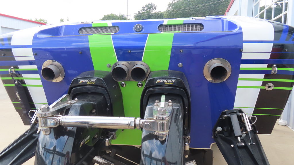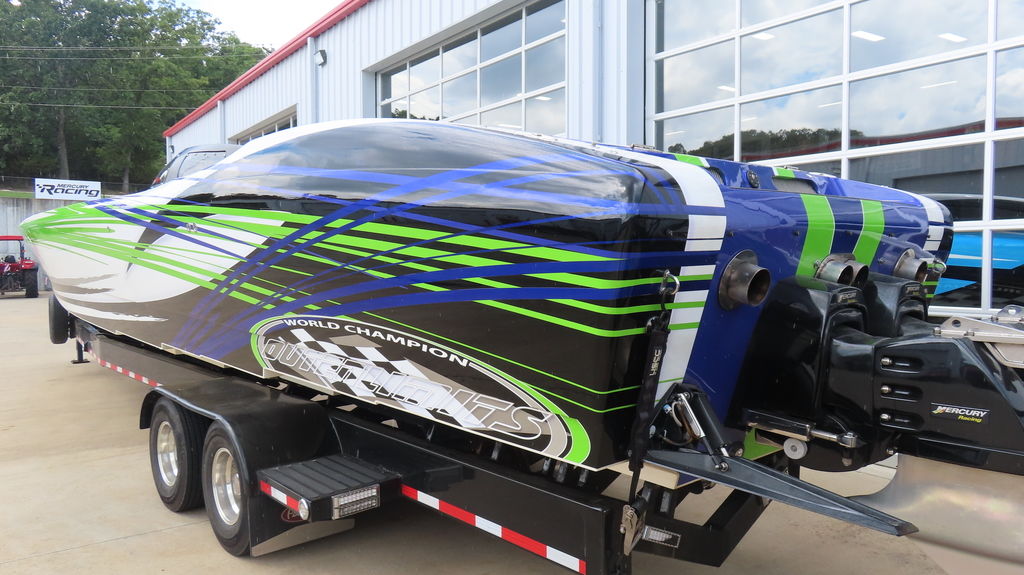2007 Outerlimits 44 GTX Powered by Mercury Racing 1075's Rebuilt by Mark Boos, Duel Fuel making 1025HP on 89 Octane/1200HP on 93 Octane with only 20 hours! Mercury #6 Drives w/ Trim Sync, Fresh Drives, Transmissions, and gimbals, Dual Helm Configuration, 380 K-Planes,Upgraded New Alcantera Interior, Snap in paint matched carpet, Quad Garmin setup with Driver and passenger, and one behind each head rest for the rear seats, Dual Mercury Vessel Views, rear facing camera, Pin cleats, Dash Blowers, Intercom system, adjustable footrests, Livorsi Guages and Controls, Upgraded Stereo with Fusion Head unit and Remote, Poco Lighting, Partial cabin with two benches and a sink, Full Cover, Tandem Axle Dually Myco Trailer Included!