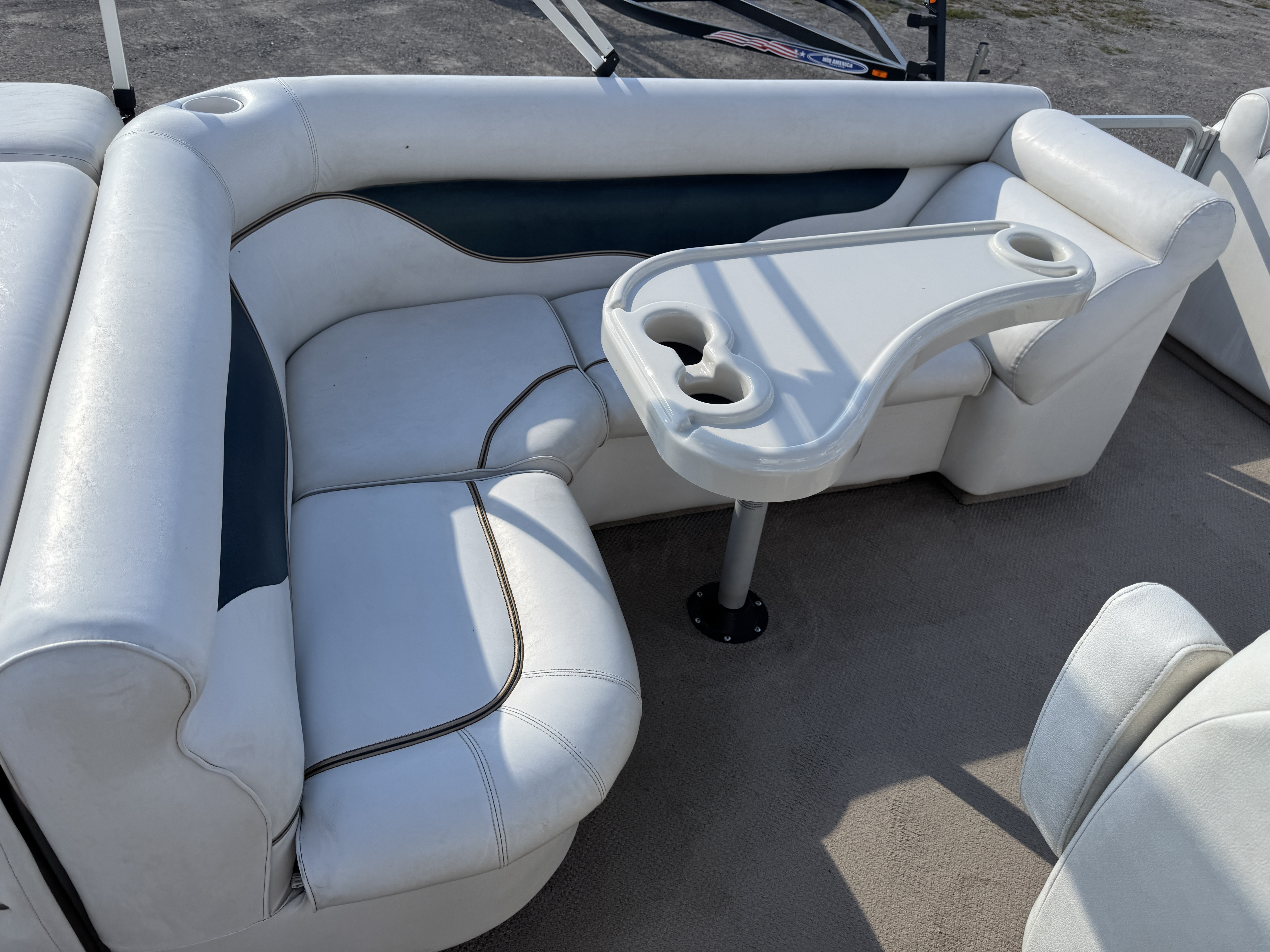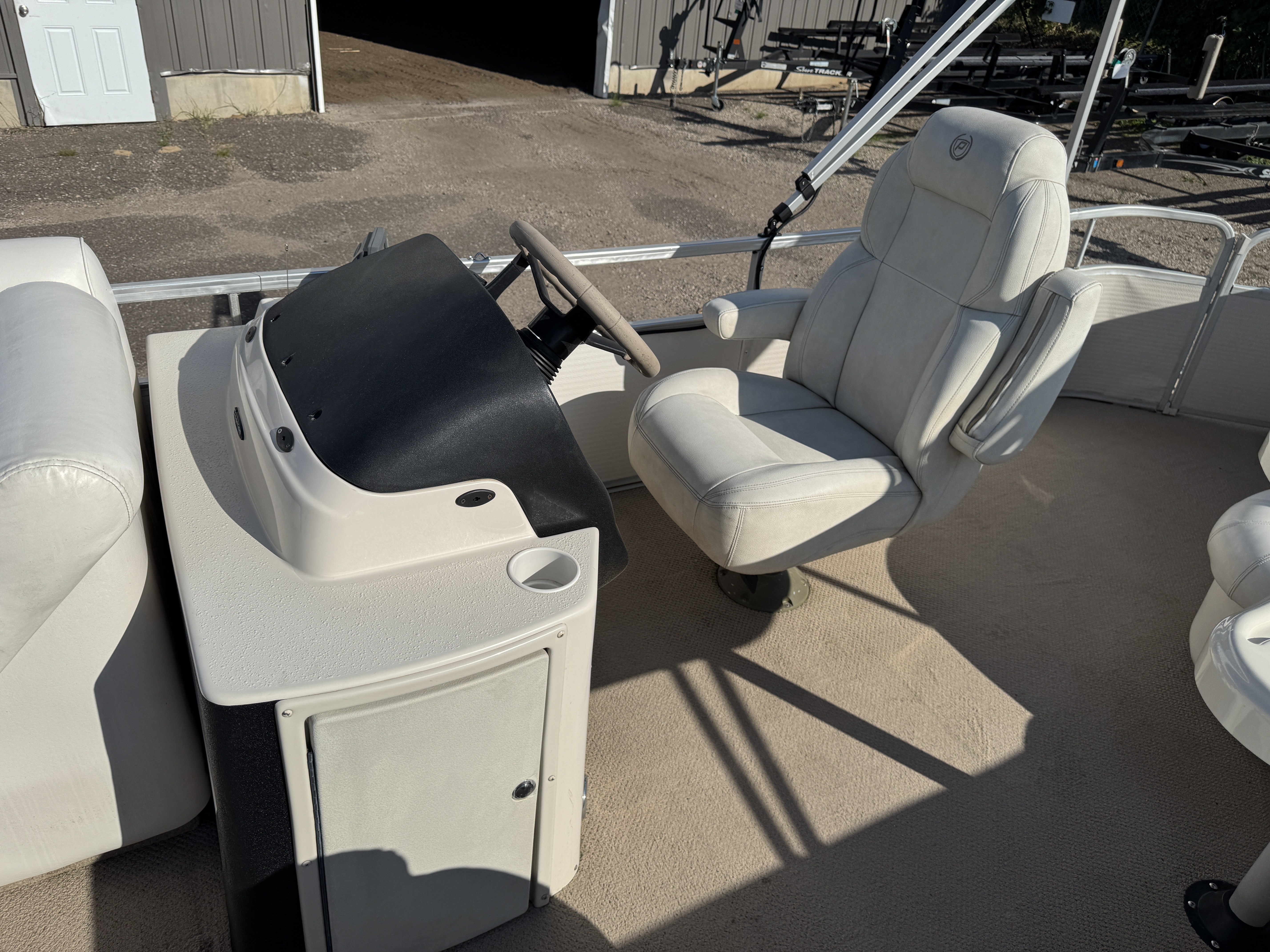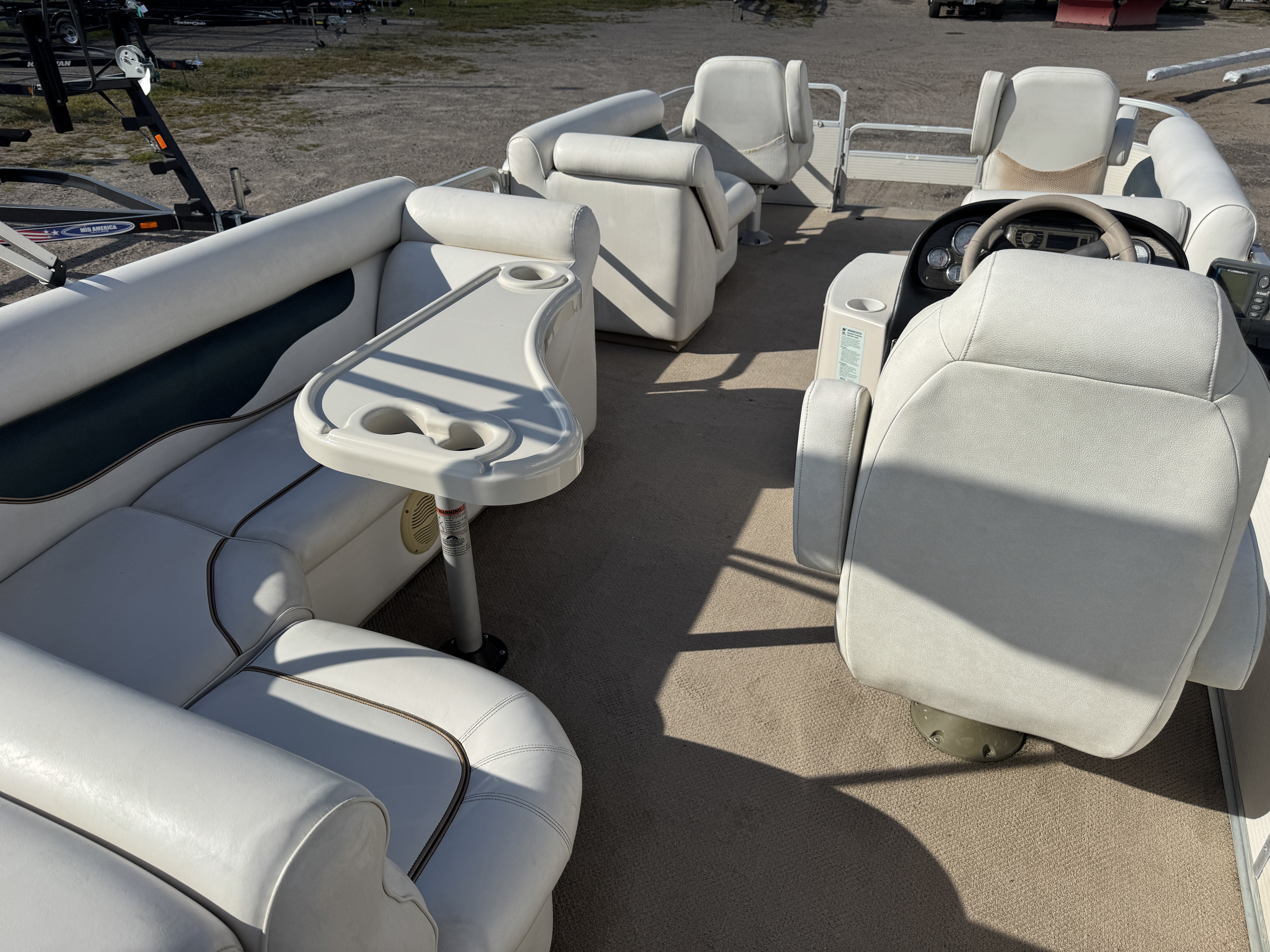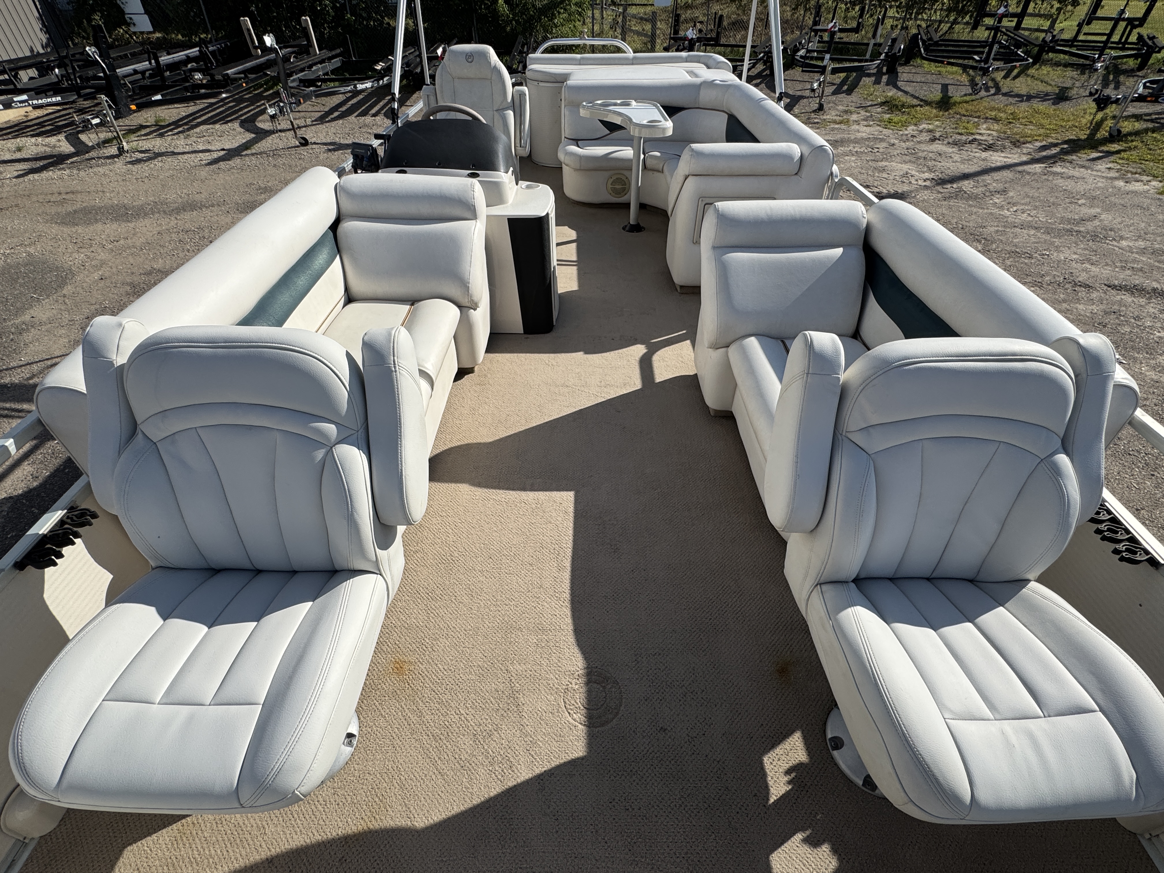 modified cruise layout pontoon features 2 captain's style seats in front along