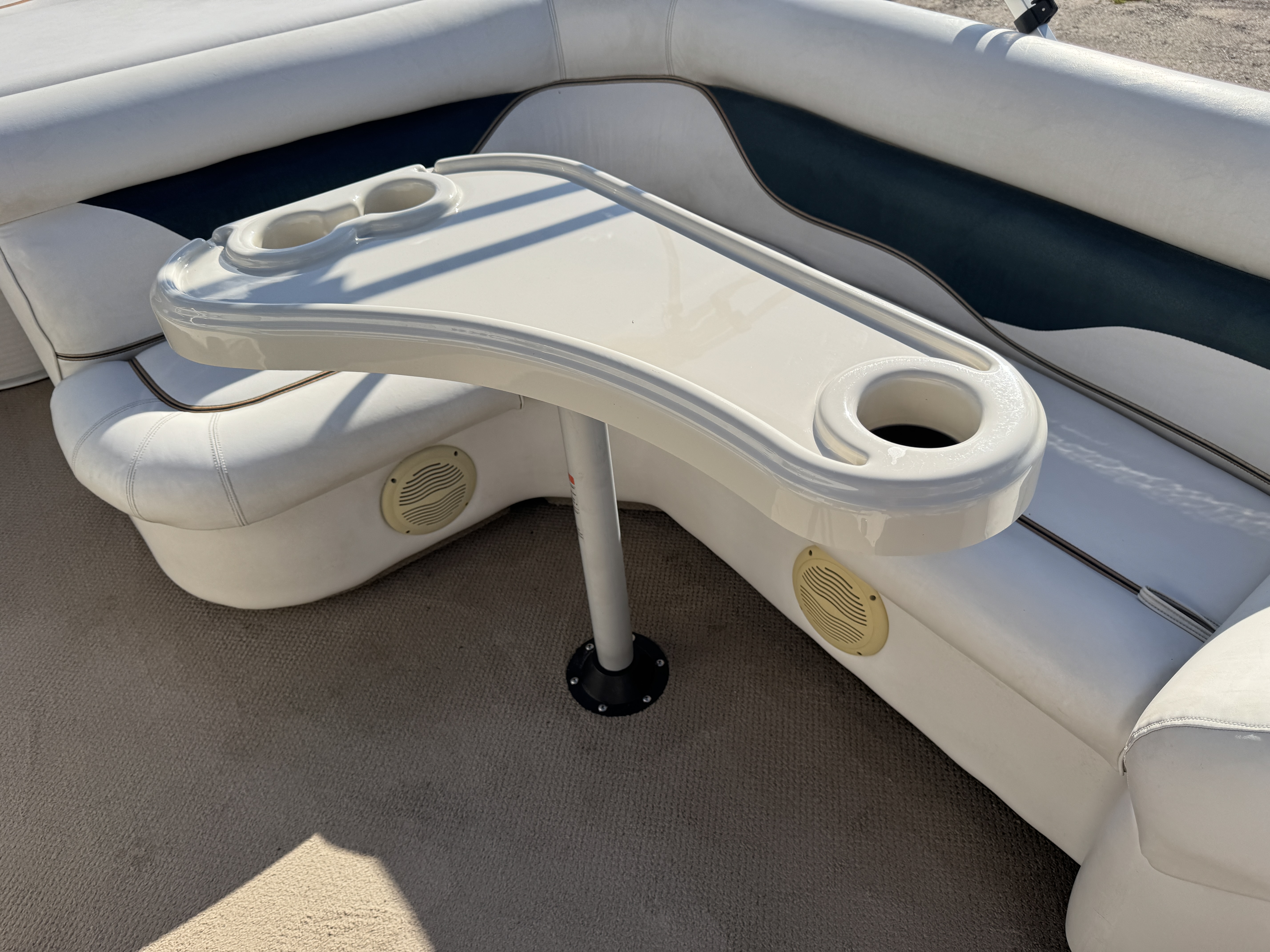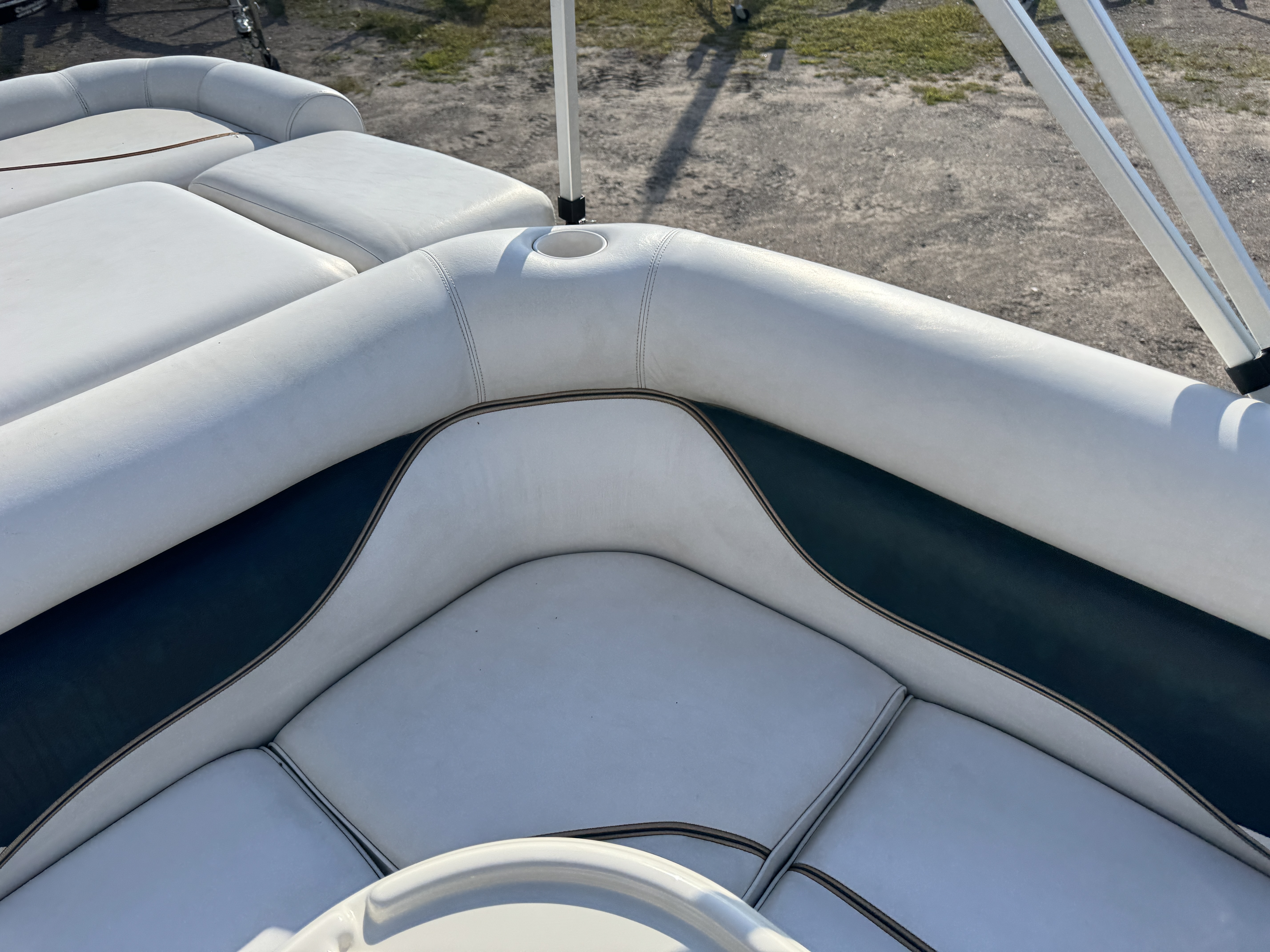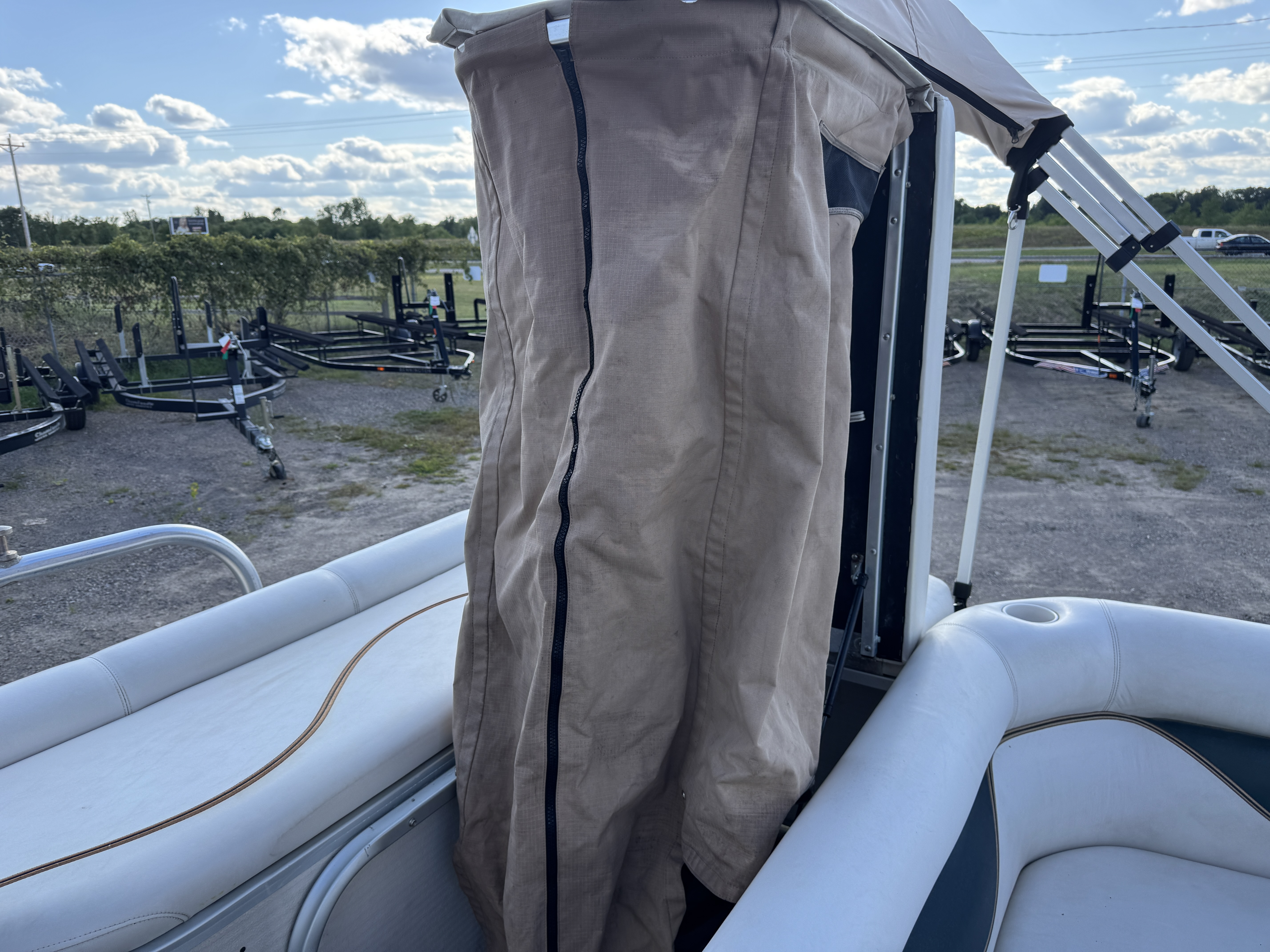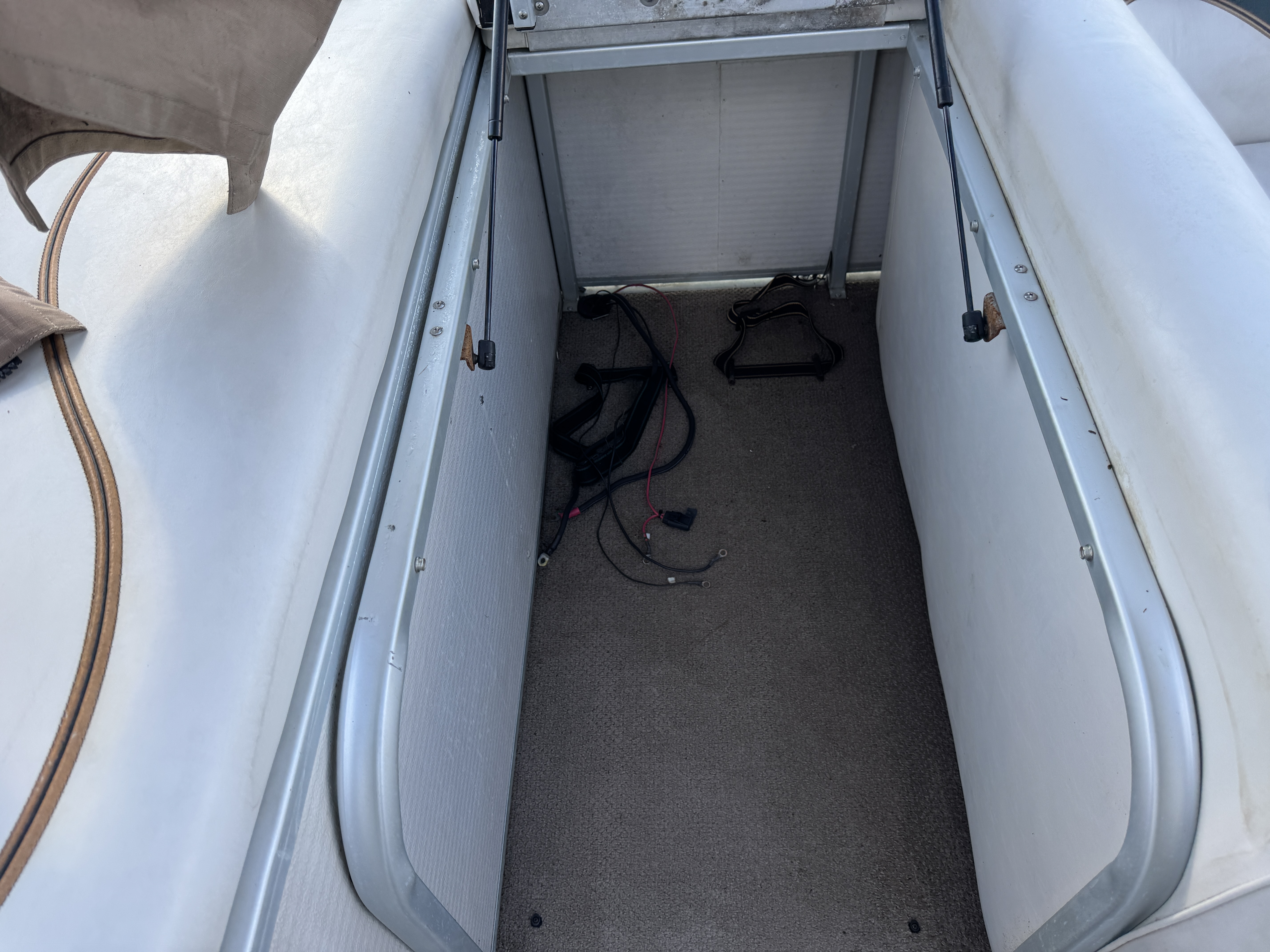 fish/depth finder. A portion of the sun deck flips up for a privacy/changing