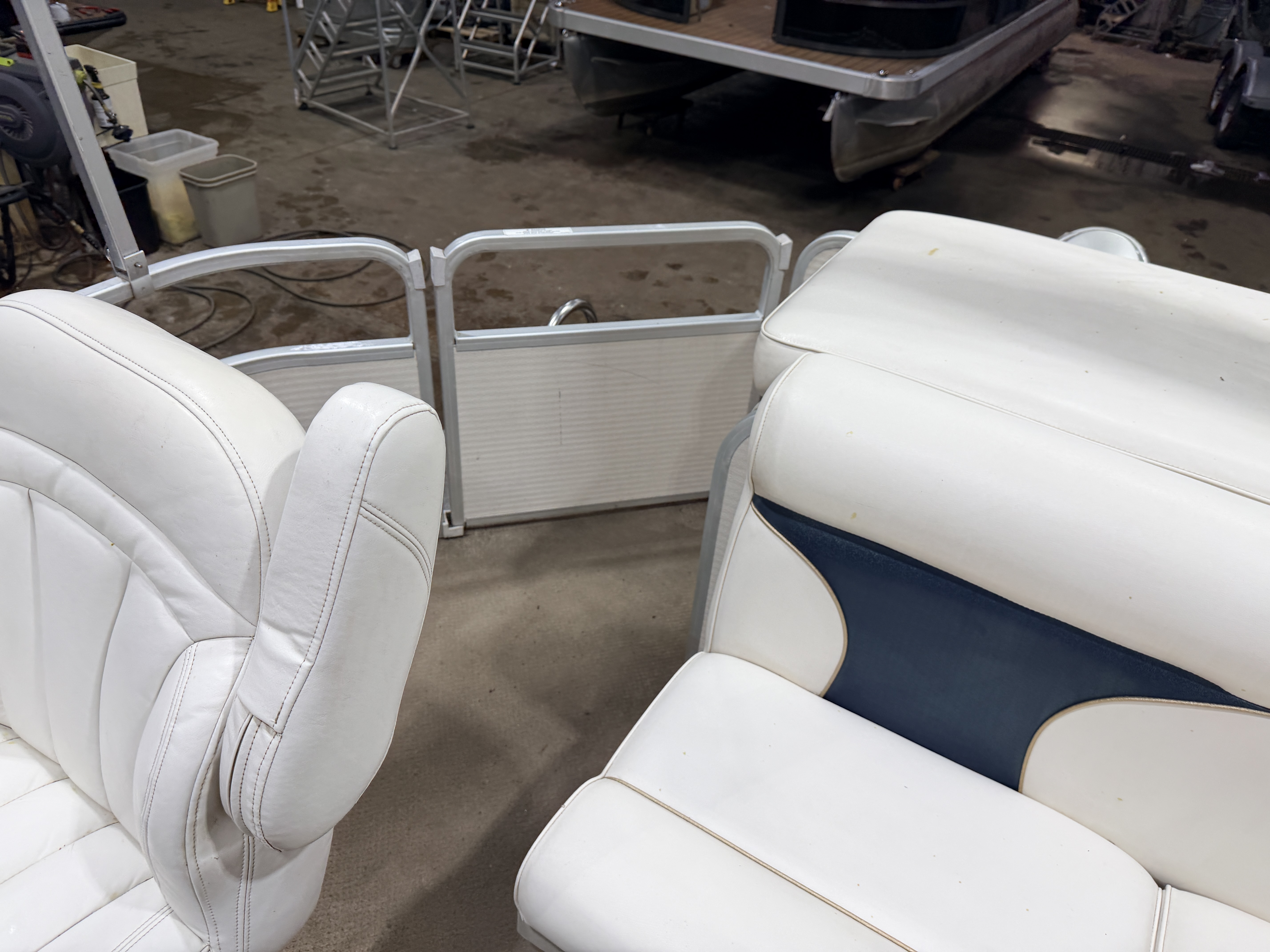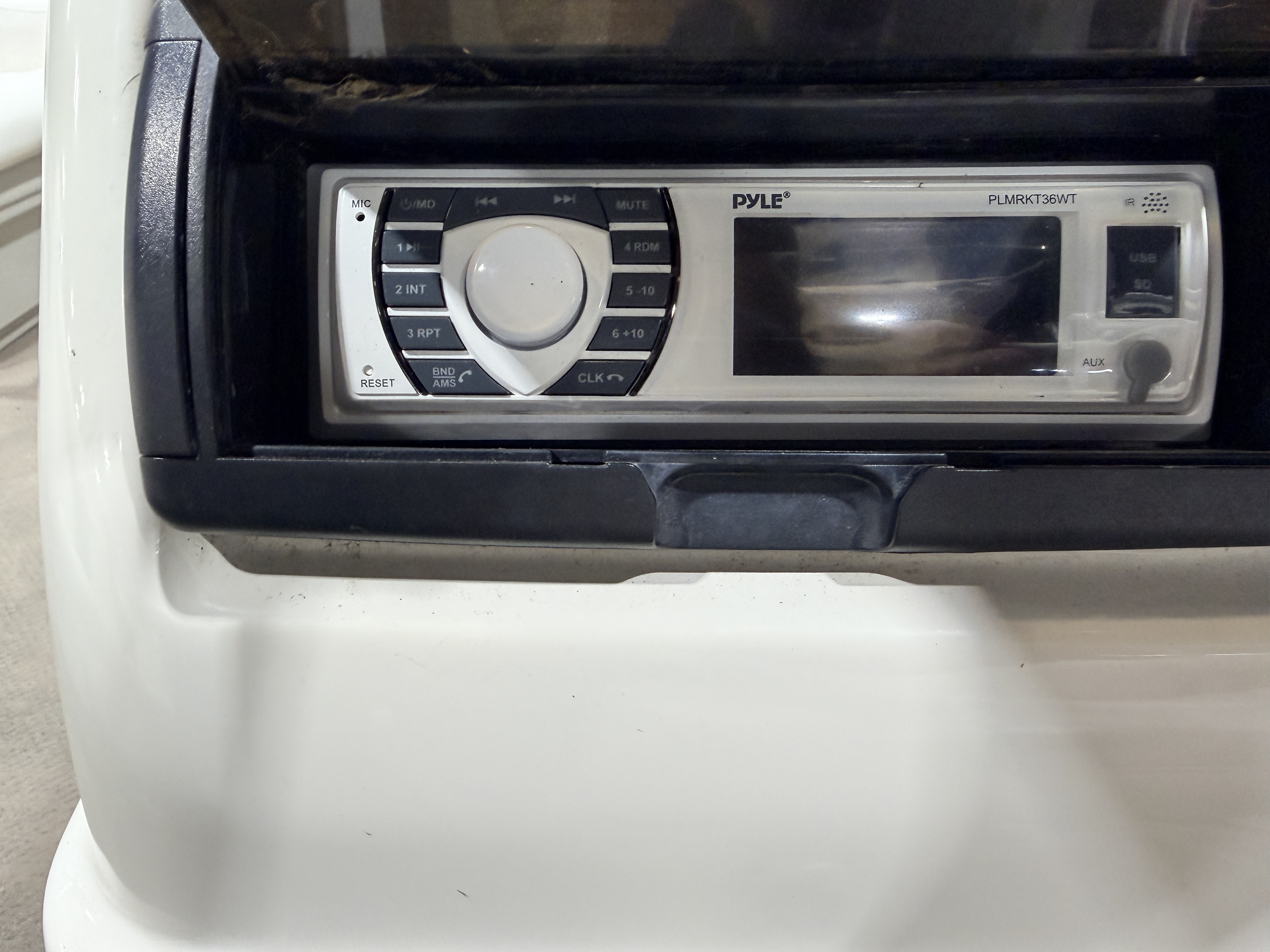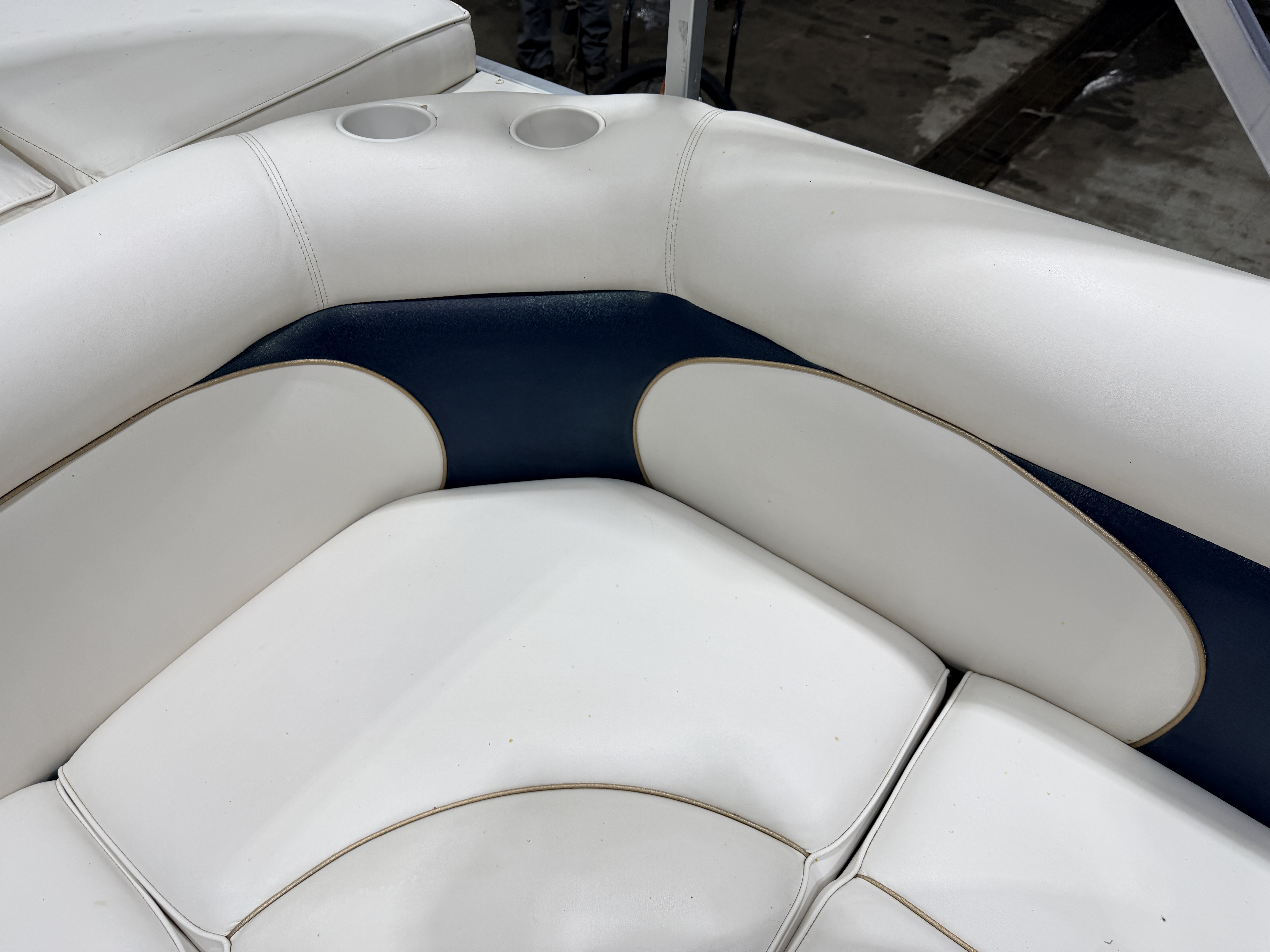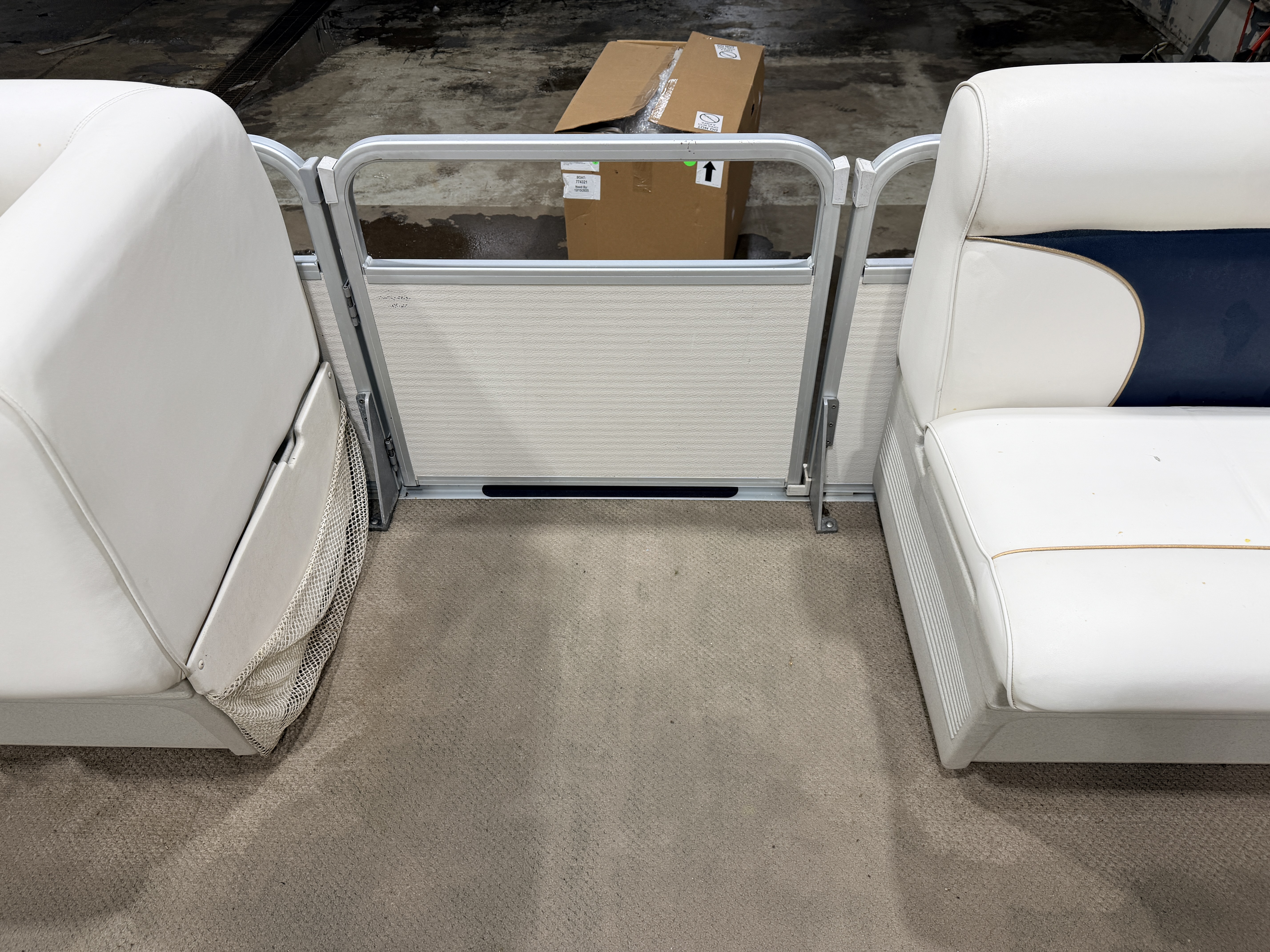 2007 Premier Leisure 2023 Meridian Pontoon with 40HP Honda Fourstroke Outboard. This cruise model pontoon features 2 couches in front along with an L couch amidships. There is a table mounted at the L couch. The captain's chair is a low back sport style seat with swivel and slide functions as well as fold up arm rests. The helm features a Speedometer, Tachometer, Fuel, Volt and Trim gauge. There is a Pyle Bluetooth audio stereo system with additional USB, SD card and auxiliary inputs. Behind the L couch is a sun deck with a pop up privacy/changing station. There is a fold down swim ladder at the rear just through the rear entry gate.