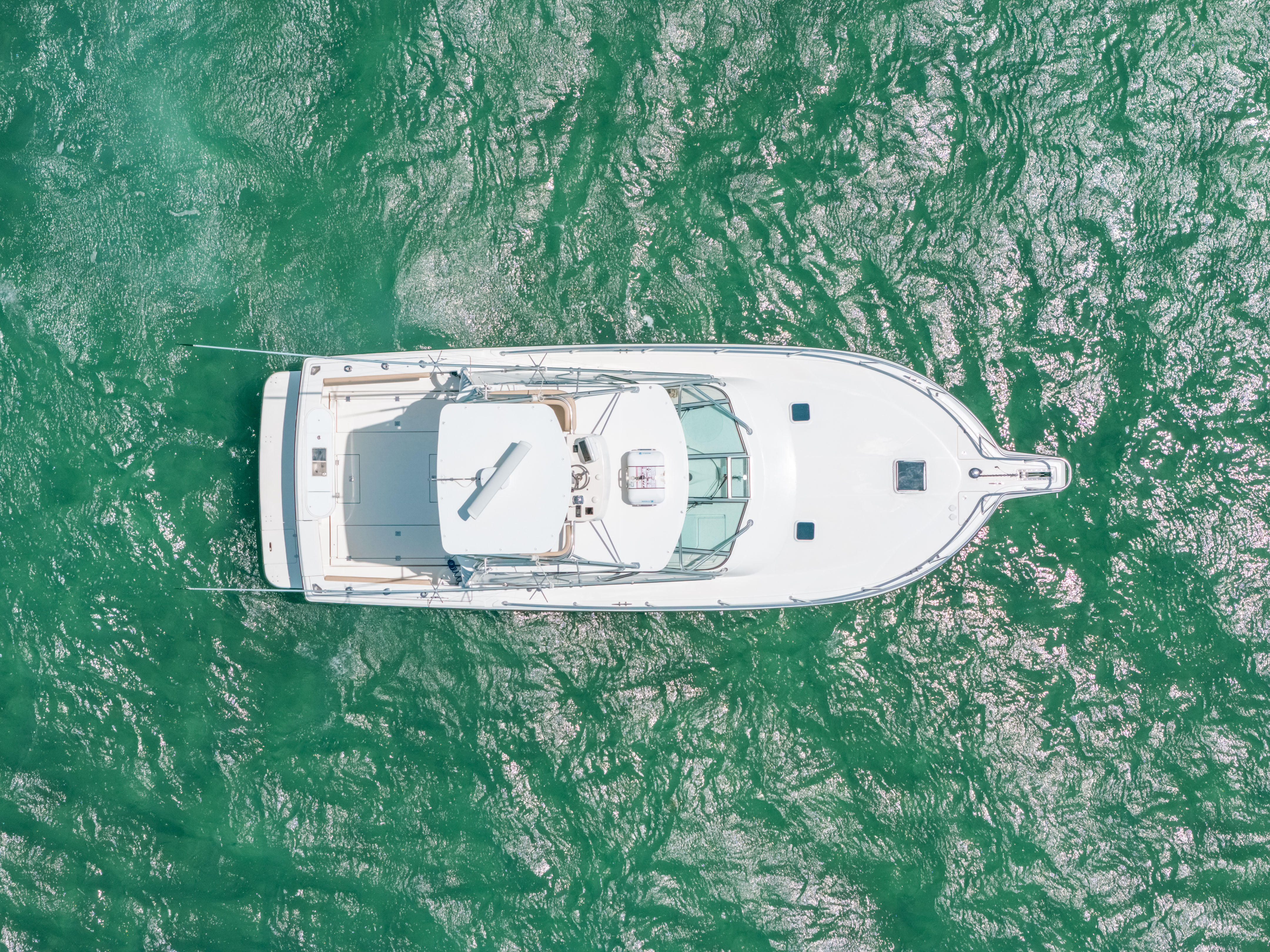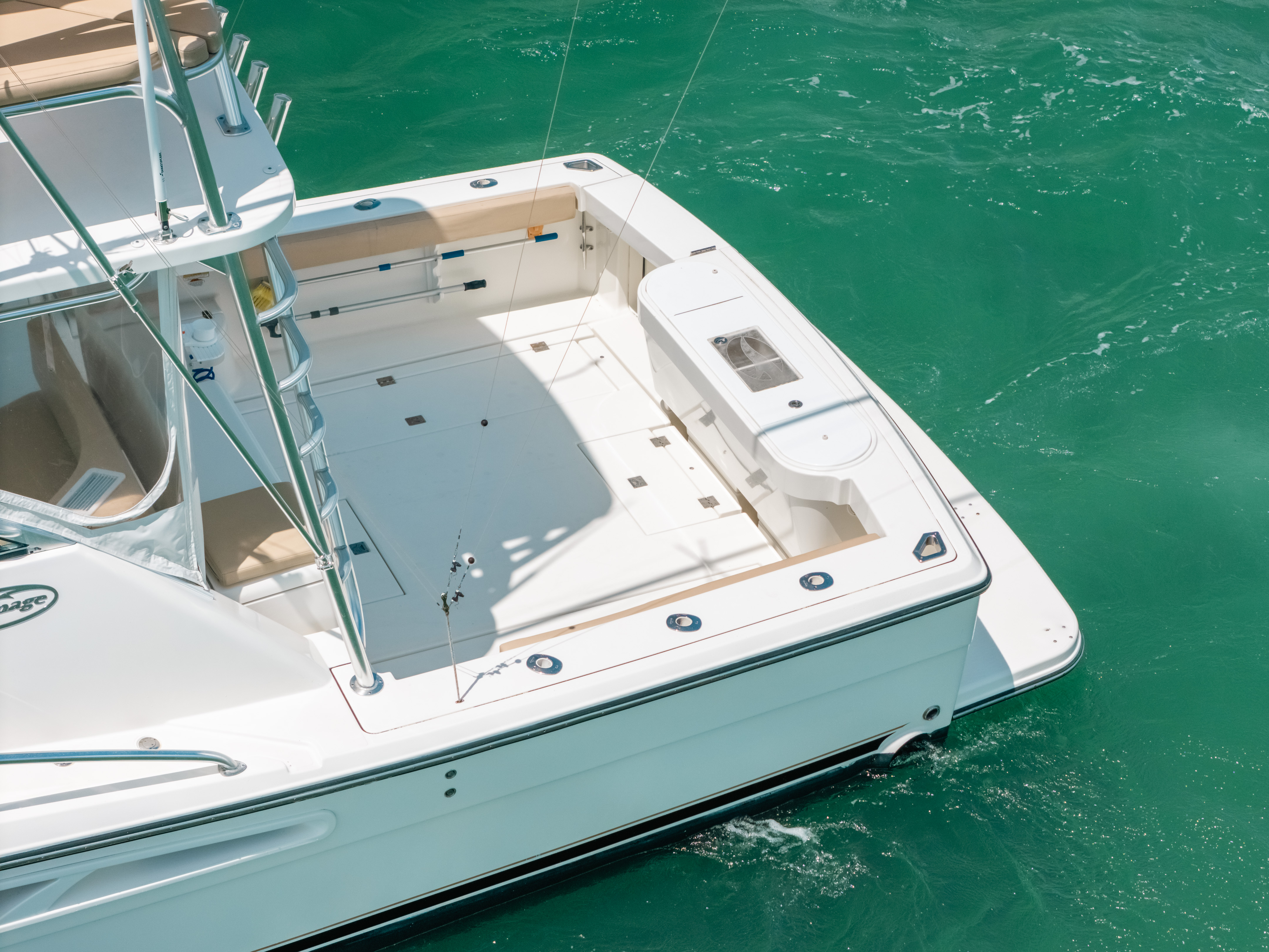 In addition, you will enjoy a large cockpit with transom livewell, walk-through transom door, under-deck fish boxes, and tackle stations. This boat is kept in detailed condition and shows well.