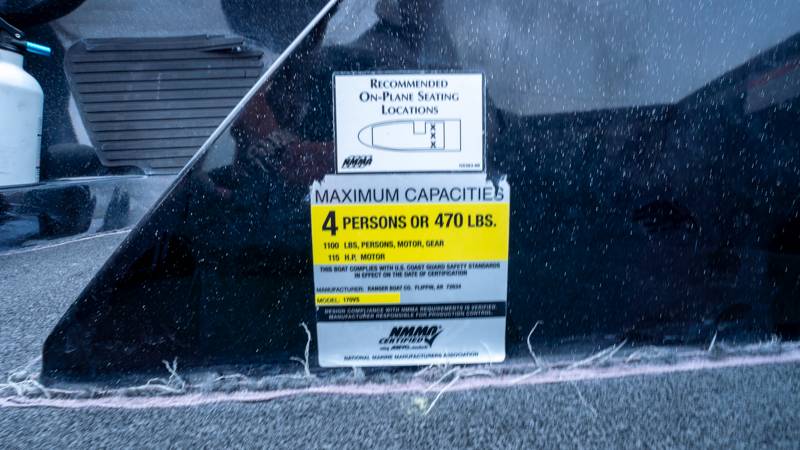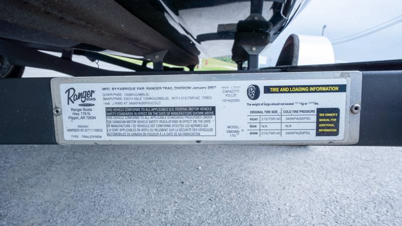 2007 Ranger 170VS Evinrude 115HP 2-Stroke Engine Dimensions Beam : 84 1/2 in Beam - Meters : 2.16 Beam - Inches : 84.5 Depth - Detail : 21 in Depth - Centimeters : 53.34 Depth - Inches : 21 Weight - Detail : 1,270 lbs Weight - kg : 576.06 Weight - lbs. : 1270 Height [transom] : 21 1/2 in Length - Feet : 17 Length - Inches : Length overall - Detail : 17 ft. 0 in Length overall - Meters : 5.18 Length overall - Inches : 204 Body / Hull Hull material : Fiberglass Engine and Drivetrain Fuel tank capacity - Detail : 25 gal Fuel tank capacity - Liters : 94.64 Fuel tank capacity - Gal : 25 Fuel type : Gas Drive type : Outboard Engine max : 115 hp Operational Info Maximum capacity : 1,000 lbs
