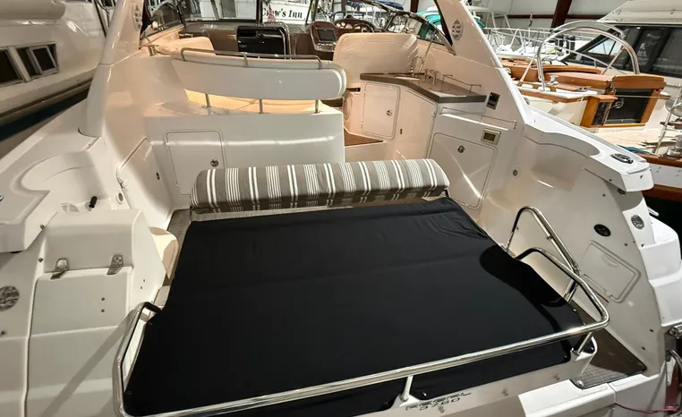 Freshwater/Great Lakes boat since new, this vessel features Twin Volvo Penta 8.1L 375 HP V8's with 719 original hours. Notable features include but are not limited to the following: Hard Top, Dual Stainless props on updated Volvo Ocean X Sterndrives, Air-Conditioning & Heat, Vacu-Flush Head w/Vanity/Sink/Separate Shower, Generator, NEW Lewmar Windlass with remote, Raymarine Axiom Chart Plotter/Radar/GPS, Cockpit Wet Bar w/Sink/Refrigerator, Large Swim Platform, and MUCH more!