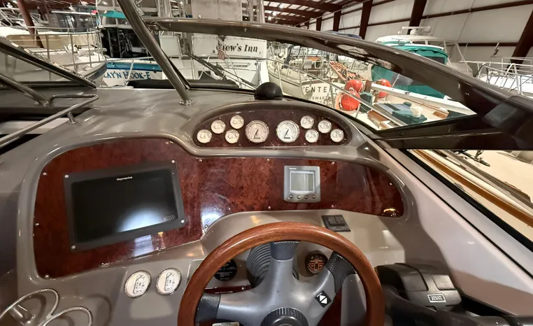 Freshwater/Great Lakes boat since new, this vessel features Twin Volvo Penta 8.1L 375 HP V8's with 719 original hours. Notable features include but are not limited to the following: Hard Top, Dual Stainless props on updated Volvo Ocean X Sterndrives, Air-Conditioning & Heat, Vacu-Flush Head w/Vanity/Sink/Separate Shower, Generator, NEW Lewmar Windlass with remote, Raymarine Axiom Chart Plotter/Radar/GPS, Cockpit Wet Bar w/Sink/Refrigerator, Large Swim Platform, and MUCH more!