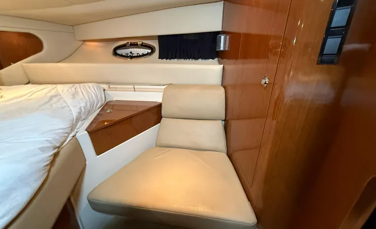 Freshwater/Great Lakes boat since new, this vessel features Twin Volvo Penta 8.1L 375 HP V8's with 719 original hours. Notable features include but are not limited to the following: Hard Top, Dual Stainless props on updated Volvo Ocean X Sterndrives, Air-Conditioning & Heat, Vacu-Flush Head w/Vanity/Sink/Separate Shower, Generator, NEW Lewmar Windlass with remote, Raymarine Axiom Chart Plotter/Radar/GPS, Cockpit Wet Bar w/Sink/Refrigerator, Large Swim Platform, and MUCH more!