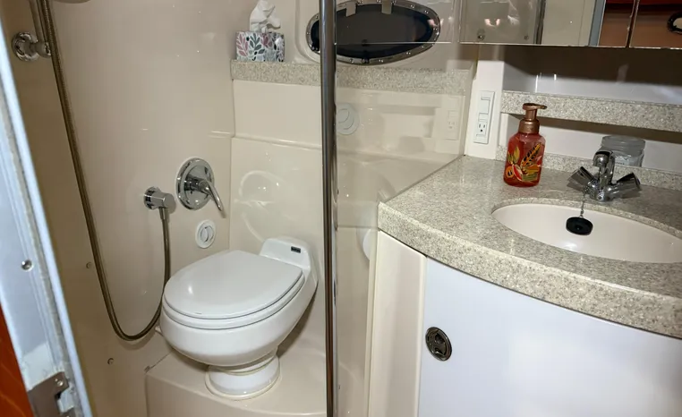 Freshwater/Great Lakes boat since new, this vessel features Twin Volvo Penta 8.1L 375 HP V8's with 719 original hours. Notable features include but are not limited to the following: Hard Top, Dual Stainless props on updated Volvo Ocean X Sterndrives, Air-Conditioning & Heat, Vacu-Flush Head w/Vanity/Sink/Separate Shower, Generator, NEW Lewmar Windlass with remote, Raymarine Axiom Chart Plotter/Radar/GPS, Cockpit Wet Bar w/Sink/Refrigerator, Large Swim Platform, and MUCH more!