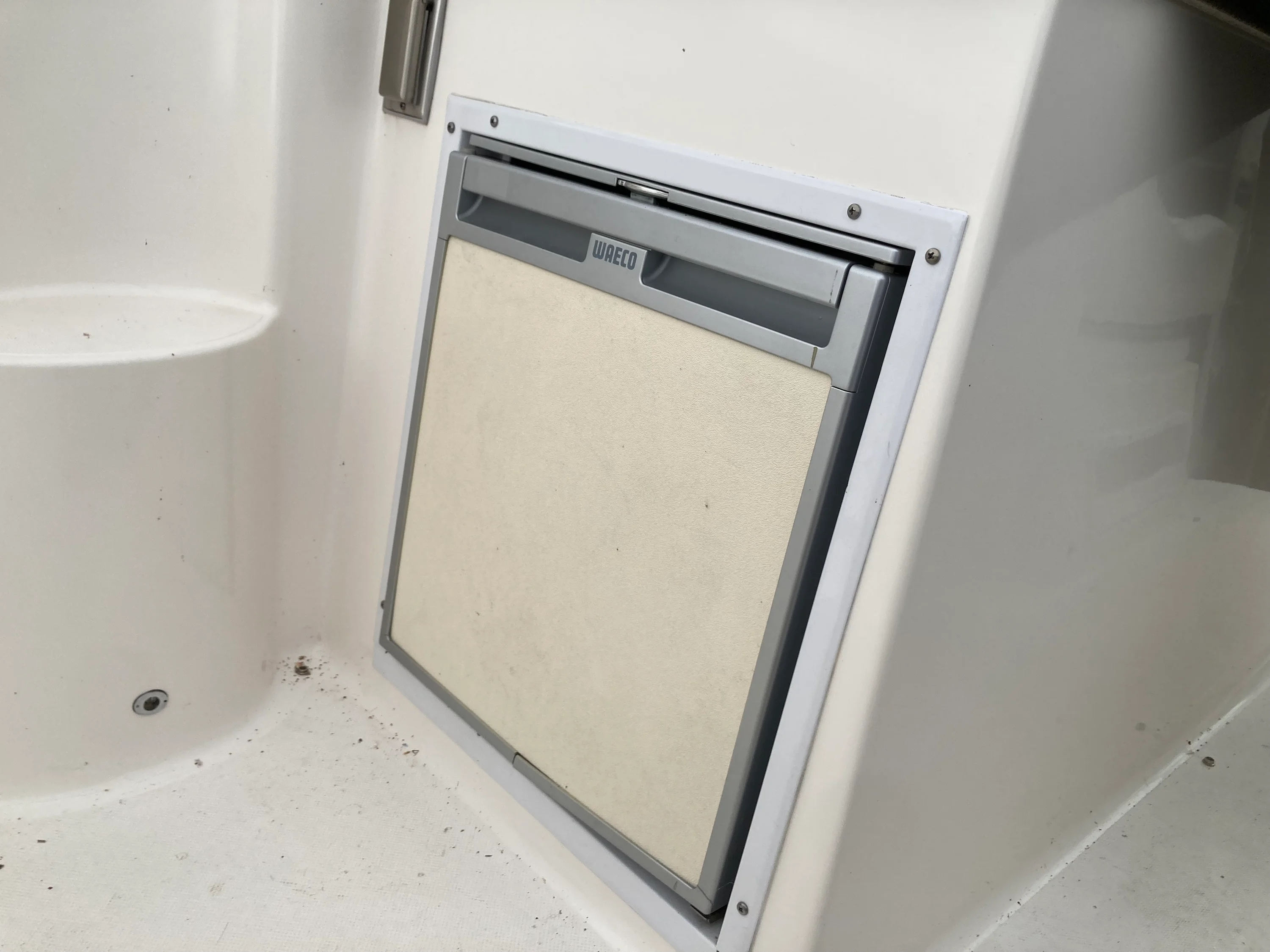 Full Galley: Equipped with a microwave, single-burner stove, refrigerator, and ample storage for weekend snacks and drinks.