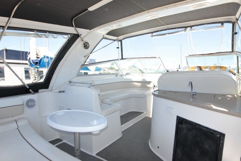 The Rinker 320 offers exceptional value for a 32 ft boat, catering to entertainers, cocktail lovers, divers, and cruisers alike.