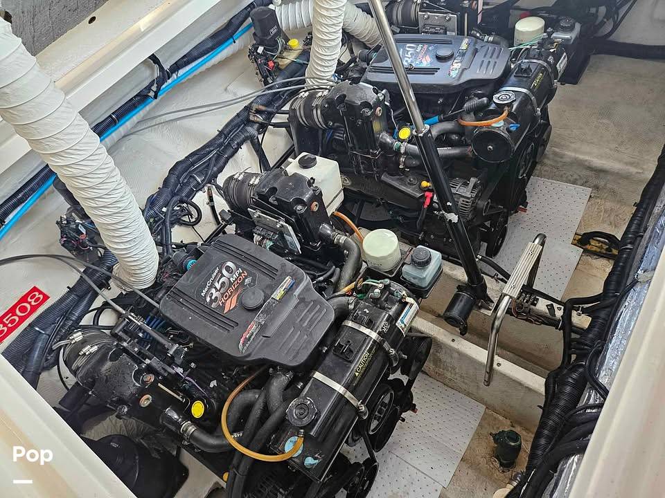 The spacious cockpit includes wraparound seating, a wet bar, and a large swim platform--perfect for entertaining or relaxing on the water. Below deck, you'll find a fully equipped galley, cozy dinette, forward berth, and full head with shower. Air conditioning, updated upholstery, and rich finishes make the cabin feel like home.