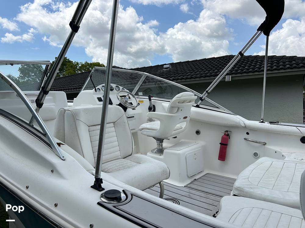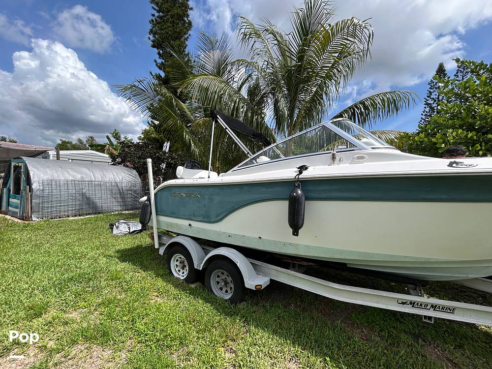 The 2007 Sea Fox 216 DC (Dual Console) is a 21-foot, fiberglass-hulled boat with a dual-console layout. It's equipped with a 2022 Suzuki 150 HP 4-stroke outboard engine. The boat has a beam of 8'6" and a dry weight of 2600 lbs. It features a self-bailing cockpit and a livewell. The helm features a Garmin GPS, VHF radio, Lenco trim tabs, and stereo system. Has the original Sea Fox SEADECK flooring.