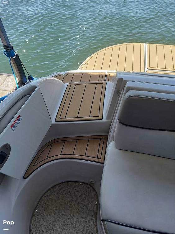 Comfort and style are everywhere you look. The vinyl is in excellent condition throughout, and the snap-in carpet is in great shape. For added traction and style, the swim platform and entry steps are finished with Marine Mat. There's a full cockpit bimini to keep you shaded on sunny days, and both cockpit and bow snap-on covers are included for protection when not in use.