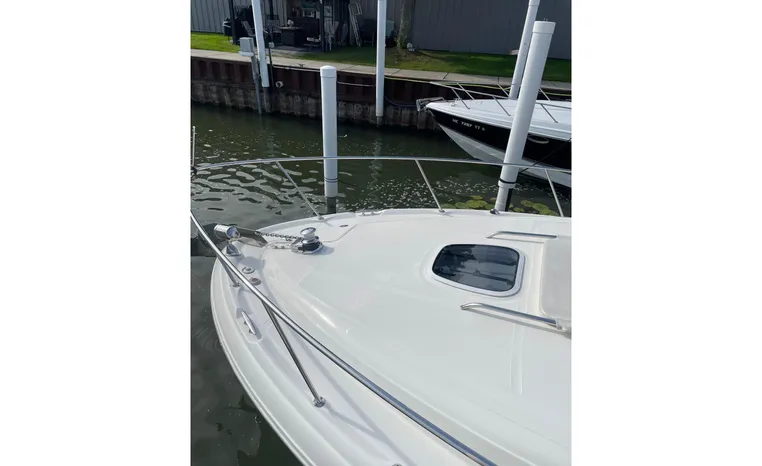 Features (Optional) Twin 8.1-litre 370-hp MerCruiser Horizon Gas Engines with only 700 original hours. Notable features include but are not limited to the following: Air-Conditioning & Heat, Head (Vacuflush) w/Vanity/Sink/Shower, Hardwood flooring in cabin, Electronics Package (VHF Marine Radio, GPS/Chartplotter, MerCrusier SmartCraft, etc.), Kohler Generator, Cockpit Wet Bar w/Sink/Refrigerator, Windlass Anchor, Optional Tubular Aluminum Framed Soft-Top w/Full Canvas Package (Cockpit Mooring Cover, Forward/Side/Aft Canvas), Premium Rockford Sound System with Subwoofer and Amp, SeaDek flooring in cockpit, and MUCH more!