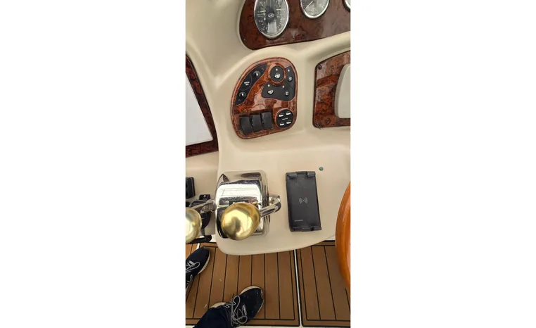 Features (Optional) Twin 8.1-litre 370-hp MerCruiser Horizon Gas Engines with only 700 original hours. Notable features include but are not limited to the following: Air-Conditioning & Heat, Head (Vacuflush) w/Vanity/Sink/Shower, Hardwood flooring in cabin, Electronics Package (VHF Marine Radio, GPS/Chartplotter, MerCrusier SmartCraft, etc.), Kohler Generator, Cockpit Wet Bar w/Sink/Refrigerator, Windlass Anchor, Optional Tubular Aluminum Framed Soft-Top w/Full Canvas Package (Cockpit Mooring Cover, Forward/Side/Aft Canvas), Premium Rockford Sound System with Subwoofer and Amp, SeaDek flooring in cockpit, and MUCH more!