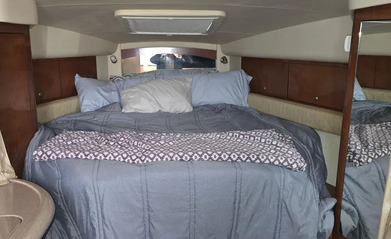 Features (Optional) Twin 8.1-litre 370-hp MerCruiser Horizon Gas Engines with only 700 original hours. Notable features include but are not limited to the following: Air-Conditioning & Heat, Head (Vacuflush) w/Vanity/Sink/Shower, Hardwood flooring in cabin, Electronics Package (VHF Marine Radio, GPS/Chartplotter, MerCrusier SmartCraft, etc.), Kohler Generator, Cockpit Wet Bar w/Sink/Refrigerator, Windlass Anchor, Optional Tubular Aluminum Framed Soft-Top w/Full Canvas Package (Cockpit Mooring Cover, Forward/Side/Aft Canvas), Premium Rockford Sound System with Subwoofer and Amp, SeaDek flooring in cockpit, and MUCH more!
