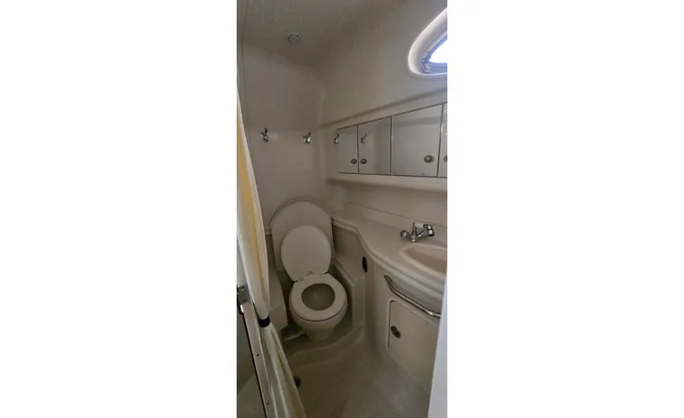 Features (Optional) Twin 8.1-litre 370-hp MerCruiser Horizon Gas Engines with only 700 original hours. Notable features include but are not limited to the following: Air-Conditioning & Heat, Head (Vacuflush) w/Vanity/Sink/Shower, Hardwood flooring in cabin, Electronics Package (VHF Marine Radio, GPS/Chartplotter, MerCrusier SmartCraft, etc.), Kohler Generator, Cockpit Wet Bar w/Sink/Refrigerator, Windlass Anchor, Optional Tubular Aluminum Framed Soft-Top w/Full Canvas Package (Cockpit Mooring Cover, Forward/Side/Aft Canvas), Premium Rockford Sound System with Subwoofer and Amp, SeaDek flooring in cockpit, and MUCH more!