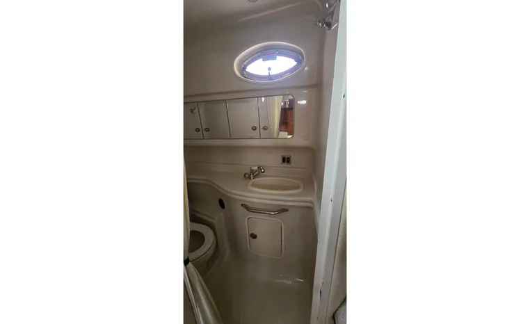 Features (Optional) Twin 8.1-litre 370-hp MerCruiser Horizon Gas Engines with only 700 original hours. Notable features include but are not limited to the following: Air-Conditioning & Heat, Head (Vacuflush) w/Vanity/Sink/Shower, Hardwood flooring in cabin, Electronics Package (VHF Marine Radio, GPS/Chartplotter, MerCrusier SmartCraft, etc.), Kohler Generator, Cockpit Wet Bar w/Sink/Refrigerator, Windlass Anchor, Optional Tubular Aluminum Framed Soft-Top w/Full Canvas Package (Cockpit Mooring Cover, Forward/Side/Aft Canvas), Premium Rockford Sound System with Subwoofer and Amp, SeaDek flooring in cockpit, and MUCH more!