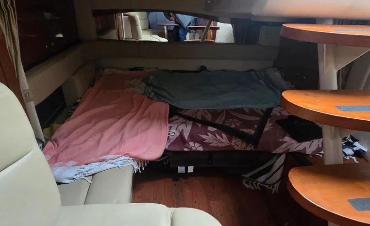 Features (Optional) Twin 8.1-litre 370-hp MerCruiser Horizon Gas Engines with only 700 original hours. Notable features include but are not limited to the following: Air-Conditioning & Heat, Head (Vacuflush) w/Vanity/Sink/Shower, Hardwood flooring in cabin, Electronics Package (VHF Marine Radio, GPS/Chartplotter, MerCrusier SmartCraft, etc.), Kohler Generator, Cockpit Wet Bar w/Sink/Refrigerator, Windlass Anchor, Optional Tubular Aluminum Framed Soft-Top w/Full Canvas Package (Cockpit Mooring Cover, Forward/Side/Aft Canvas), Premium Rockford Sound System with Subwoofer and Amp, SeaDek flooring in cockpit, and MUCH more!
